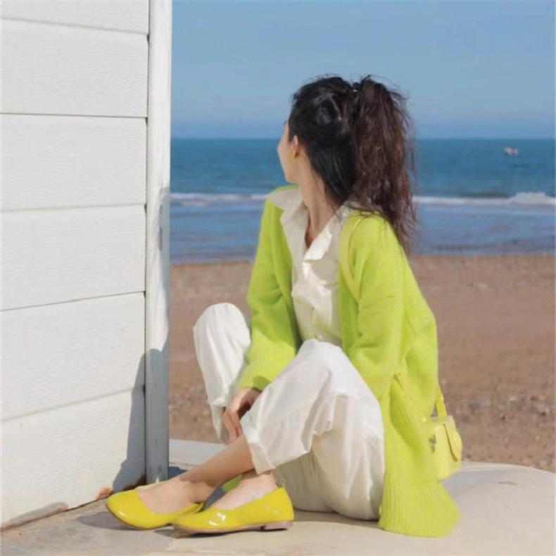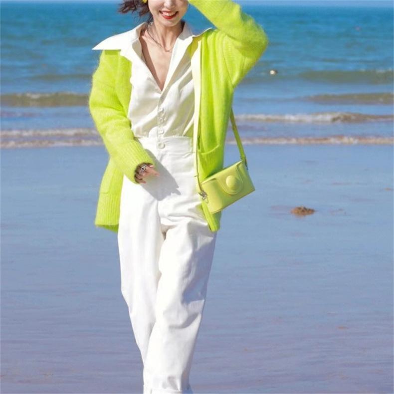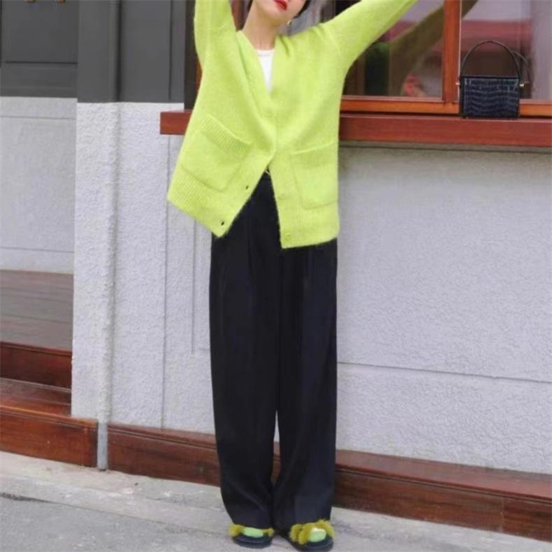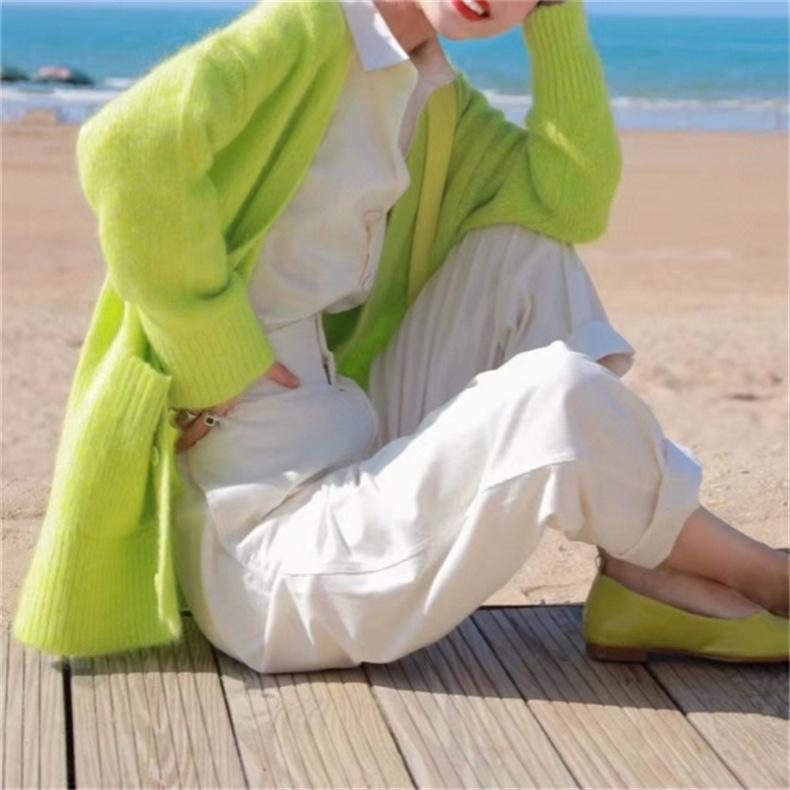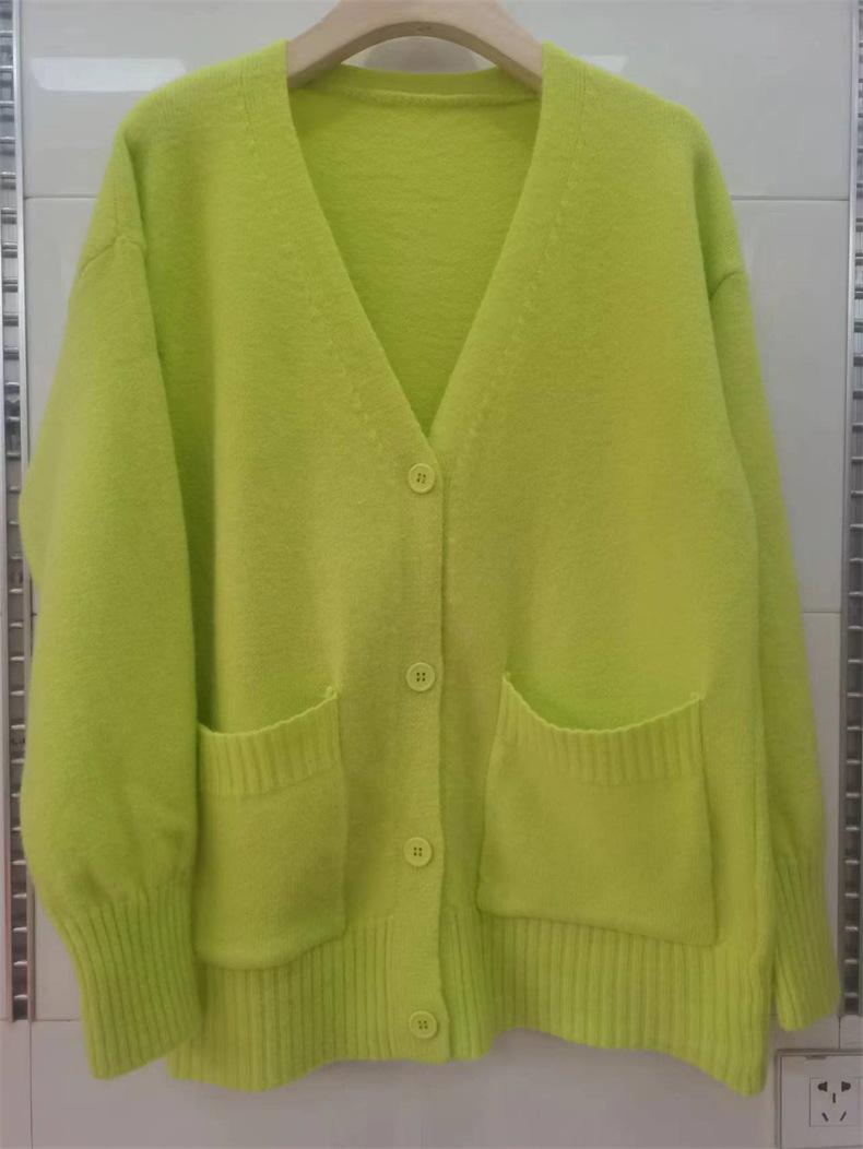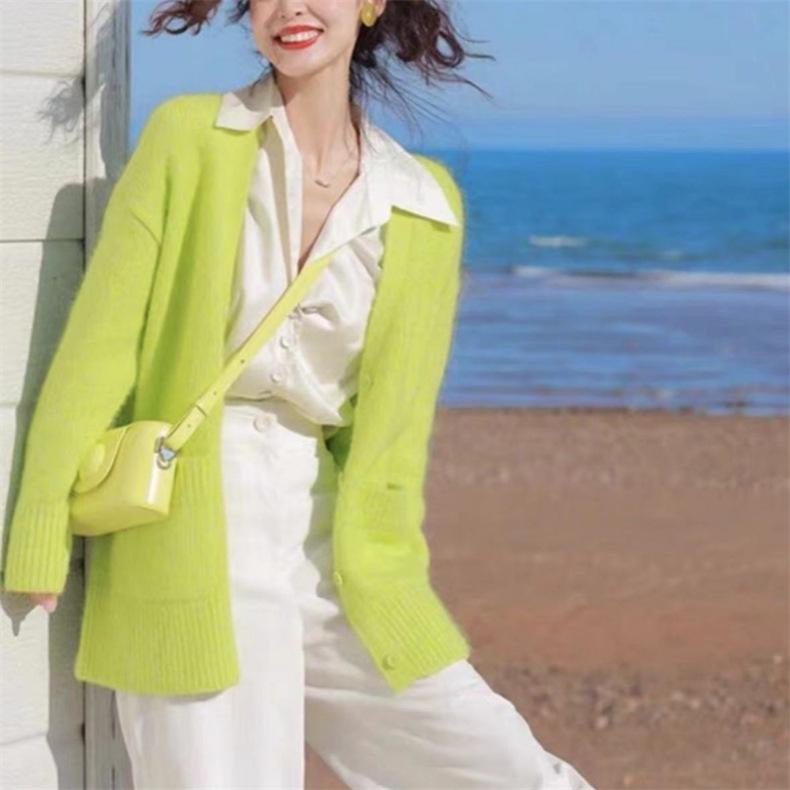 Cárdigan de punto verde para mujer, otoño e invierno 2024, nuevo, suave, suelto, estilo perezoso, suéter de color sólido, ropa de mujer al por mayor