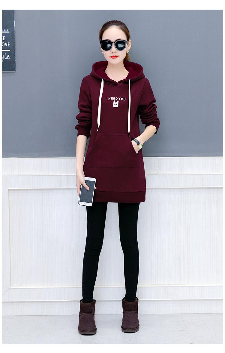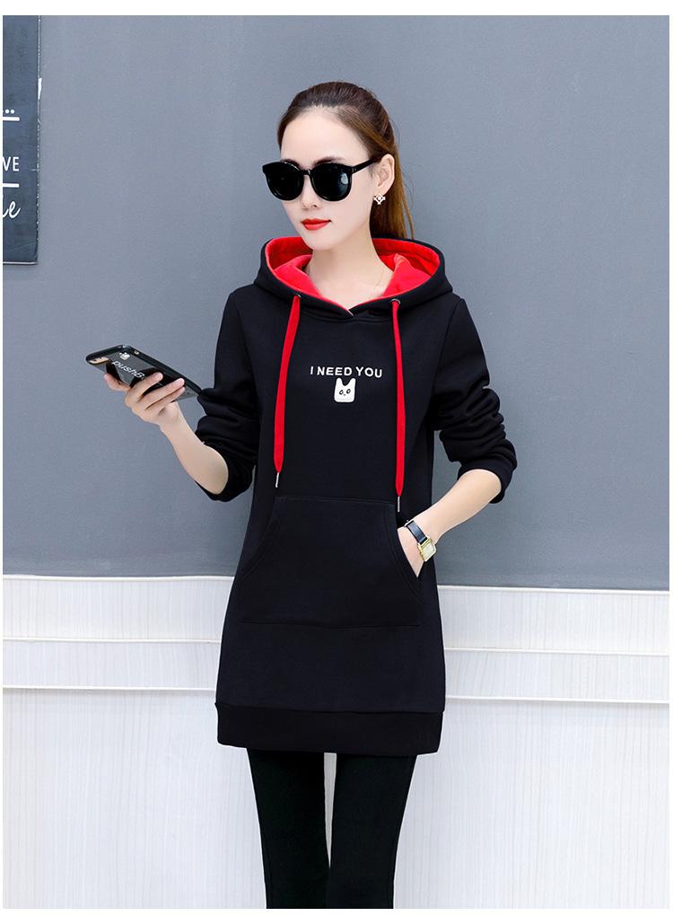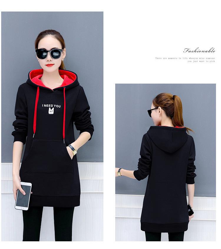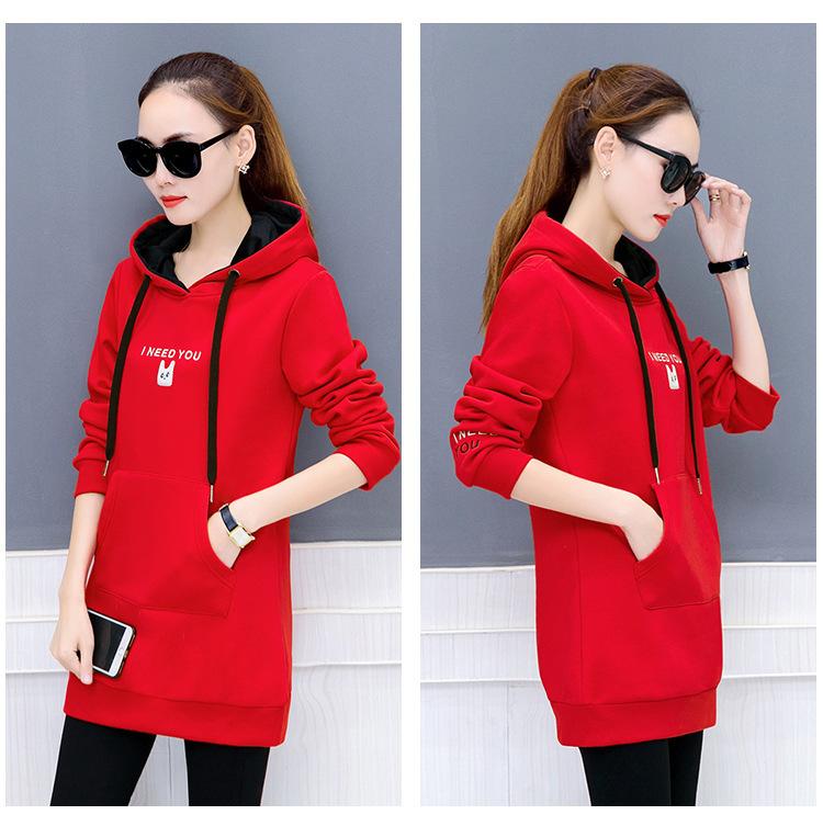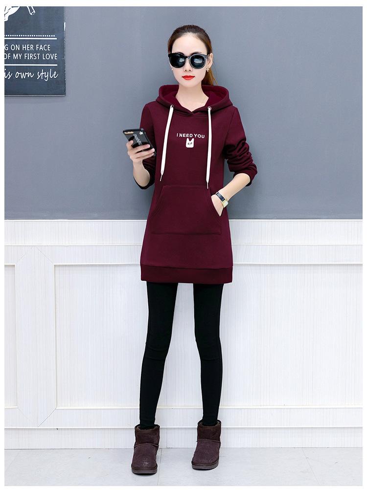 2025 Otoño e Invierno Nuevo Estilo Coreano Pulóver para Mujer Suelto Talla Grande Estudiante con Capucha Largo Medio Sudadera de Felpa Bordada para Mujer