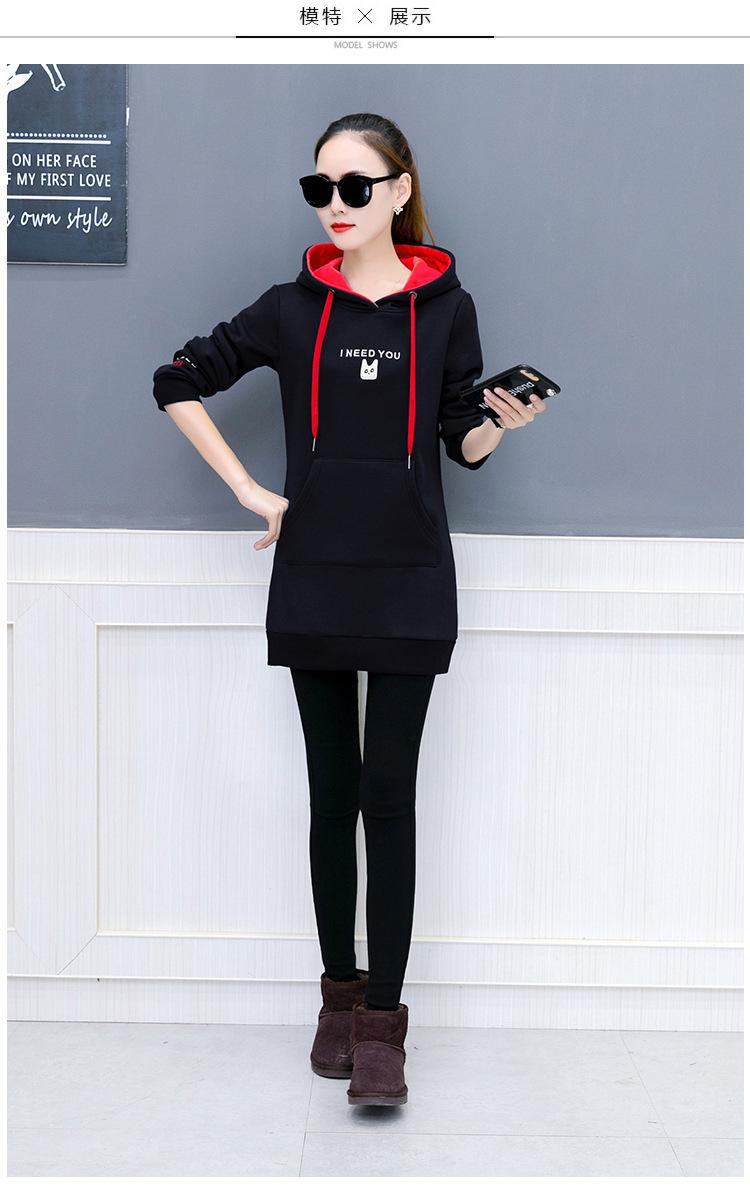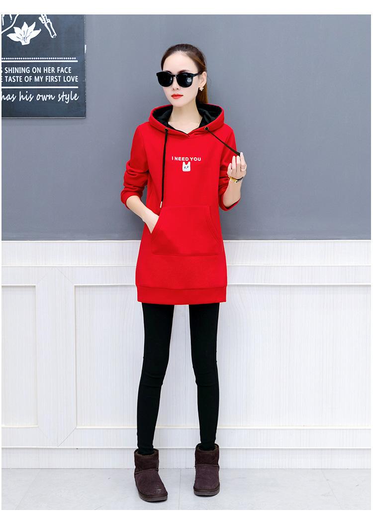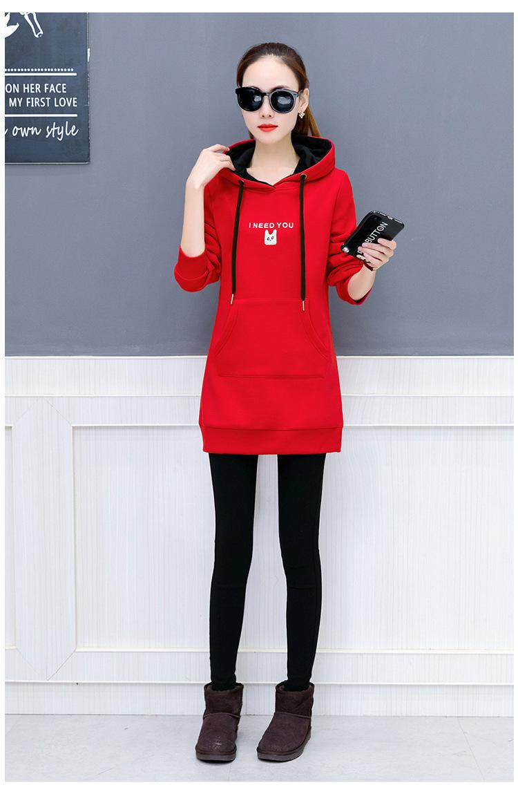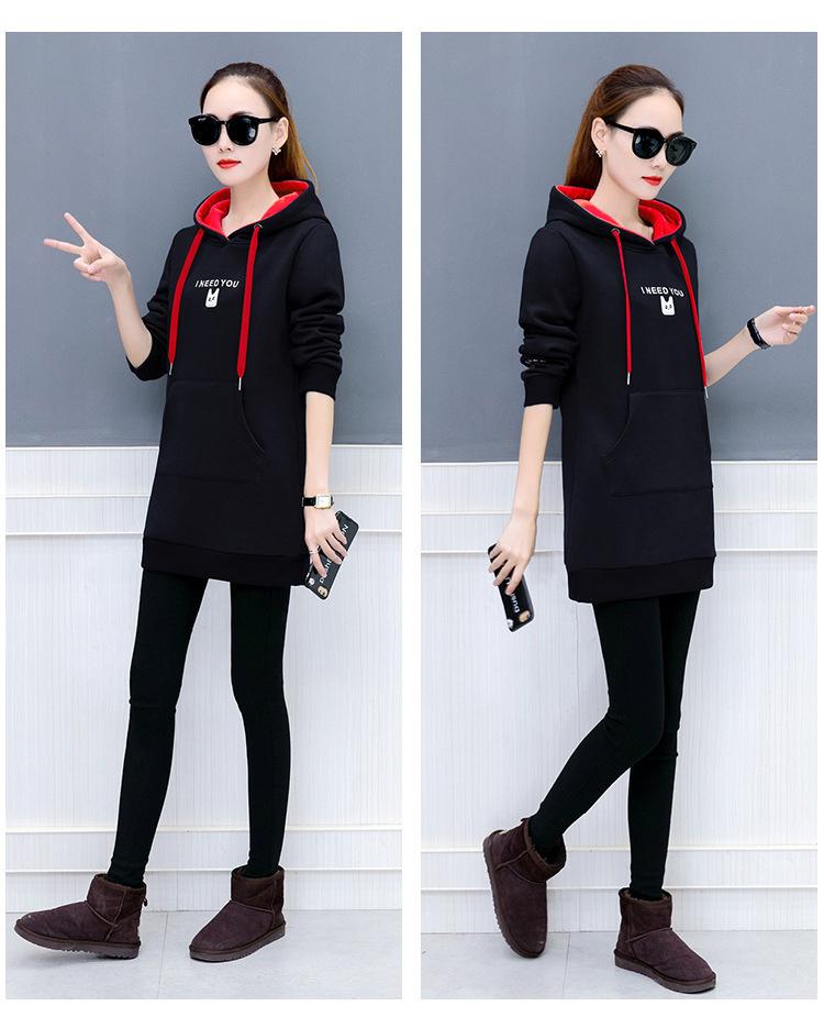 2025 Otoño e Invierno Nuevo Estilo Coreano Pulóver para Mujer Suelto Talla Grande Estudiante con Capucha Largo Medio Sudadera de Felpa Bordada para Mujer