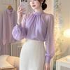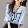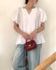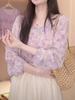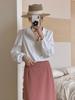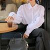 Camisa Coreana Cihc Primavera Nueva Estilo Francés Reductora de Edad Suelta Babydoll con Textura Abotonadura Pequeña Cuello Redondo Manga Abullonada