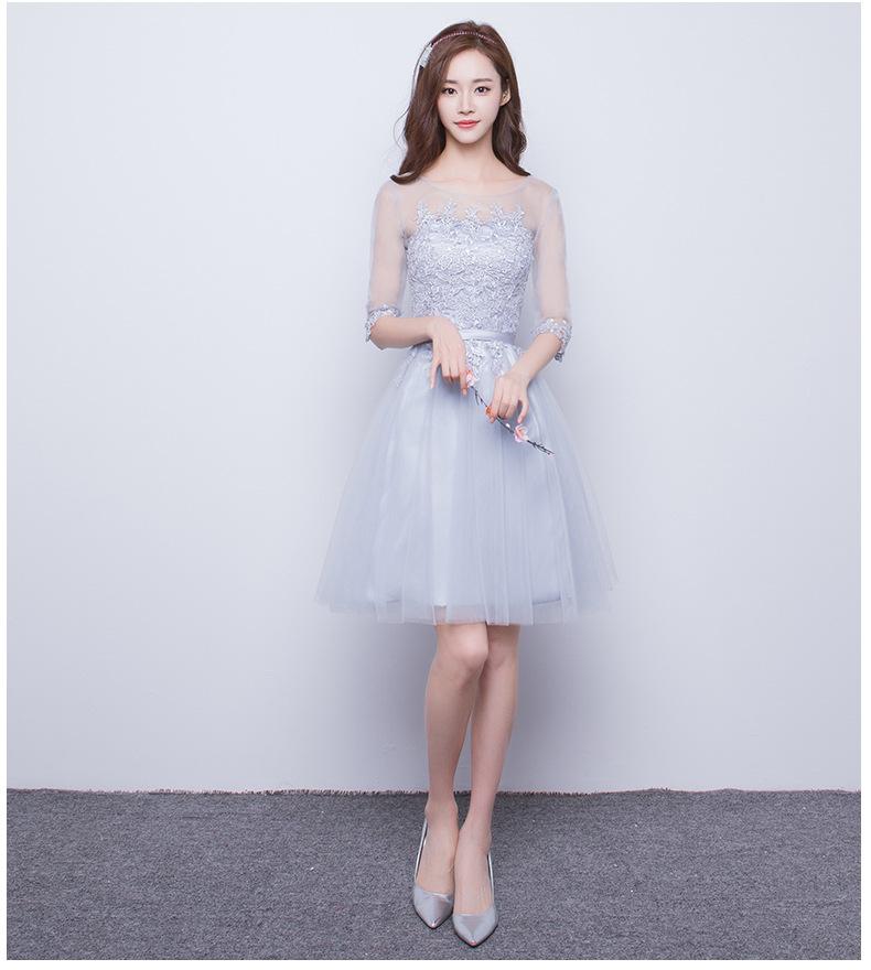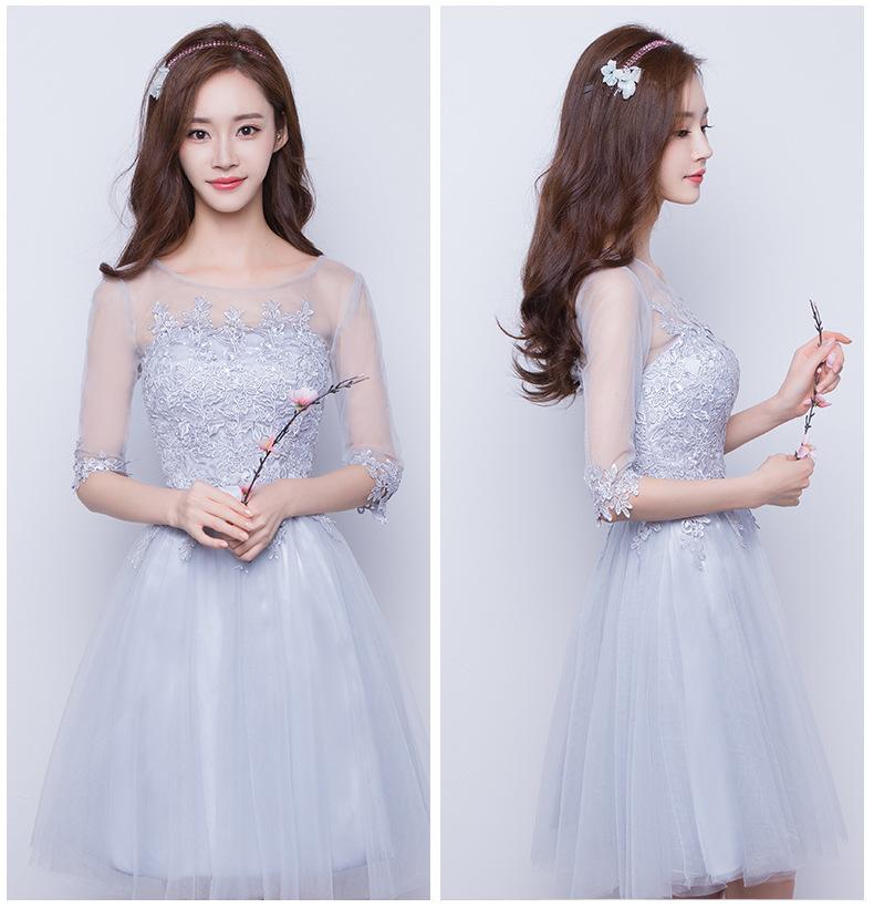 Vestido Pequeño 2025 Nuevo Manga Media Fiesta Banquete Vestido de Noche Corto Ajustado Vestido de Dama de Honor Vestido Femenino Estilo K