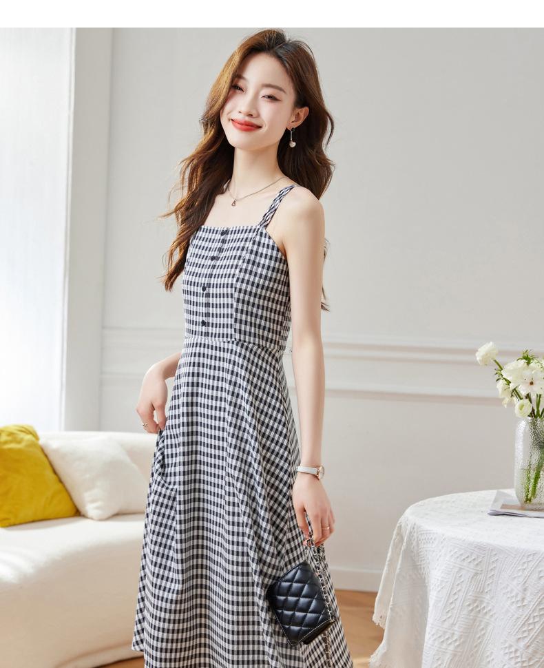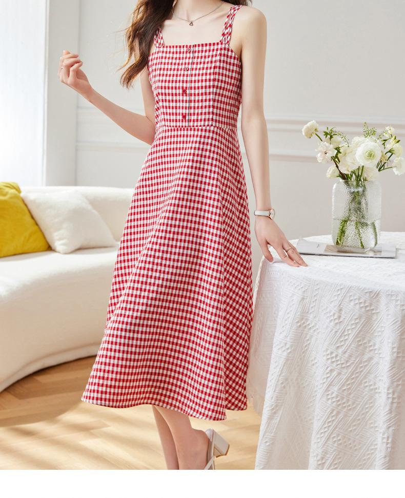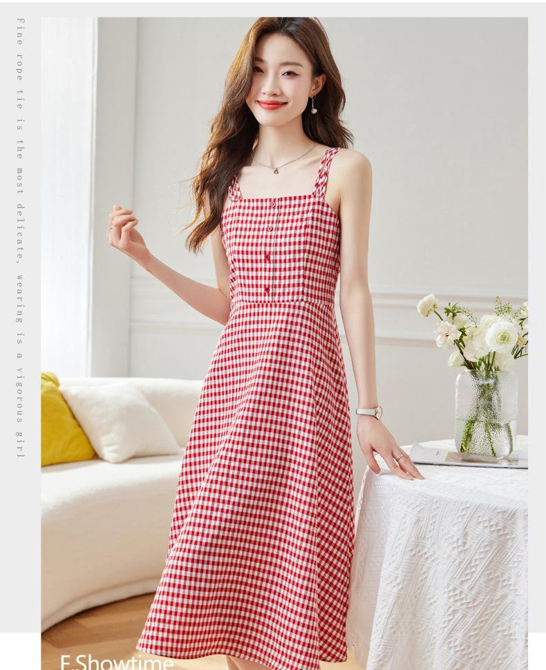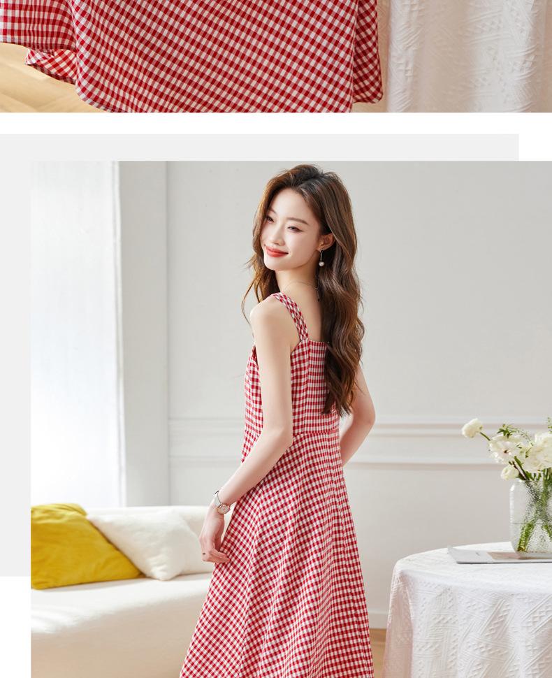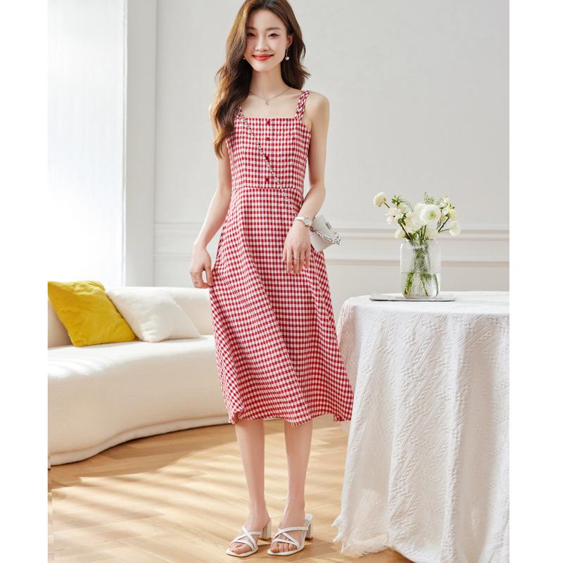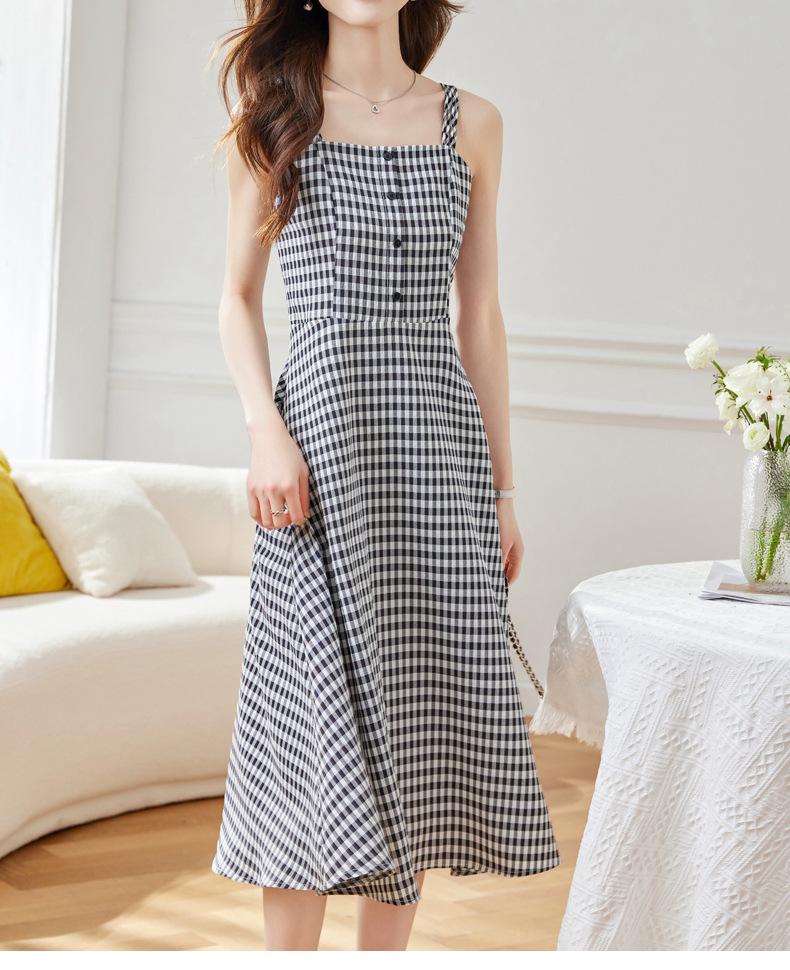 Vestido de Tirantes a Cuadros para Mujer Vestido Fresco sin Mangas de Corte Ajustado