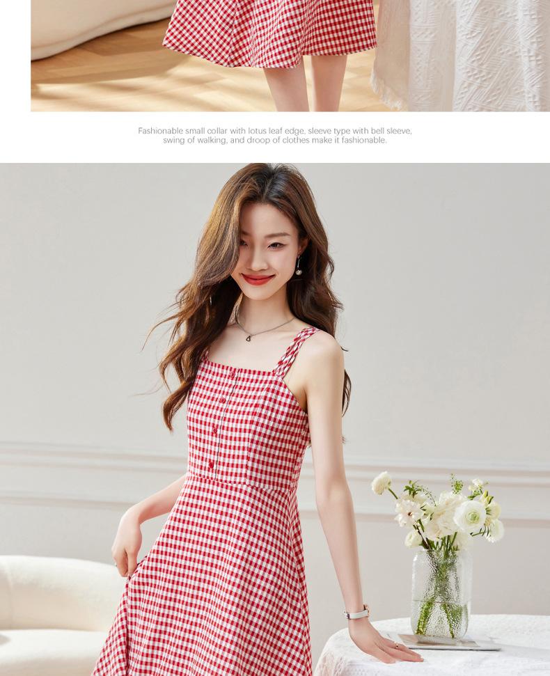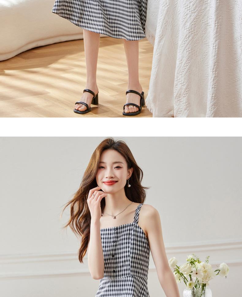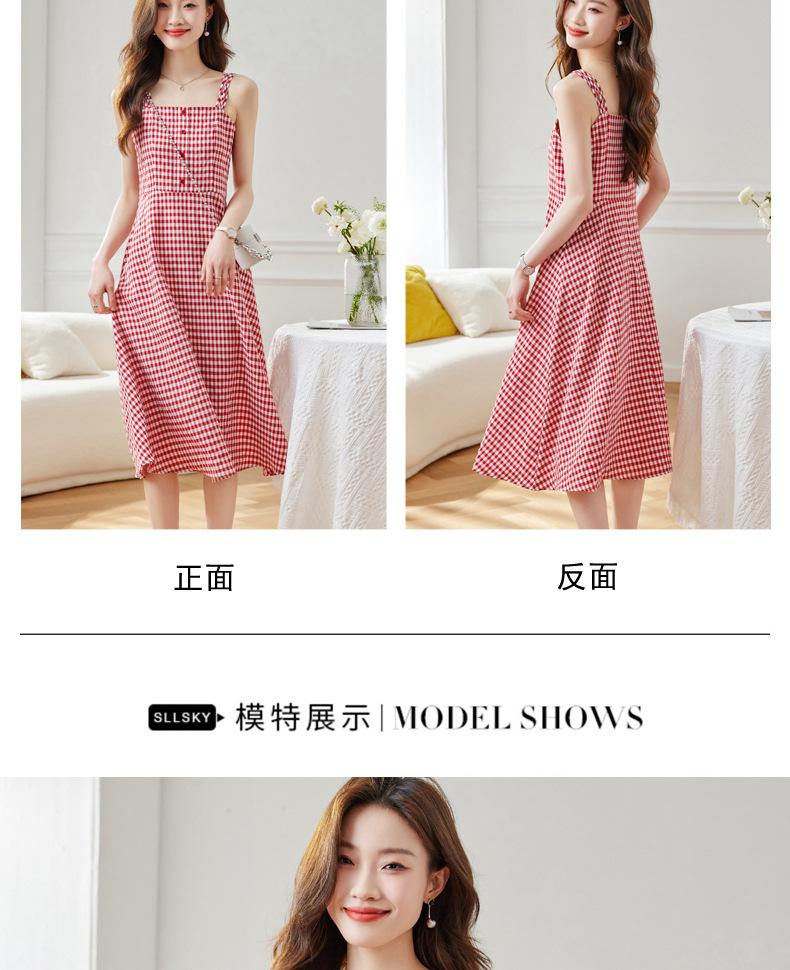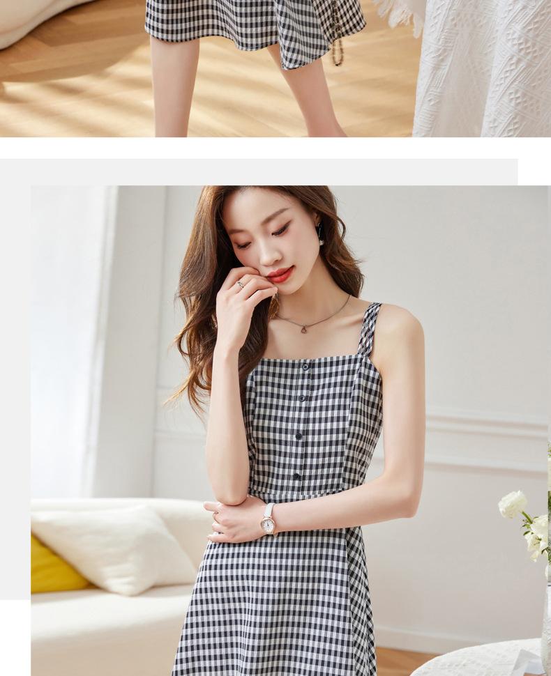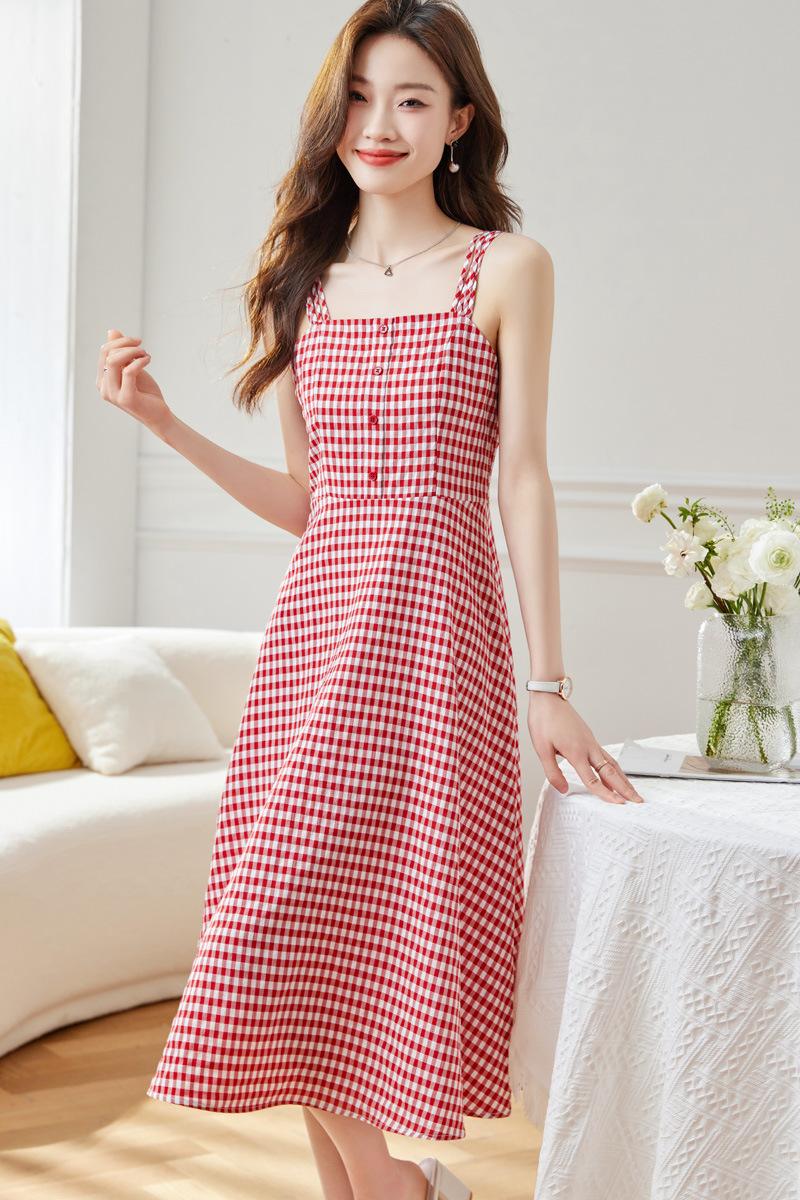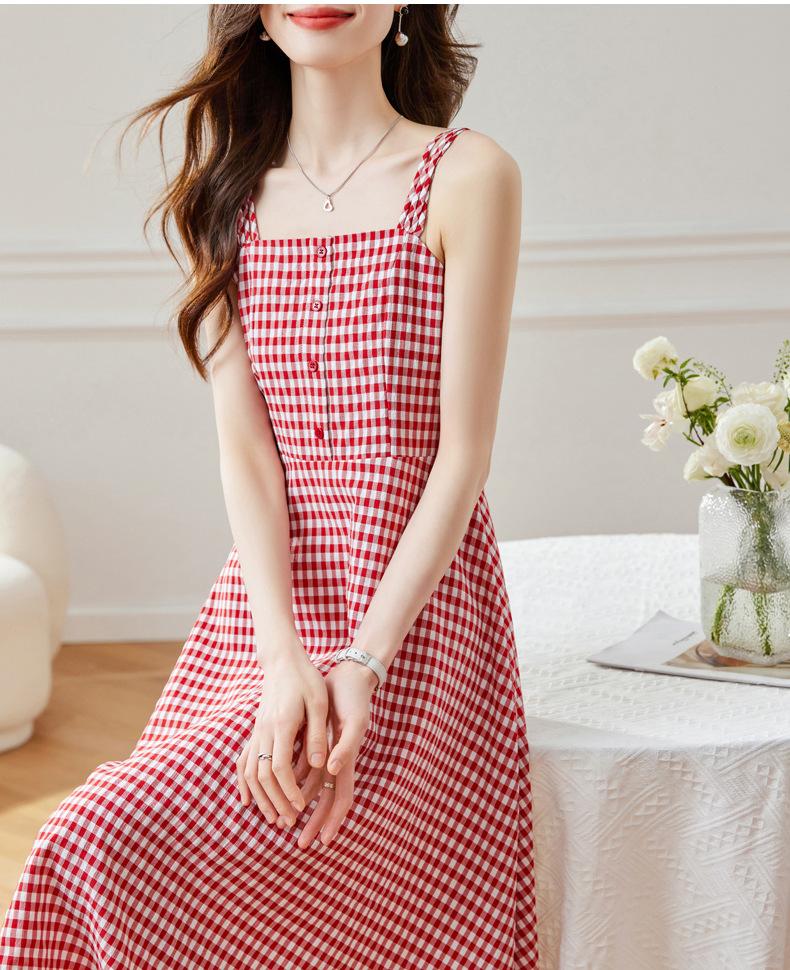 Vestido de Tirantes a Cuadros para Mujer Vestido Fresco sin Mangas de Corte Ajustado