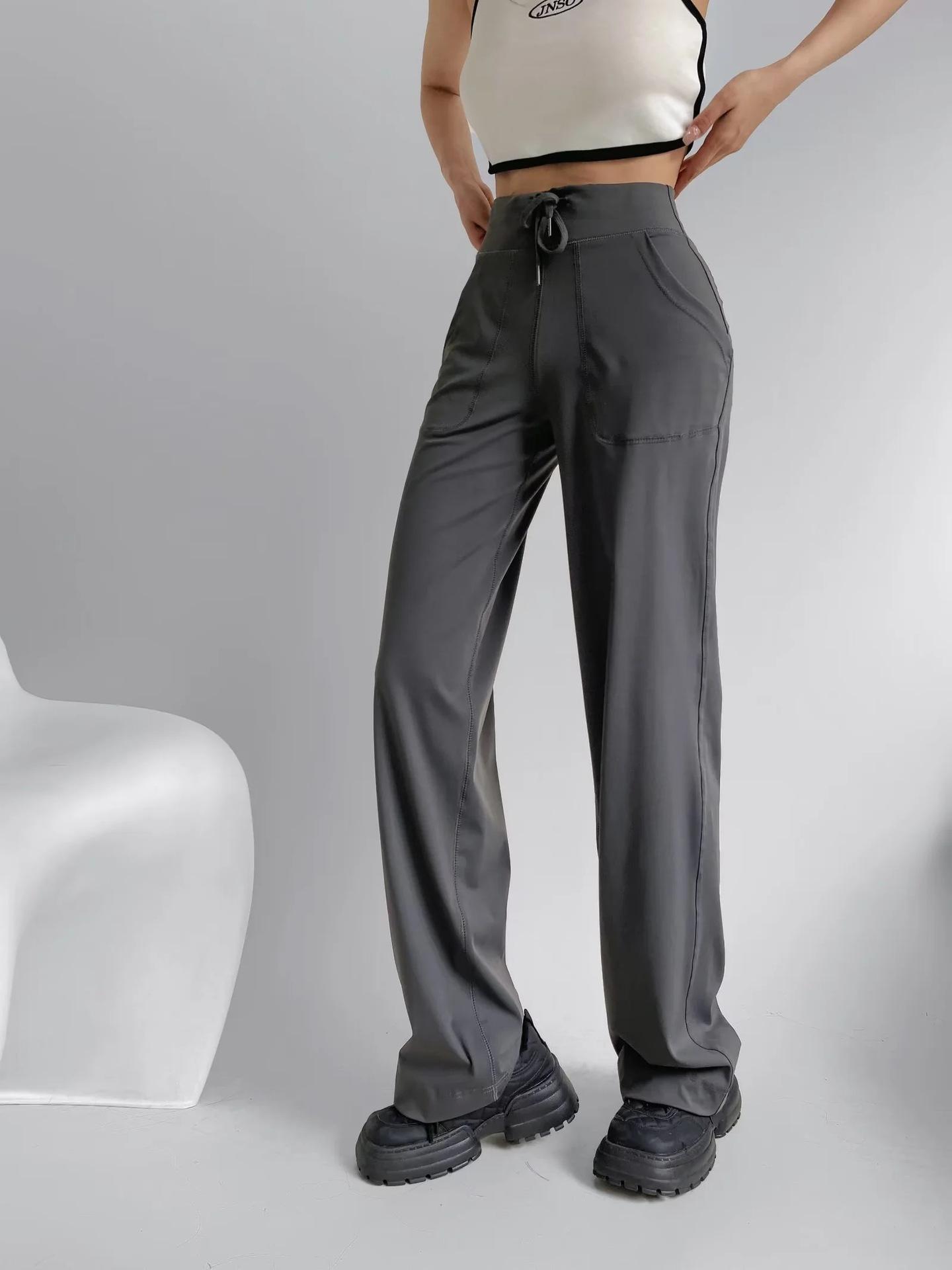 Pantalones de Fitness para Yoga 2023 Nuevo Diseño de Cintura Alta Moda Naked Estilo Occidental Slim Casual Pantalones Deportivos Pantalones de Pierna Ancha