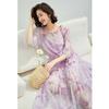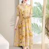 Vestido de Seda Marca M, Seda de Morera, Cuello de Camisa Estampado con Bloques de Color, Mangas Largas con Lazos, Vestido Largo Adelgazante, Cintura Alta, Efecto Adelgazante