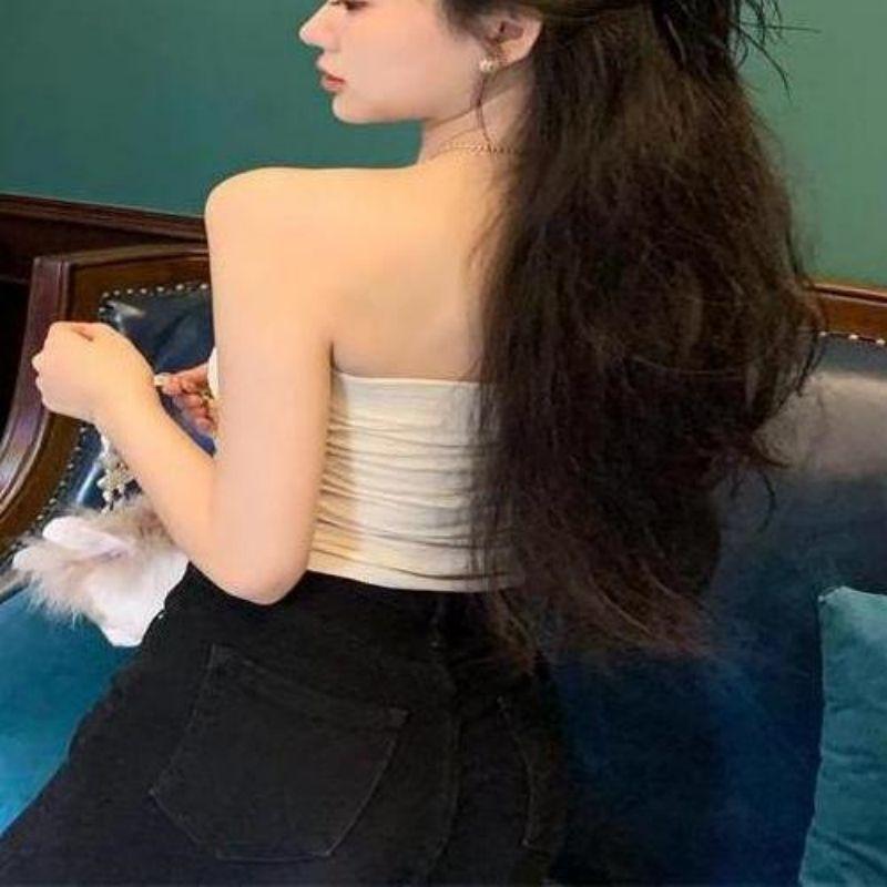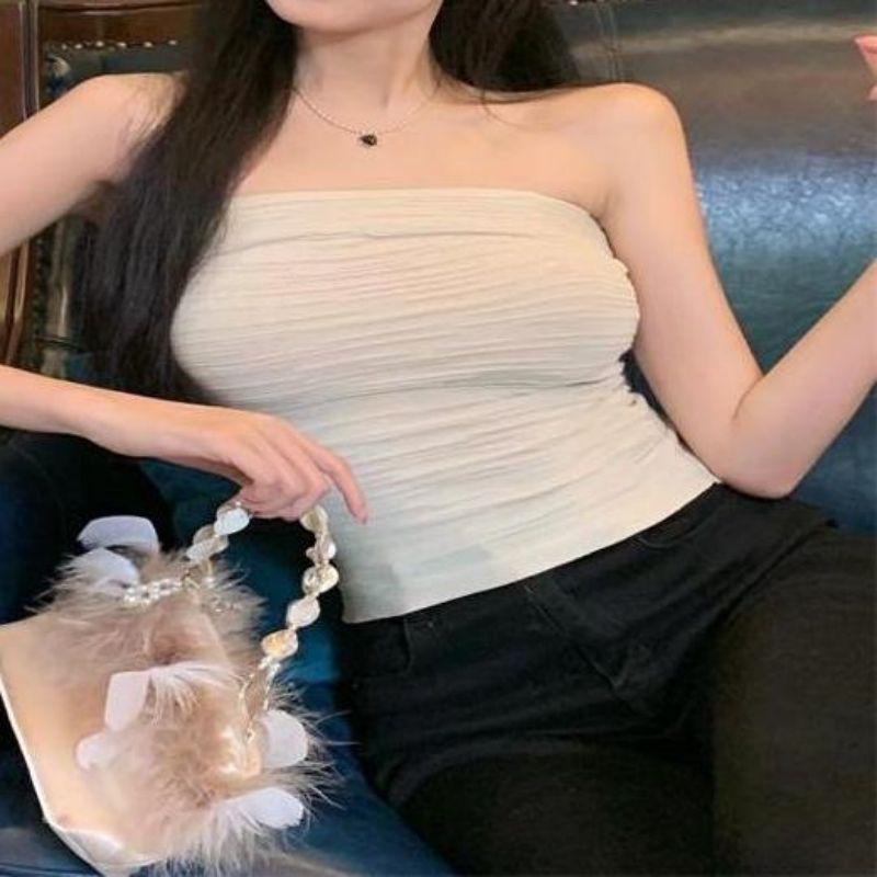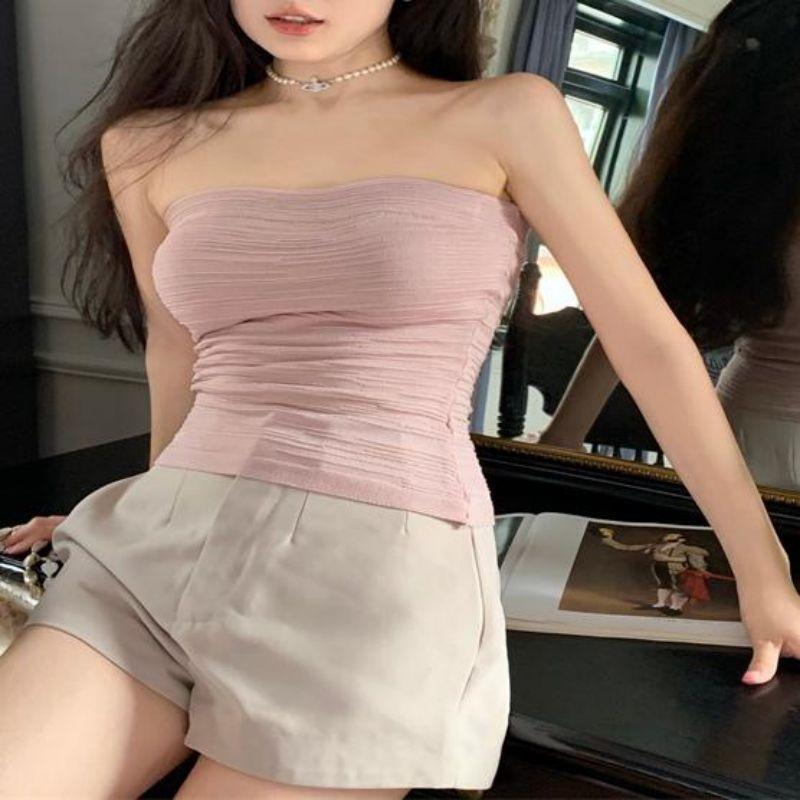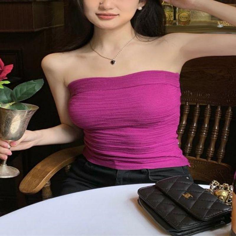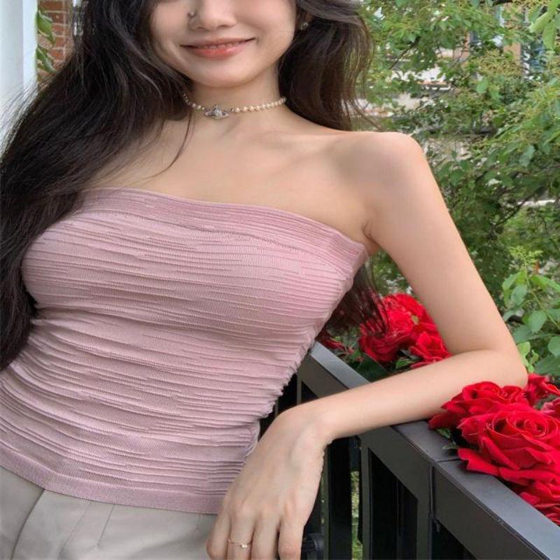 Estilo deseo puro sexy chica caliente ropa exterior corta delgada adelgazante elástica top de tubo ajustado para mujer combinable con todo