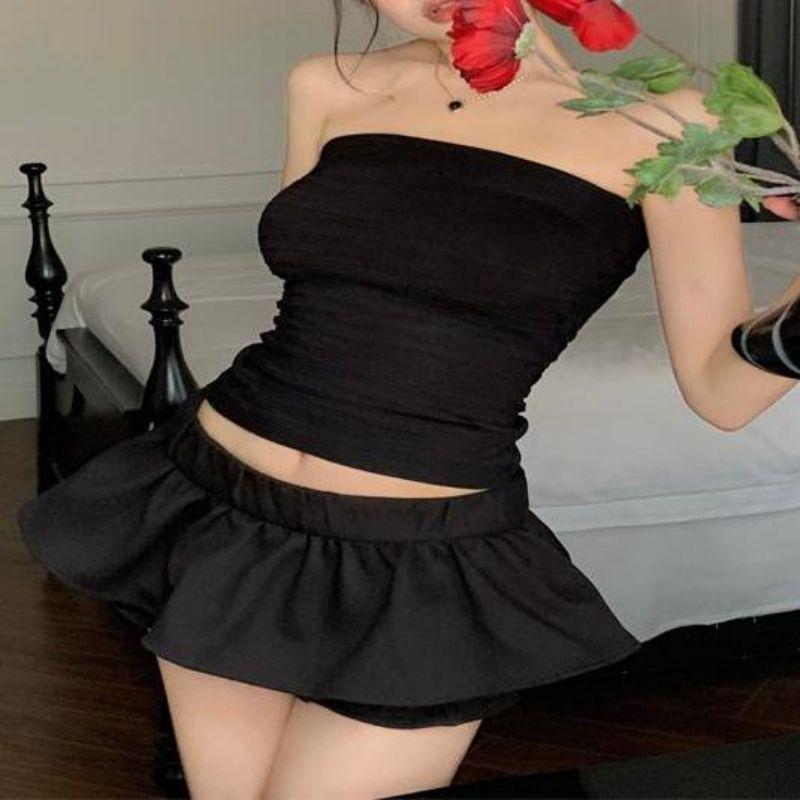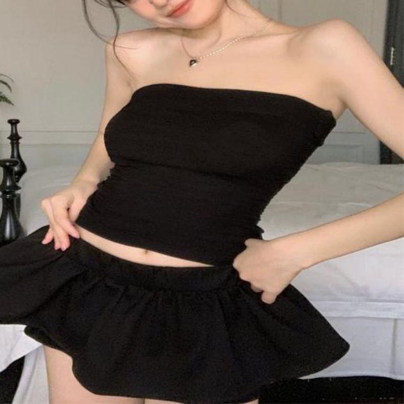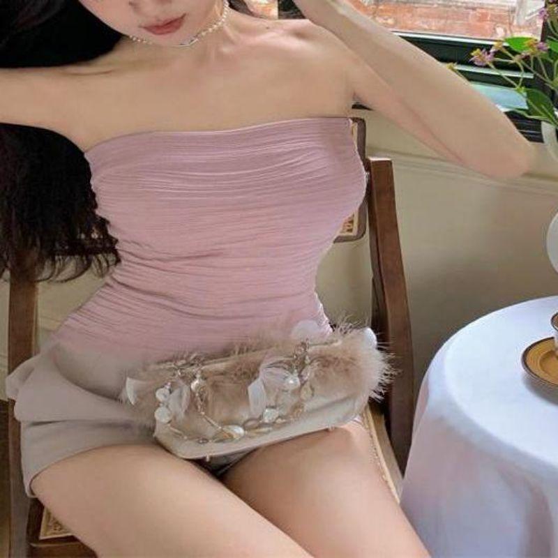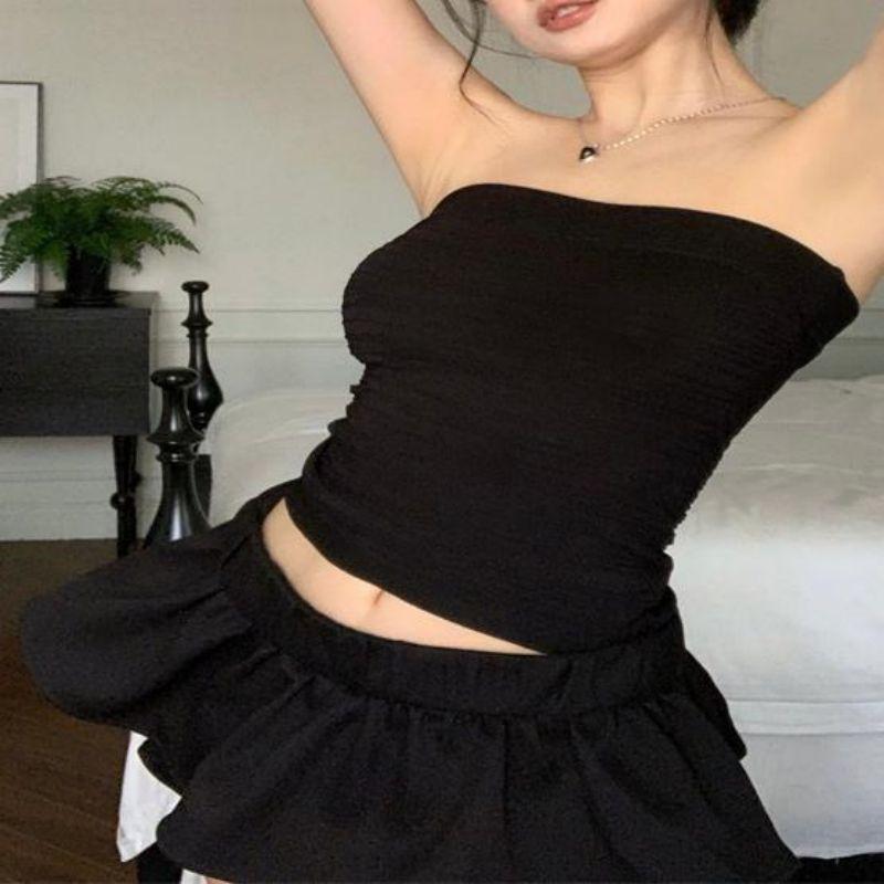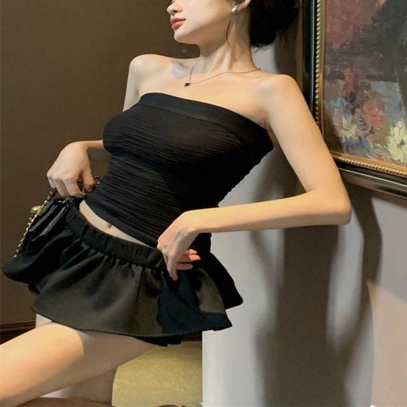 Estilo deseo puro sexy chica caliente ropa exterior corta delgada adelgazante elástica top de tubo ajustado para mujer combinable con todo