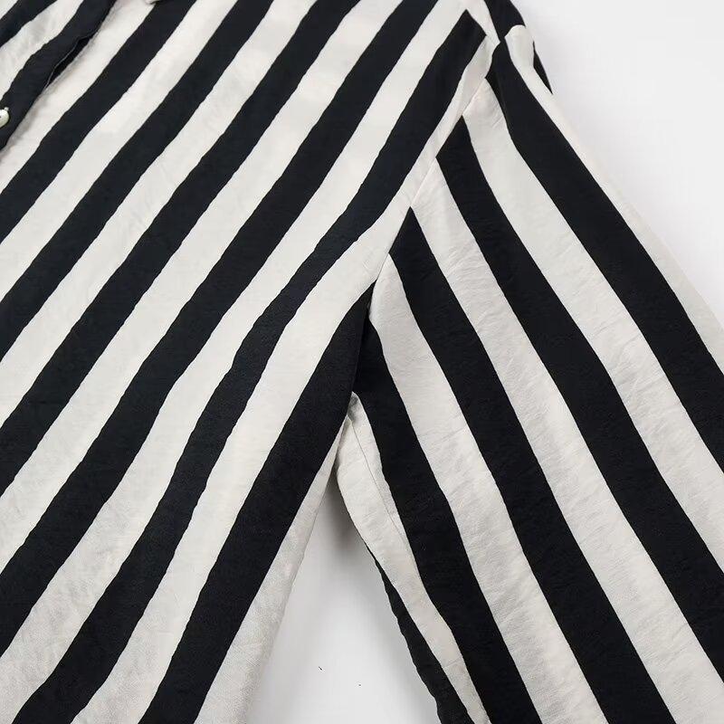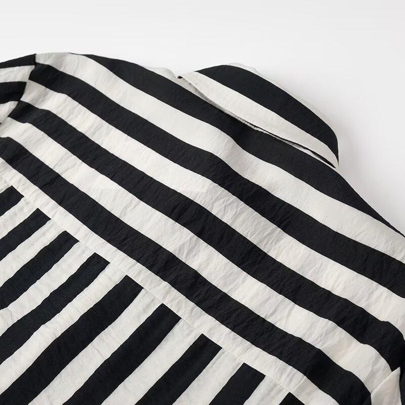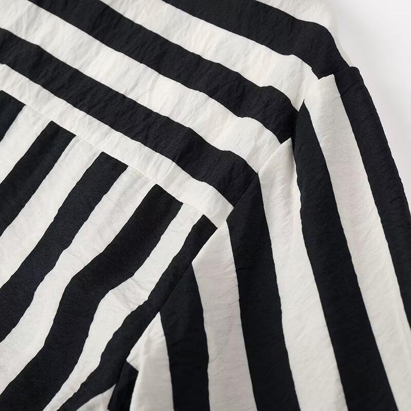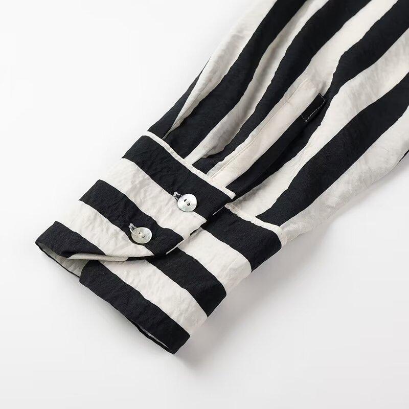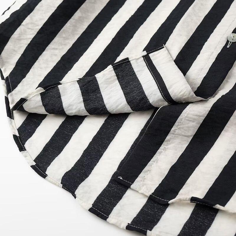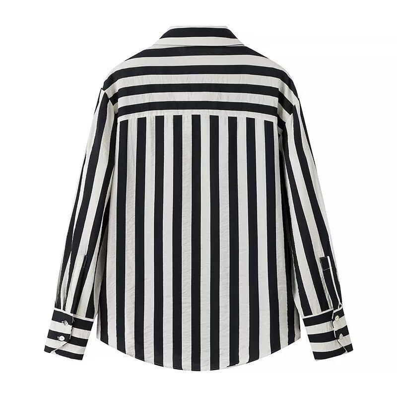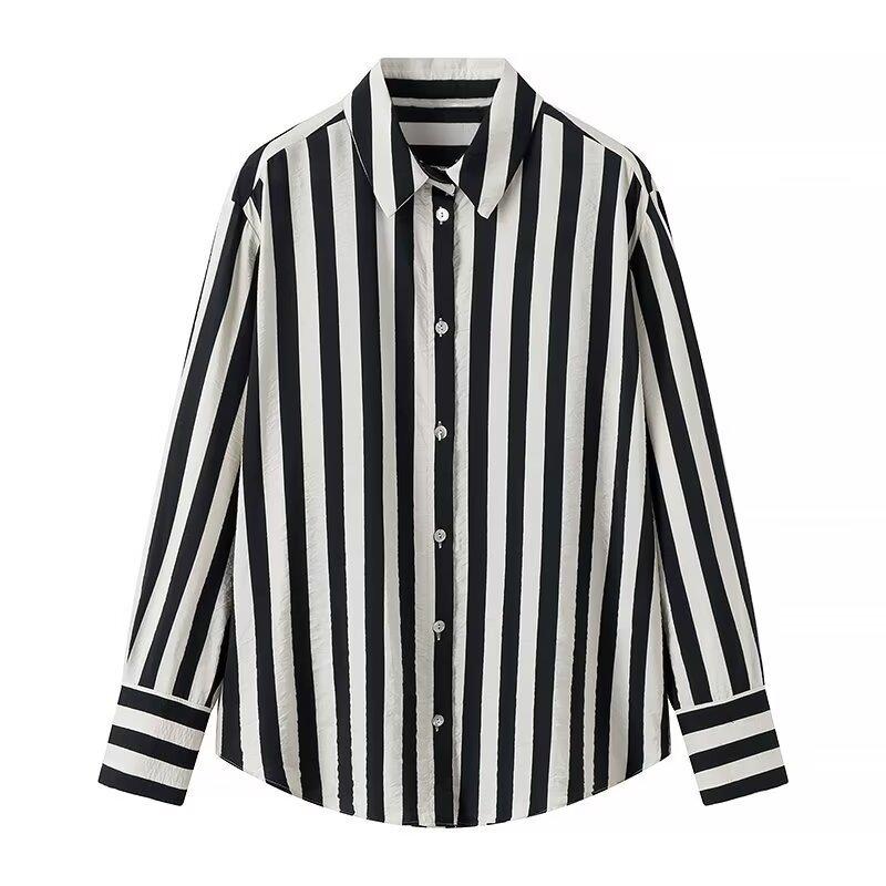 Moda europea y americana 2024 nueva camisa de rayas casual de manga larga para mujer para combinar con todo A77-73592