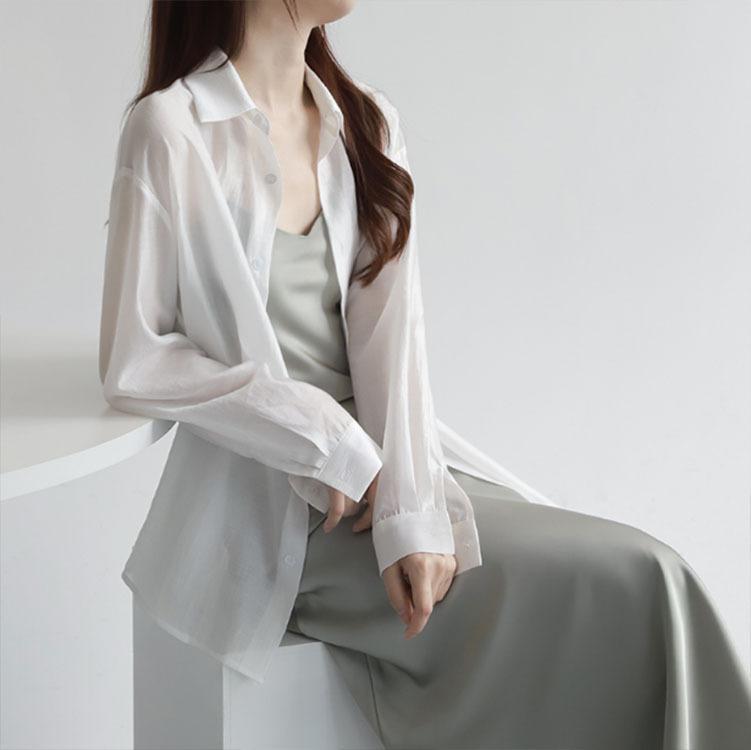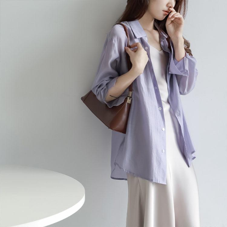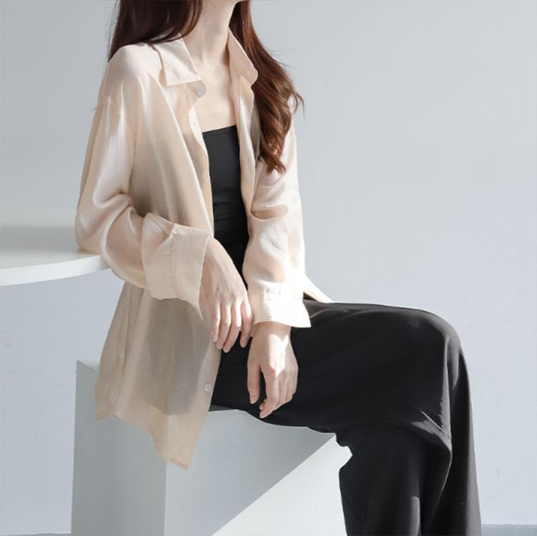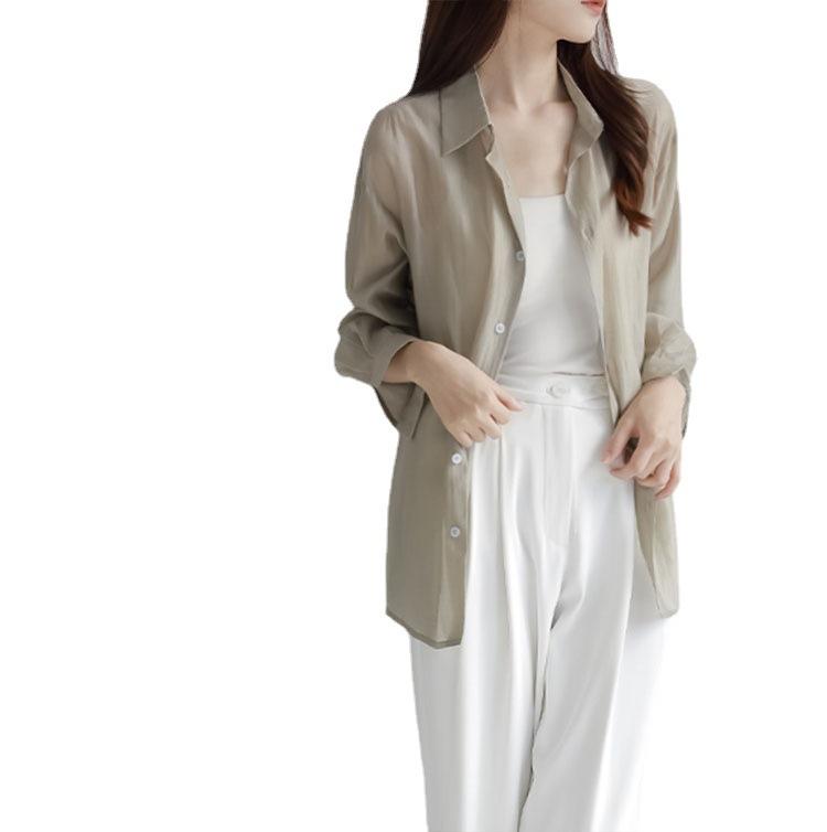 Camisa de manga larga de tencel suave con protección solar para mujer, nueva, elegante, de verano, ultrafina, holgada y combinable.