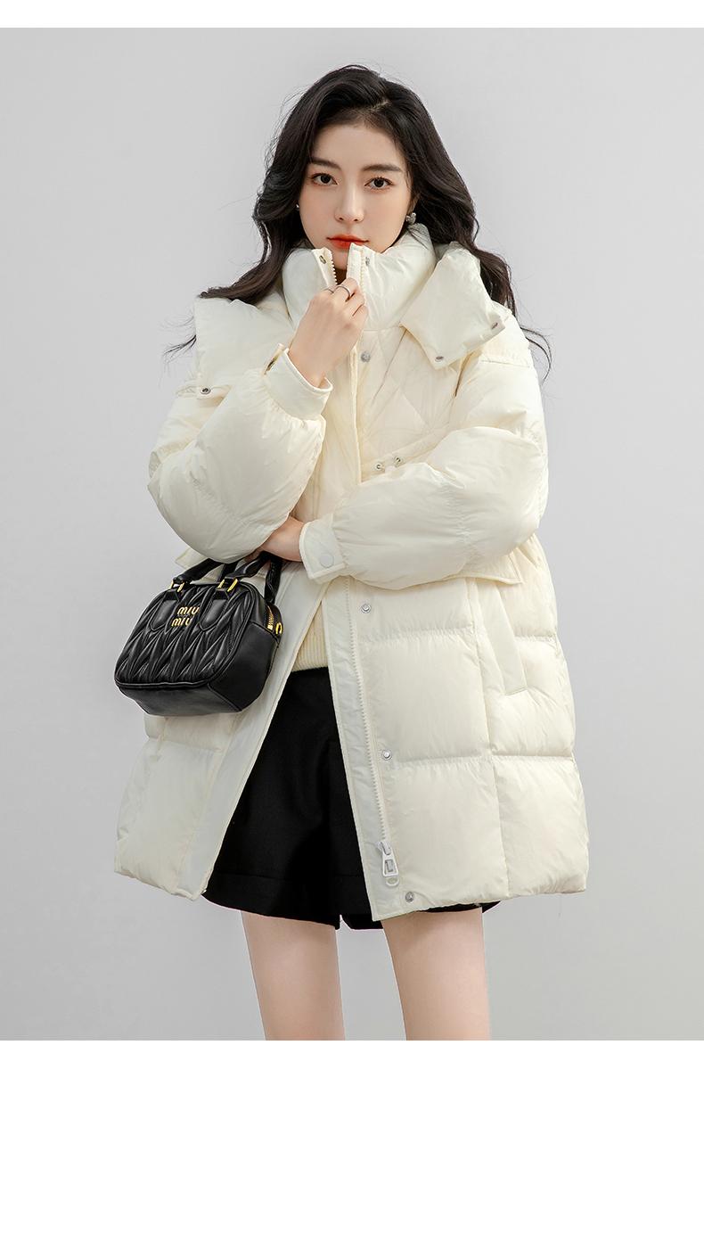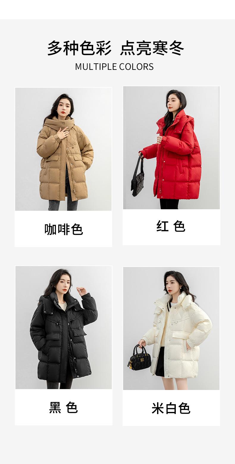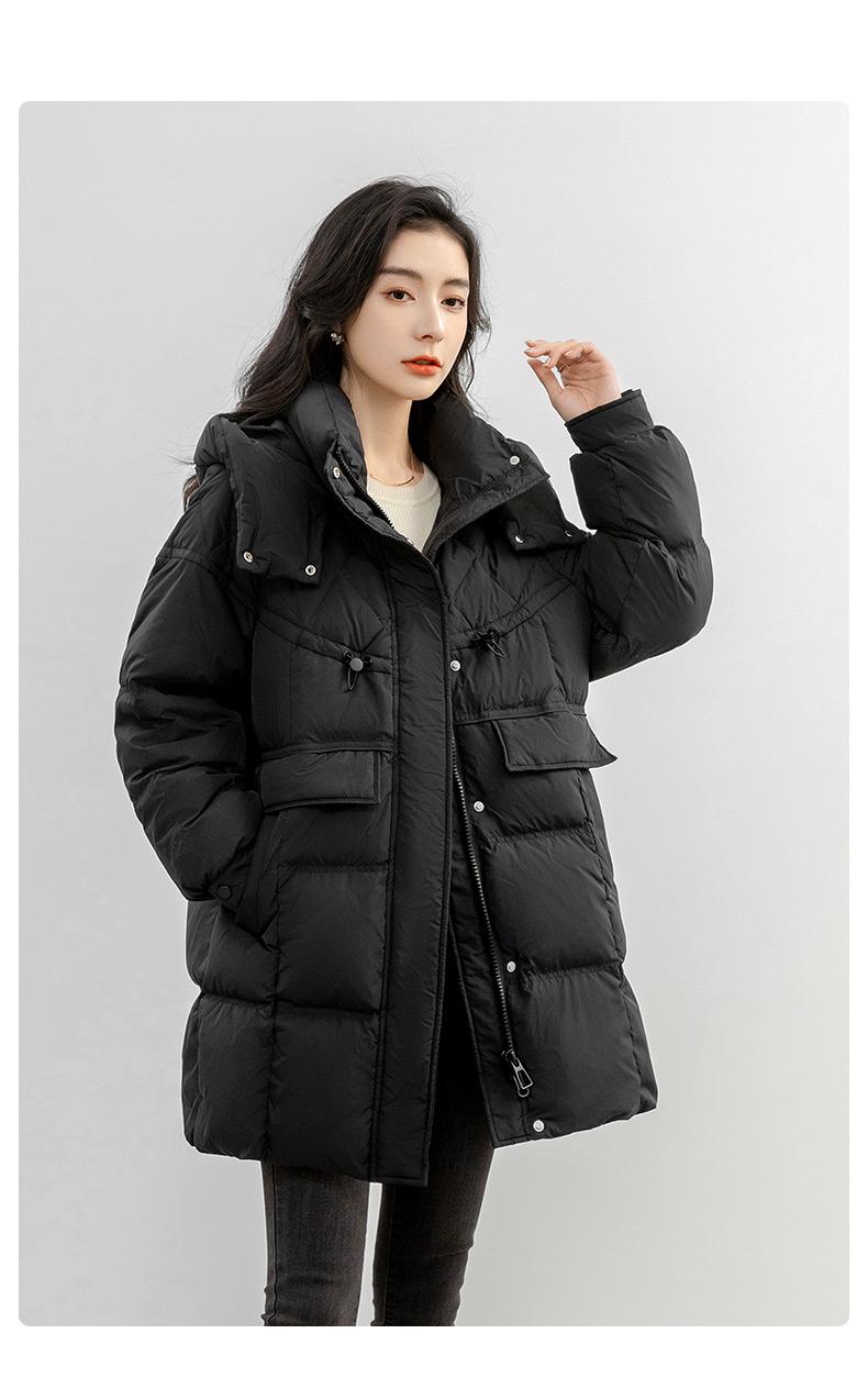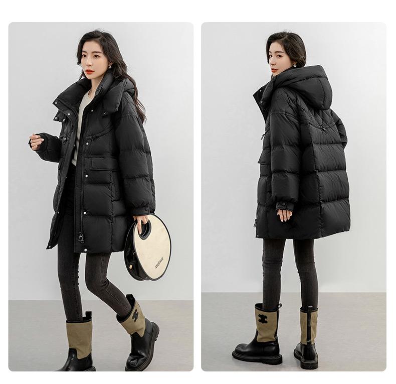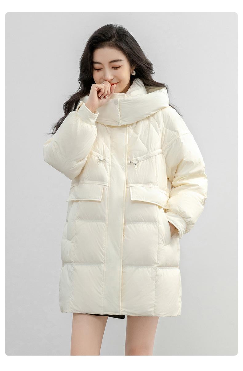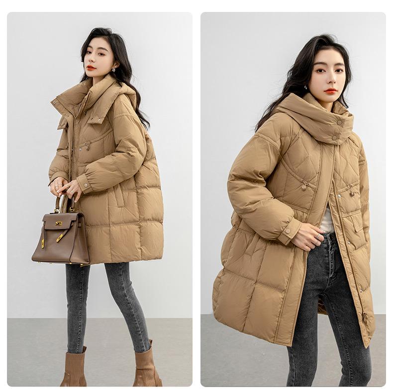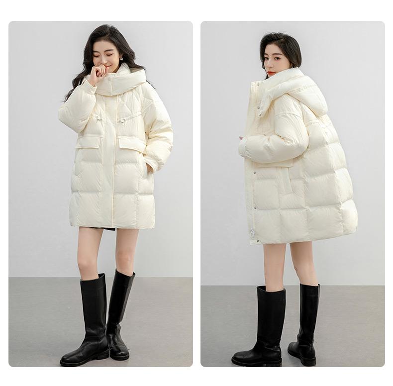 Chaqueta de plumón de pato para mujer 2024 Otoño e Invierno Largo Medio con Capucha Moda Color Sólido Estilo Coreano Suelta Cálida Chaqueta de plumón de pato
