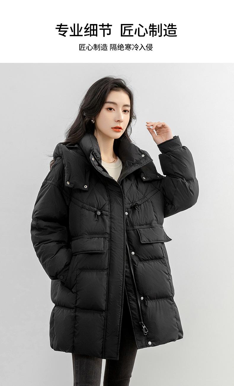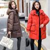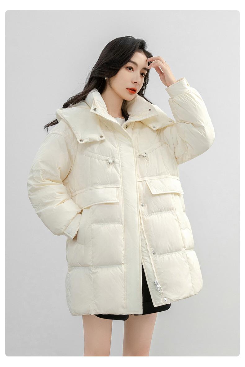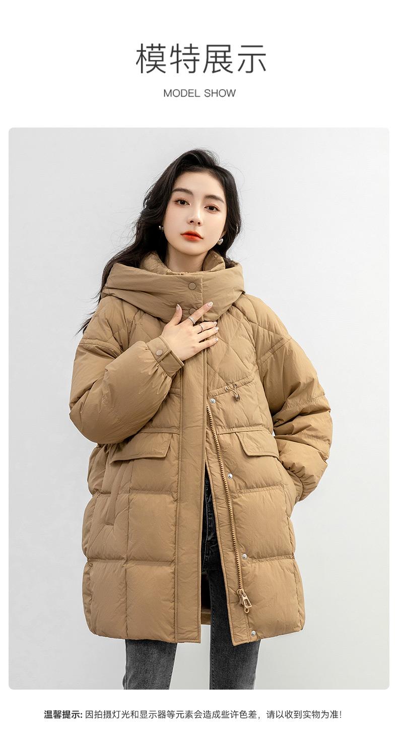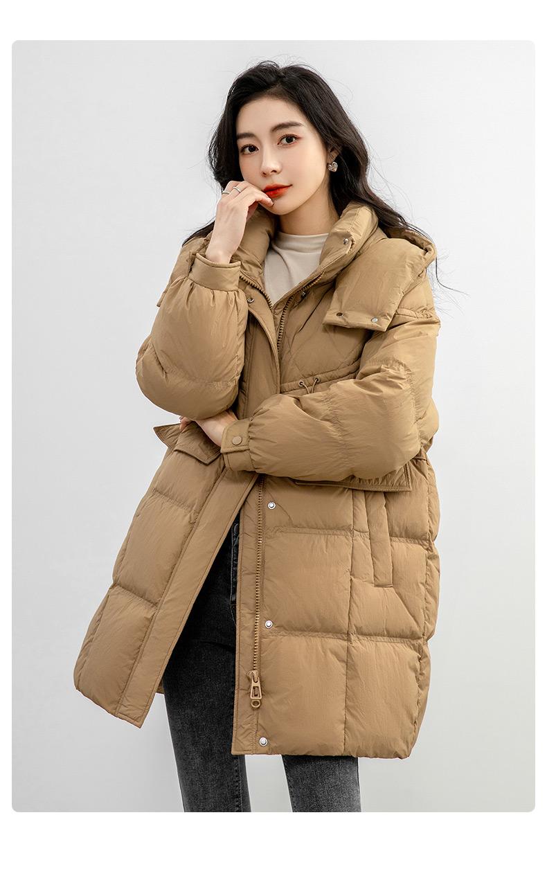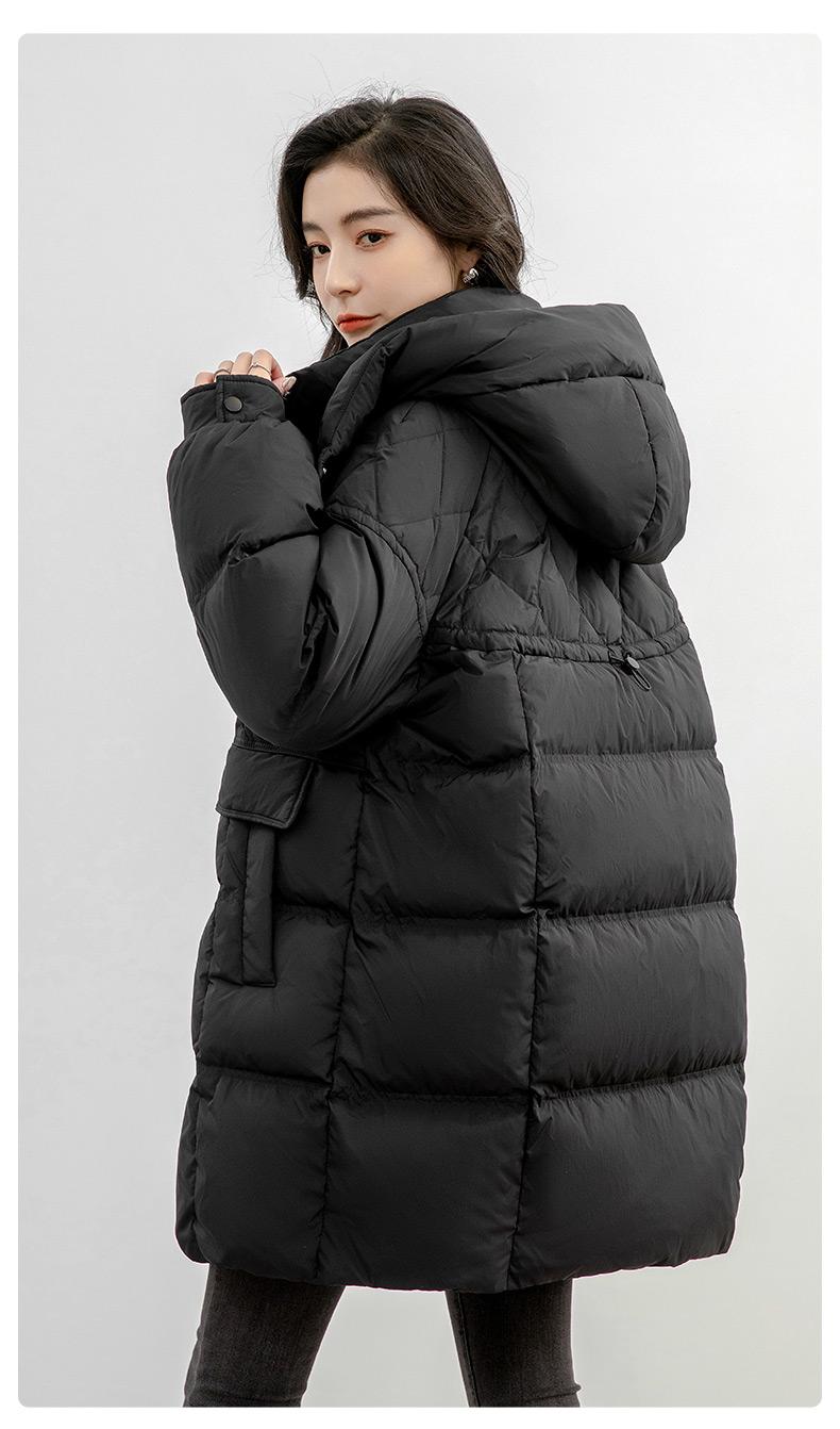 Chaqueta de plumón de pato para mujer 2024 Otoño e Invierno Largo Medio con Capucha Moda Color Sólido Estilo Coreano Suelta Cálida Chaqueta de plumón de pato