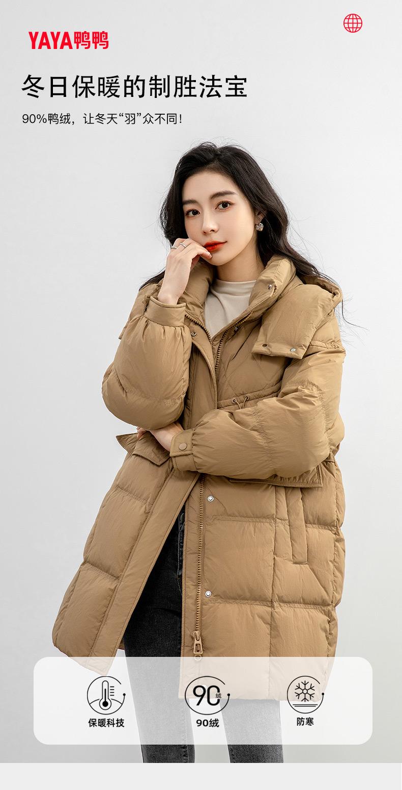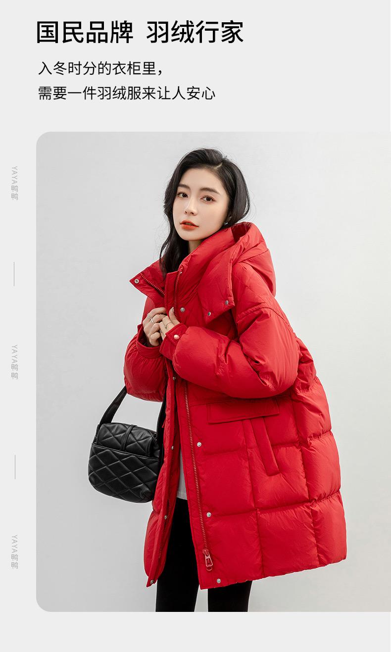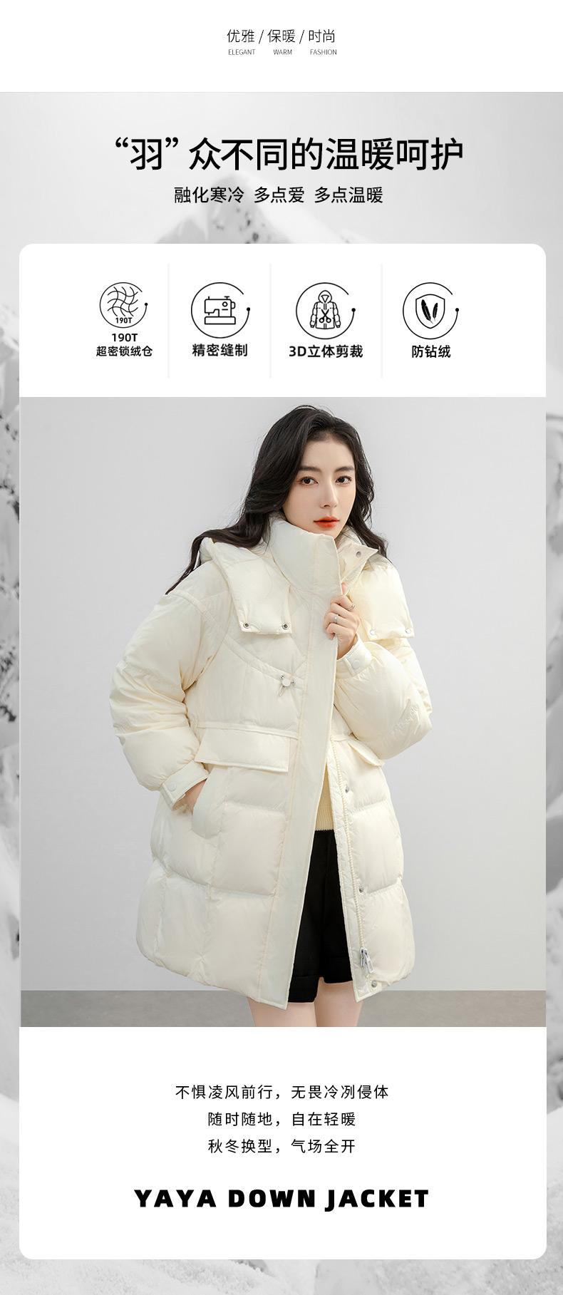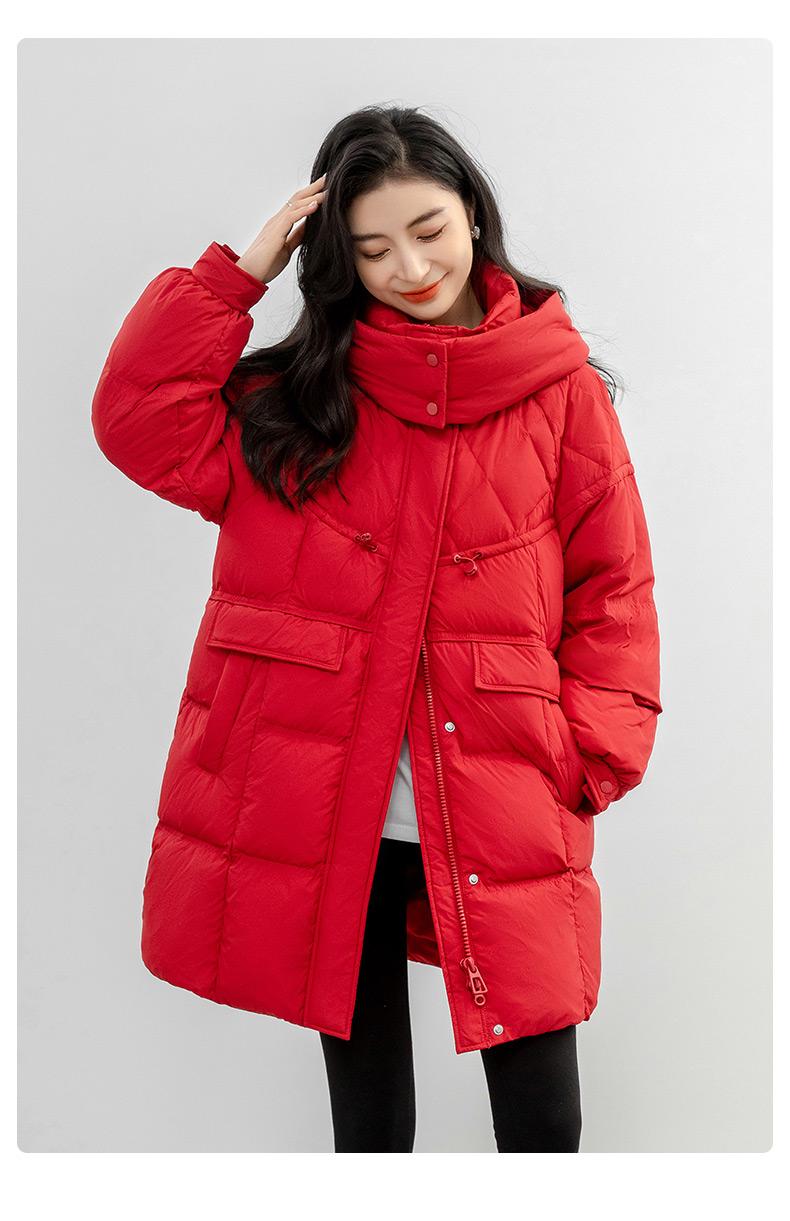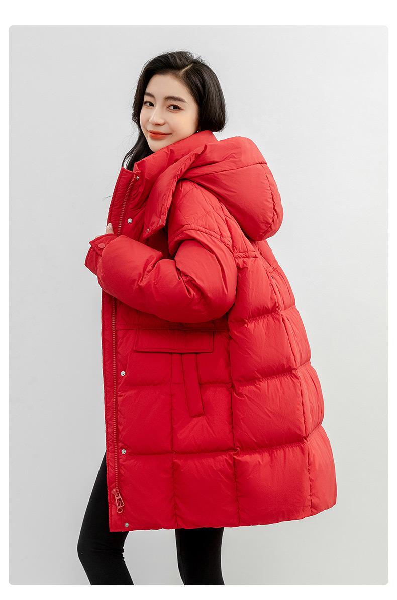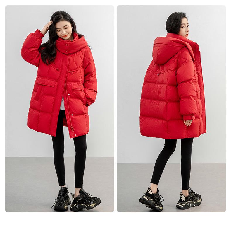 Chaqueta de plumón de pato para mujer 2024 Otoño e Invierno Largo Medio con Capucha Moda Color Sólido Estilo Coreano Suelta Cálida Chaqueta de plumón de pato