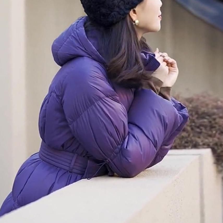 Abrigo acolchado de algodón morado para mujer, de invierno, de longitud media, grueso, cálido, de nicho, ajustado a la cintura, estilo coreano, chaqueta acolchada europea