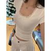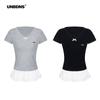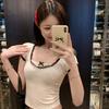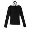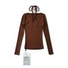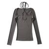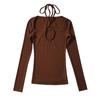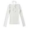Camiseta básica con cuello en V y cordones cruzados de Spice Girl para mujer, nueva camiseta de manga larga ajustada, elástica y adelgazante, primavera y verano 2023