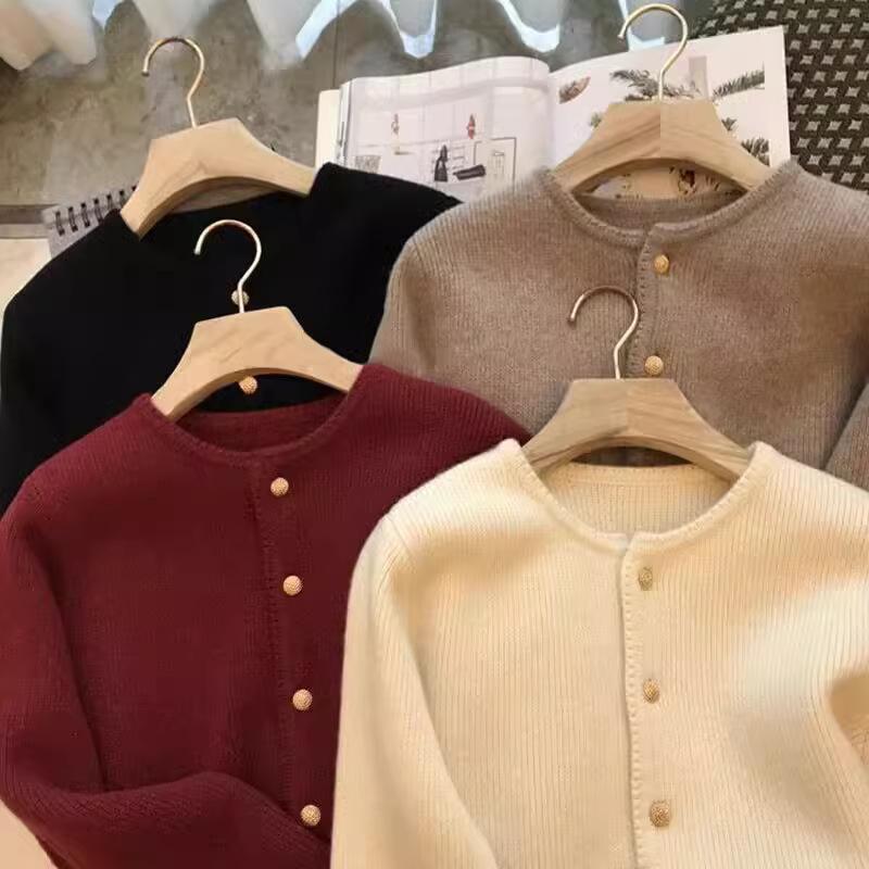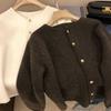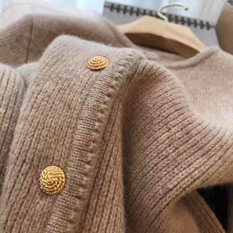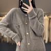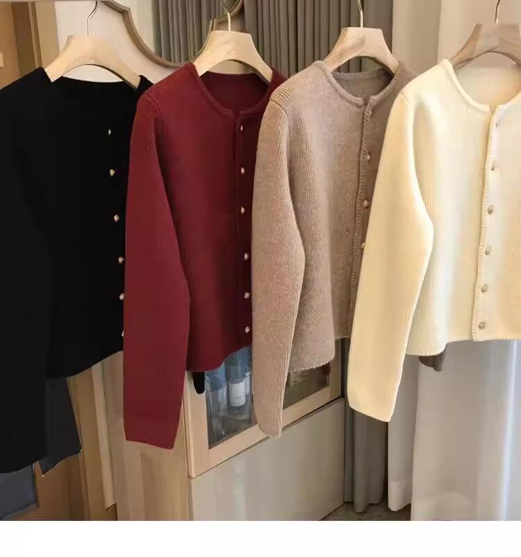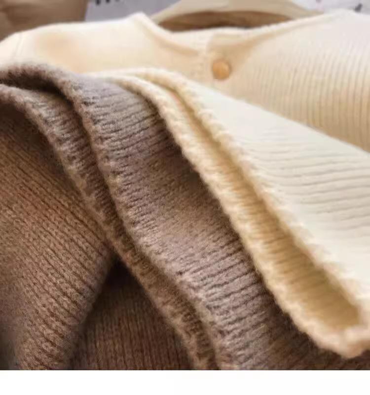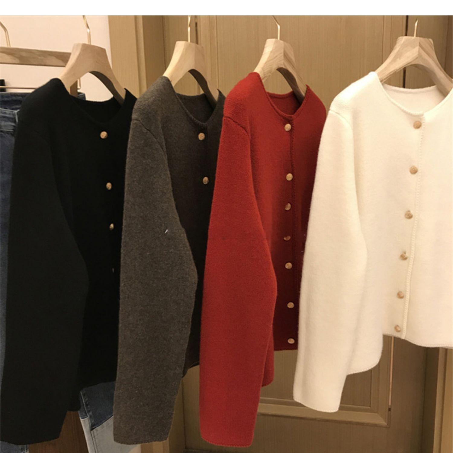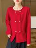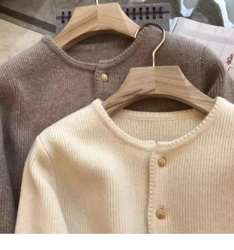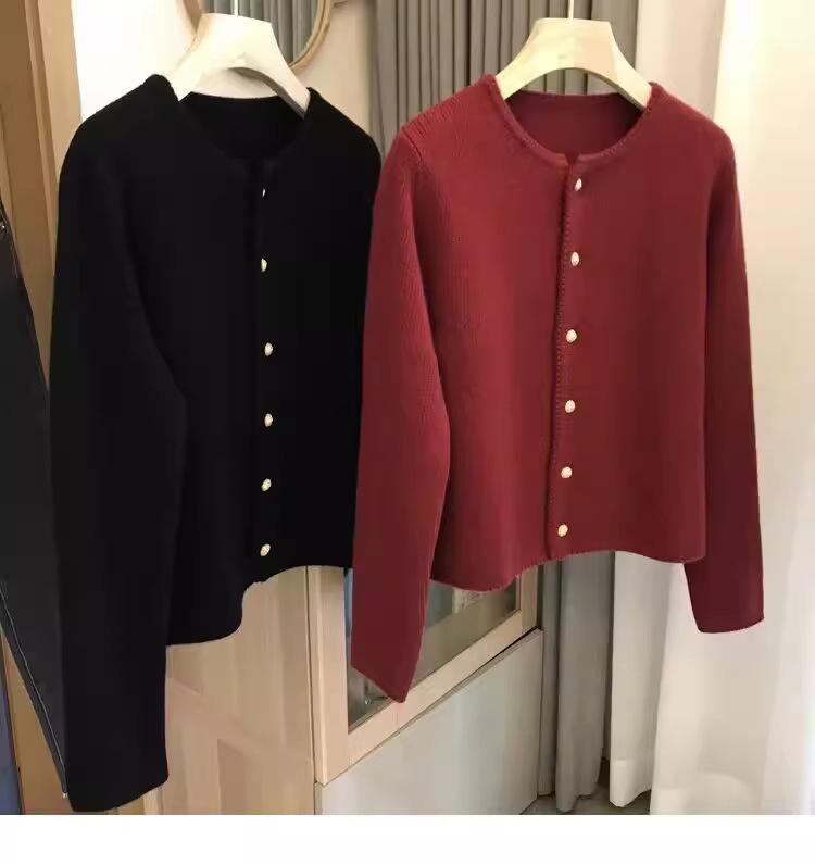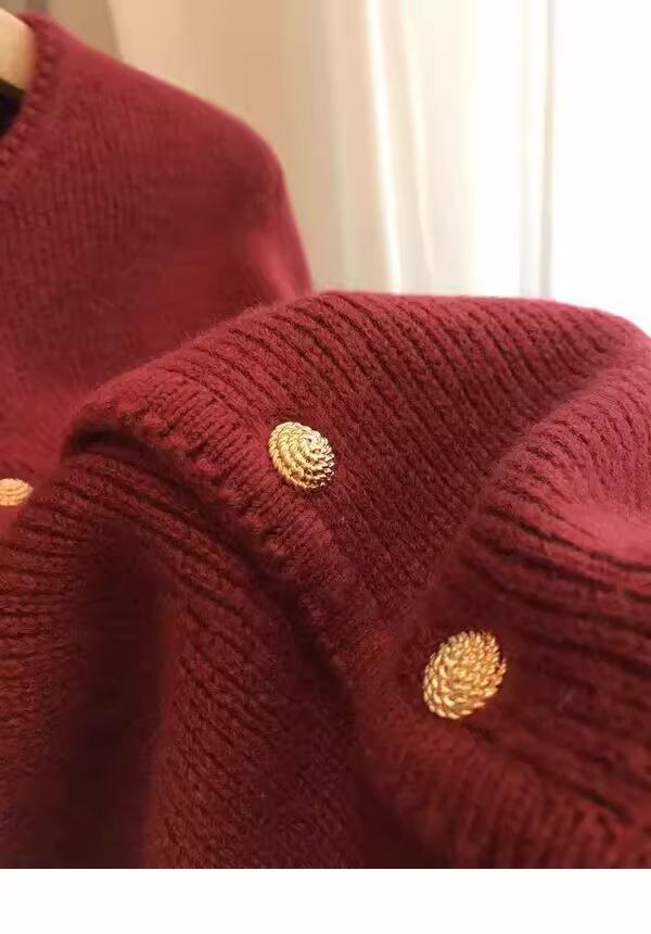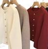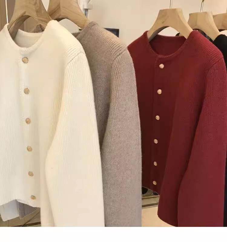 Cárdigan de punto de lana para mujer, suéter de lana 100%, otoño e invierno, cuello redondo, chaqueta holgada y gruesa, suéter rojo de moda