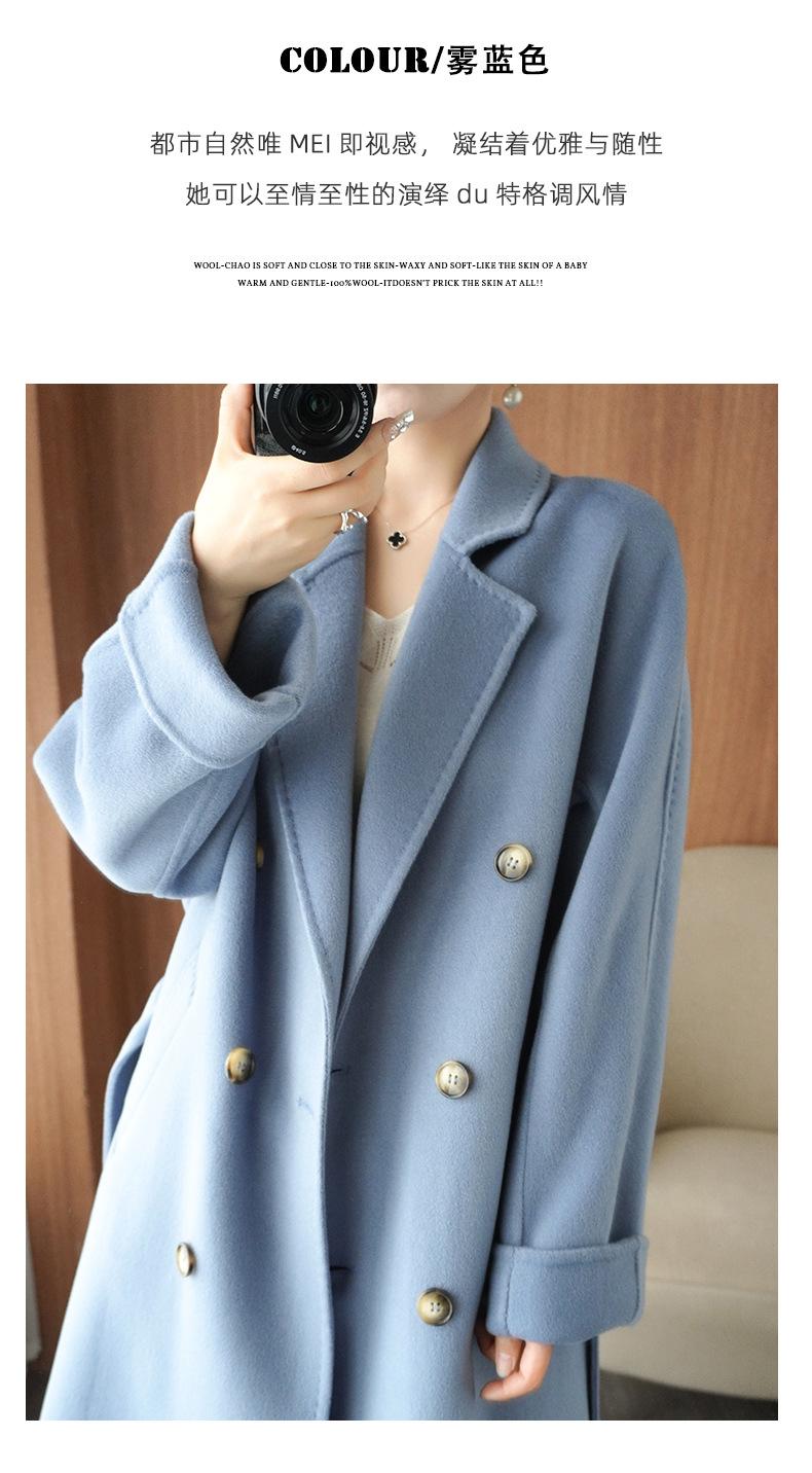 Abrigo de lana de doble cara holgado de estilo coreano nuevo de otoño e invierno de 2023, abrigo de lana de talla grande sobre la rodilla para mujer