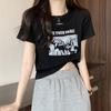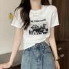 Camiseta estampada retro estilo Hong Kong para mujer, manga corta, diseño verano 2022, cuello redondo, nicho calado, corte ajustado corto