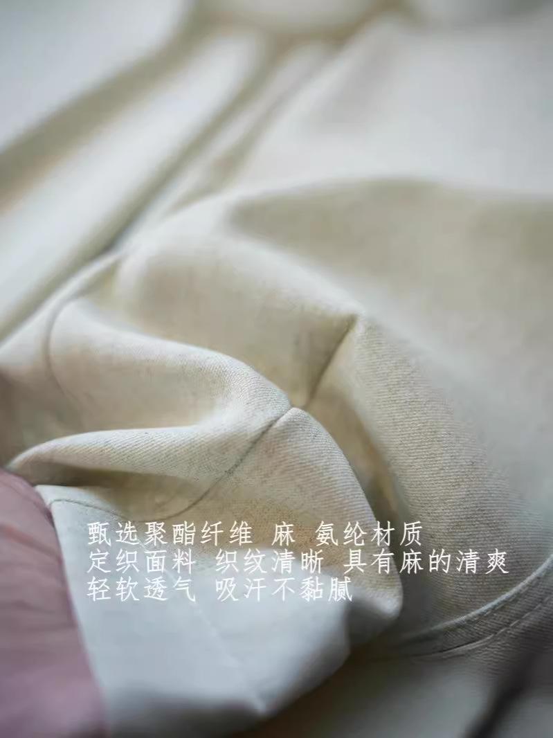 89% poliéster, 8,5% lino, 2,5% spandex