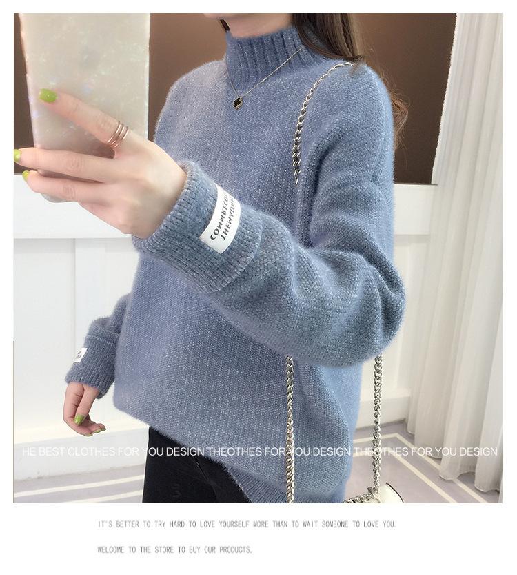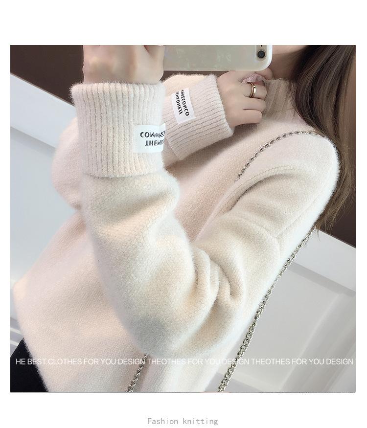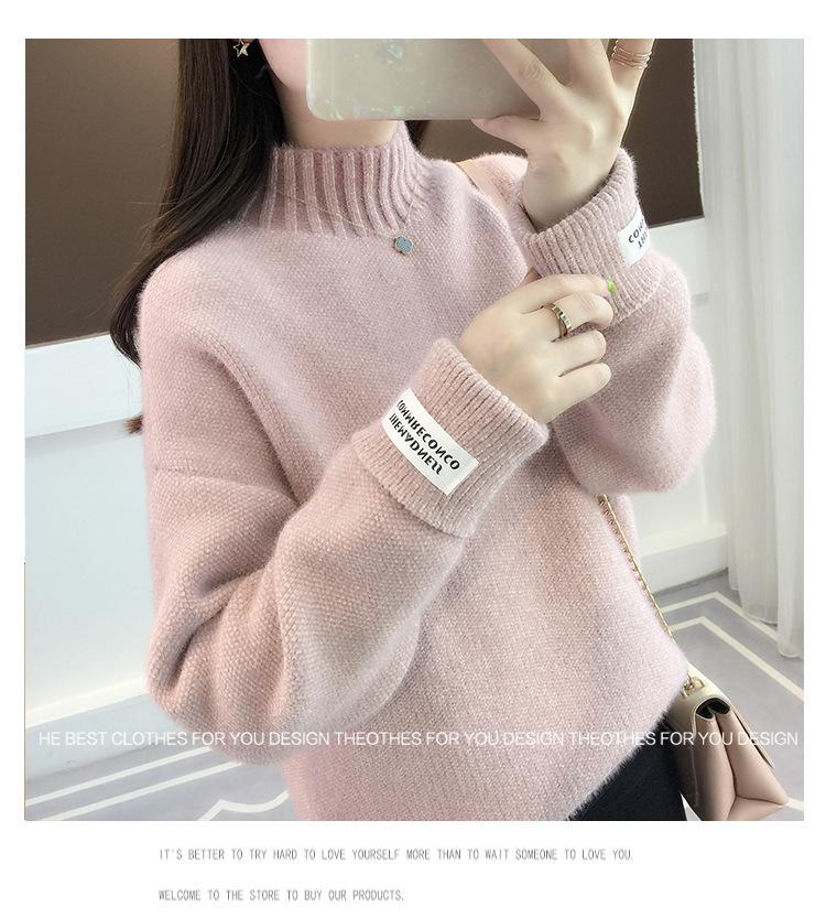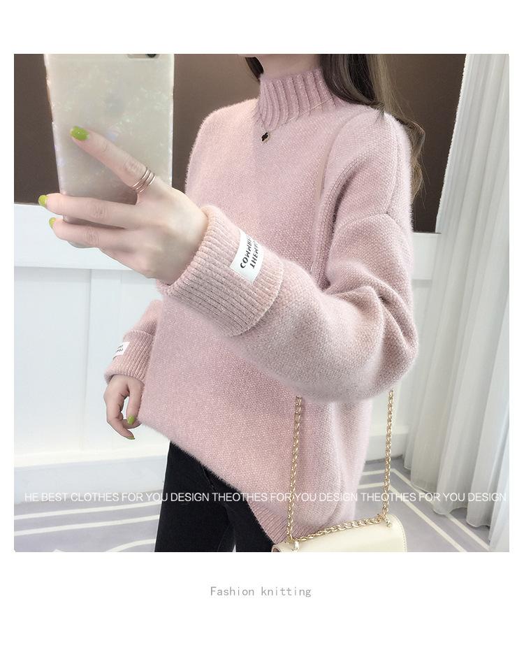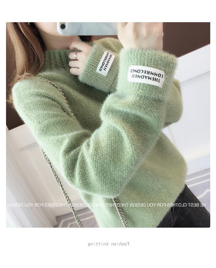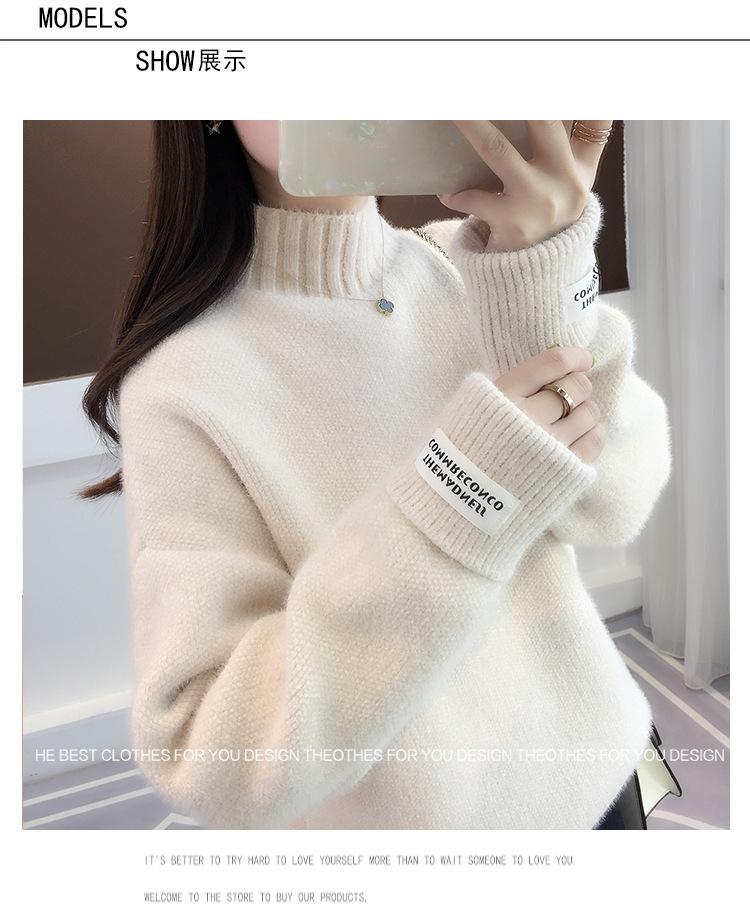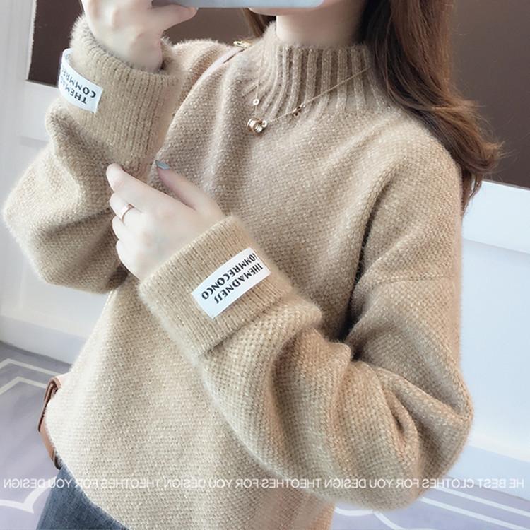 2025 Nuevo Otoño e Invierno Color Puro para Mujer Suéter Holgado de Cuello Medio Alto Tejido para Fondo Estudiantil Suéter de Visón para Mujer