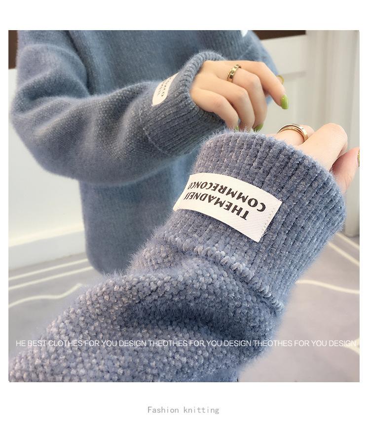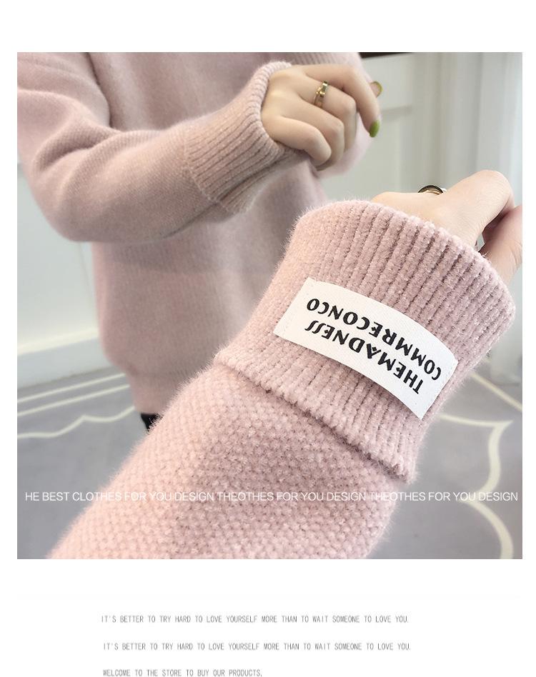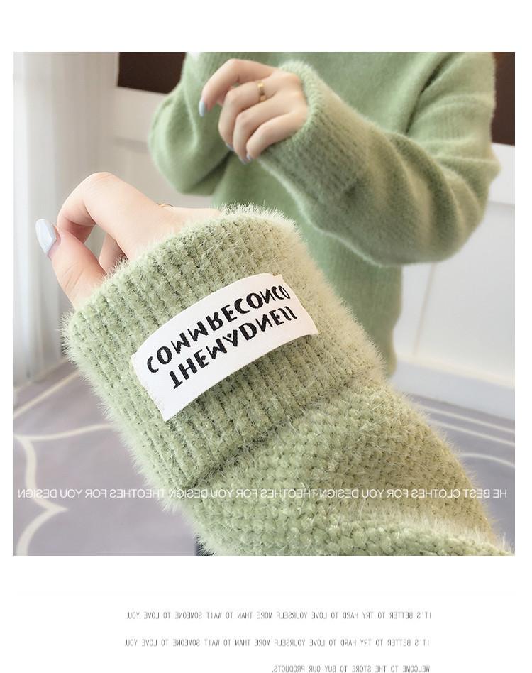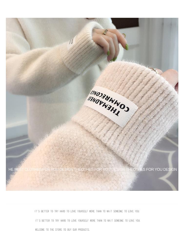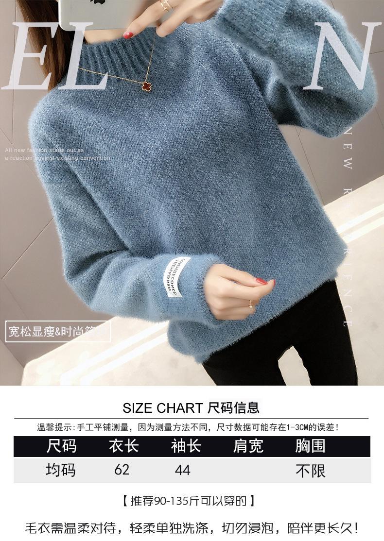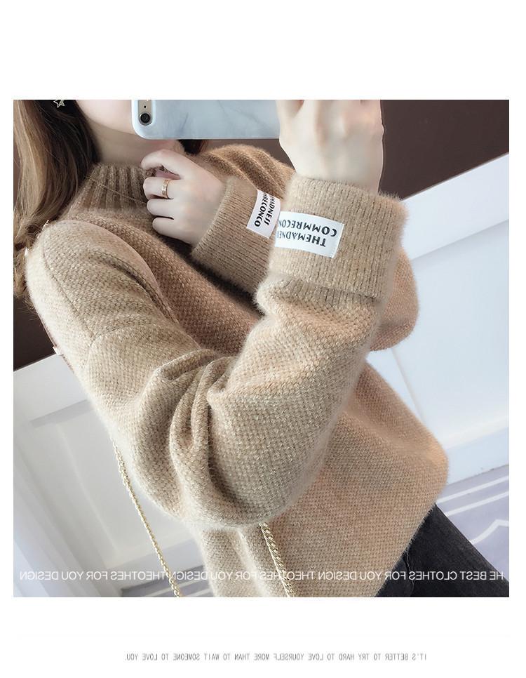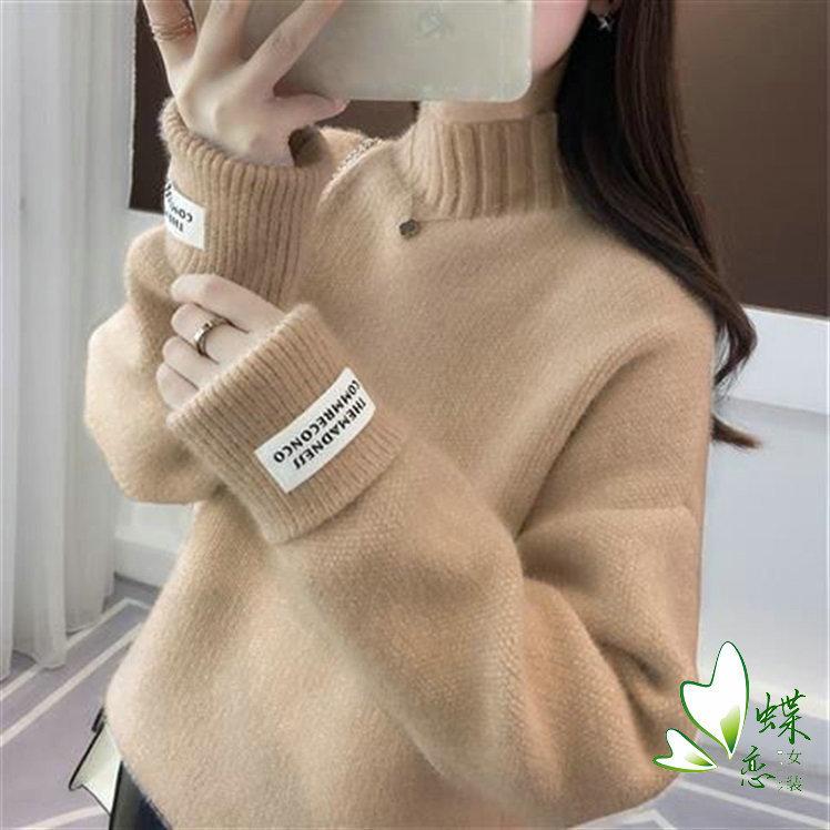 2025 Nuevo Otoño e Invierno Color Puro para Mujer Suéter Holgado de Cuello Medio Alto Tejido para Fondo Estudiantil Suéter de Visón para Mujer