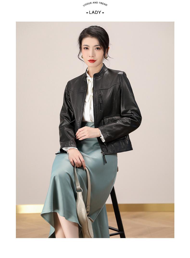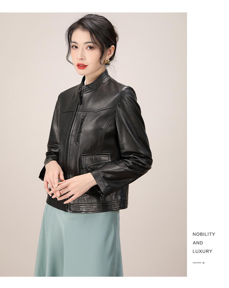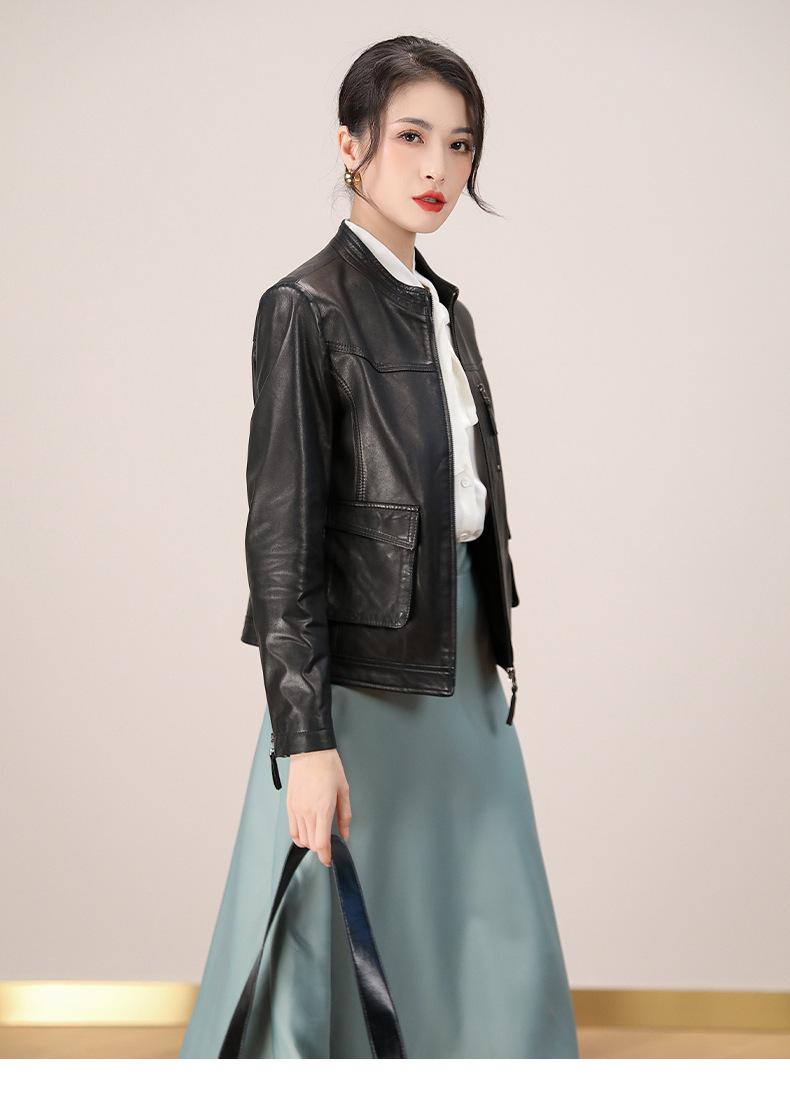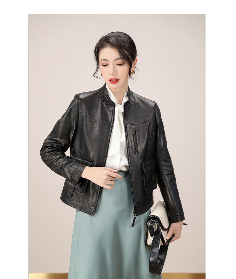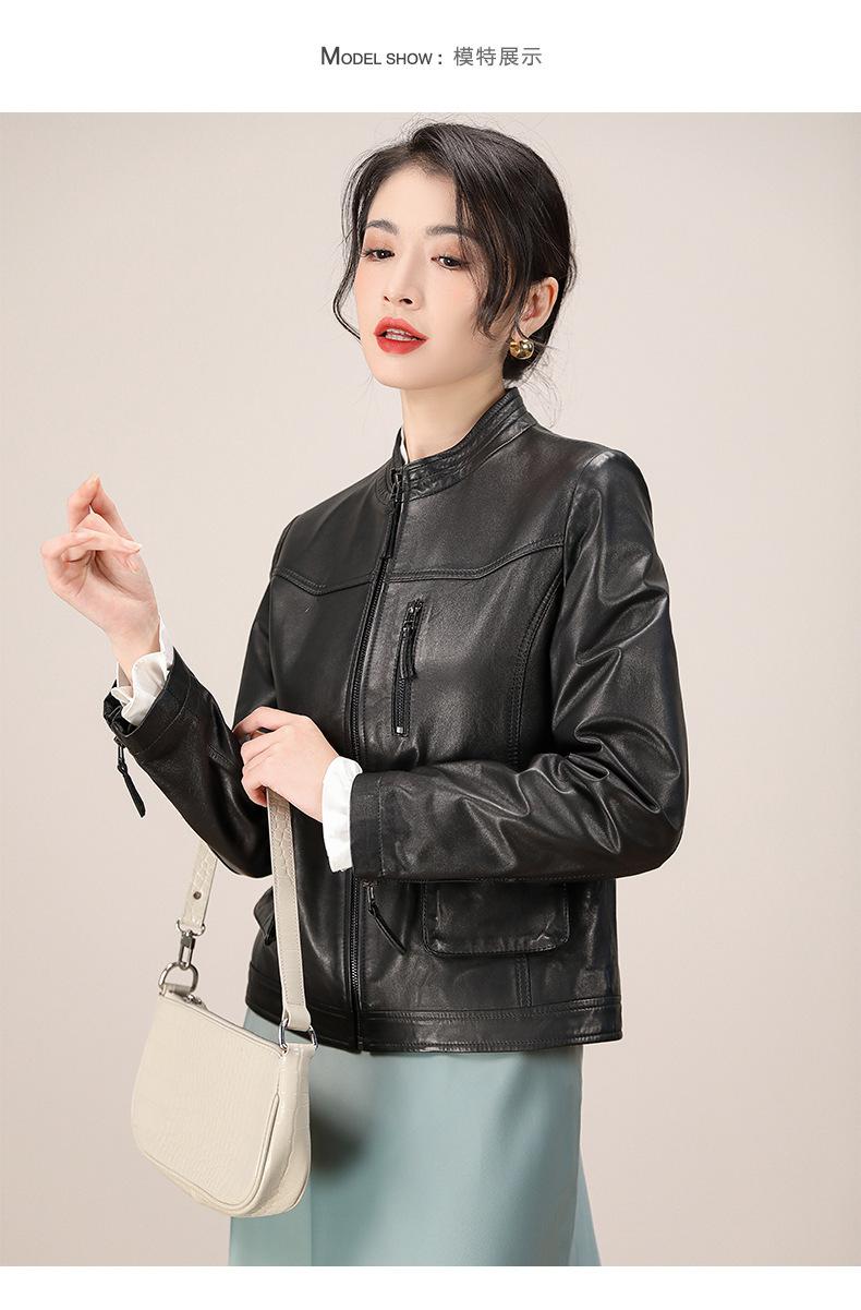 Chaqueta de Cuero Genuino para Mujer 2025 Nuevo Estilo Cuello Mao Pequeño Motocicleta Oveja Cuero de Curtido Vegetal Completo Chaqueta con Elegancia Versátil