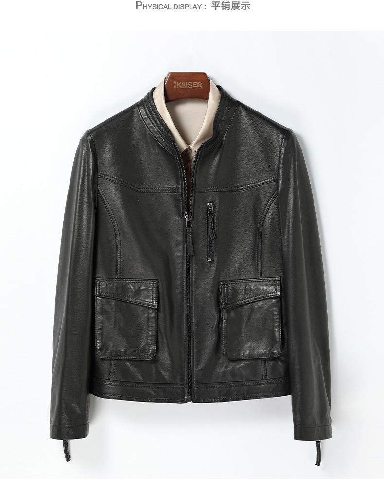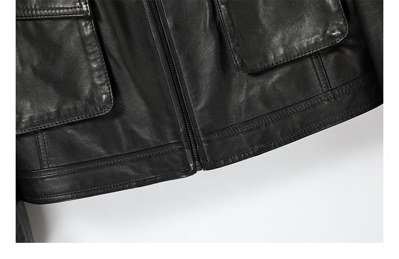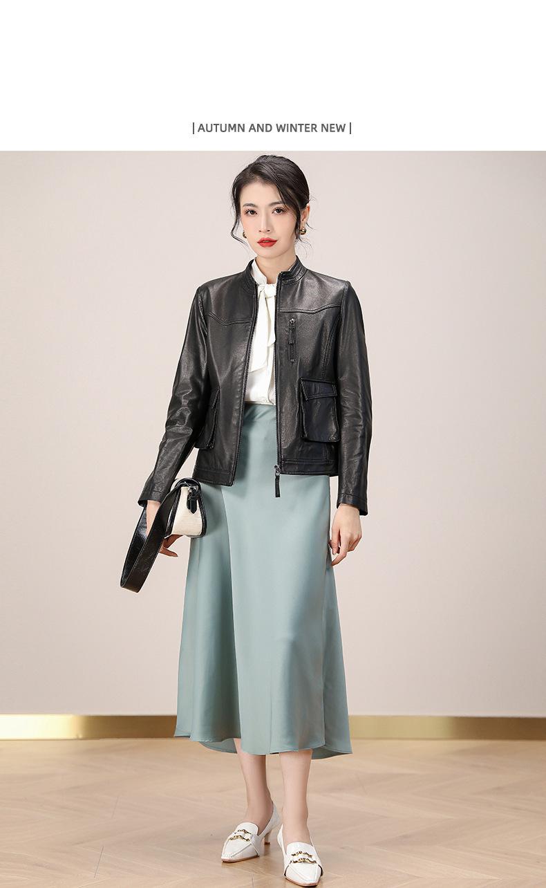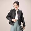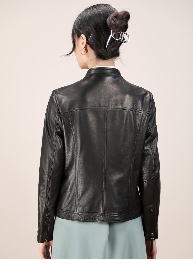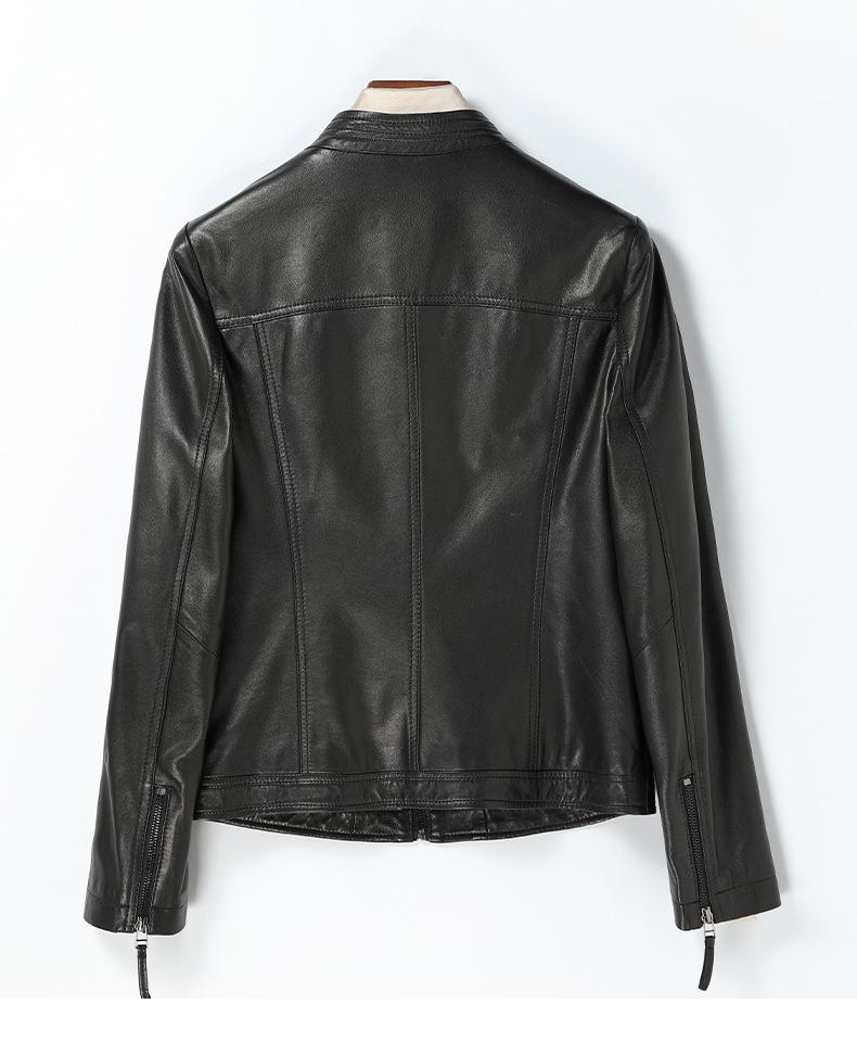 Chaqueta de Cuero Genuino para Mujer 2025 Nuevo Estilo Cuello Mao Pequeño Motocicleta Oveja Cuero de Curtido Vegetal Completo Chaqueta con Elegancia Versátil
