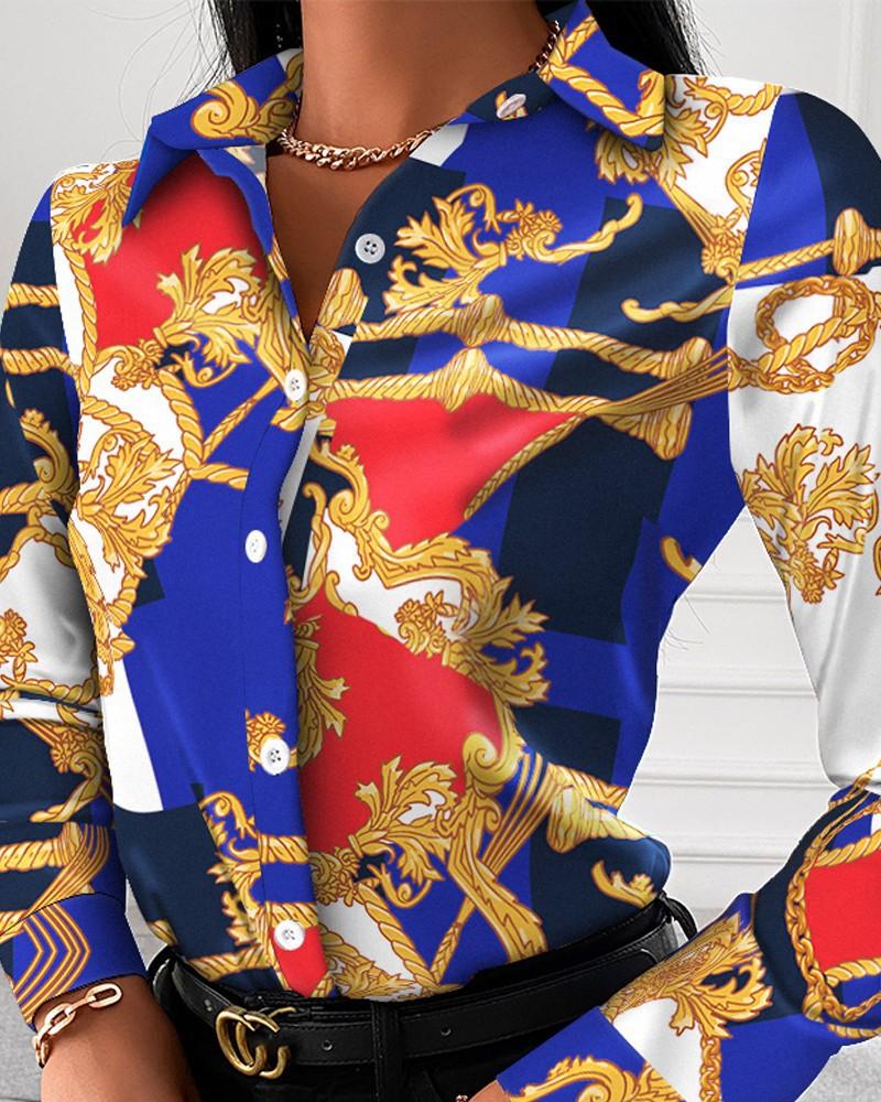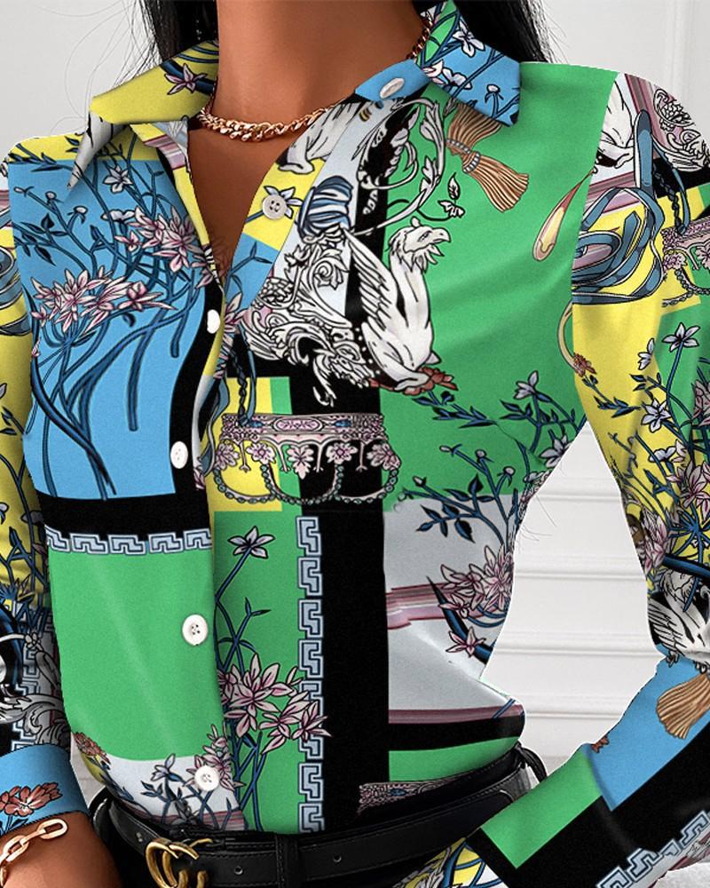 Comercio Exterior Transfronterizo Europeo y Americano Camisa de Mujer de Primavera y Otoño para Mujer Retro Elegante para Oficina Estampada de Manga Larga para Mujer
