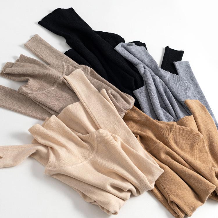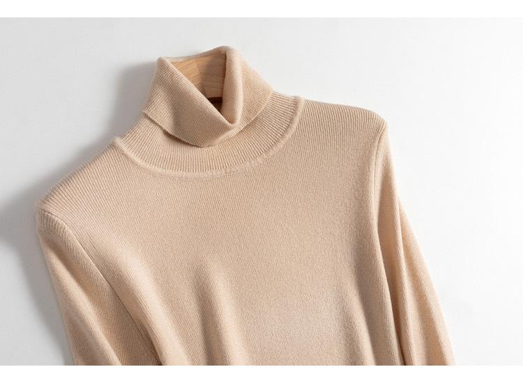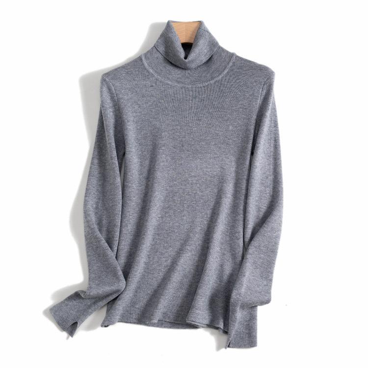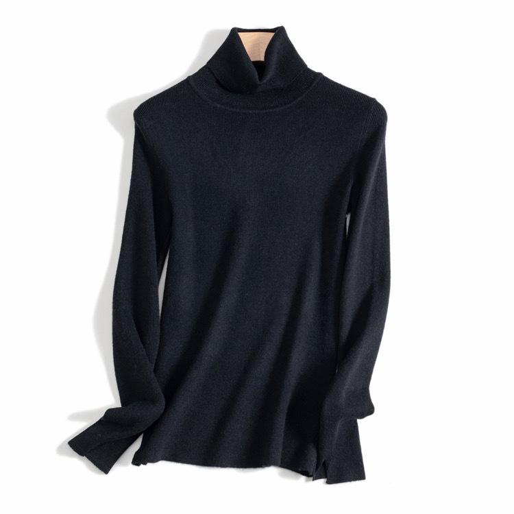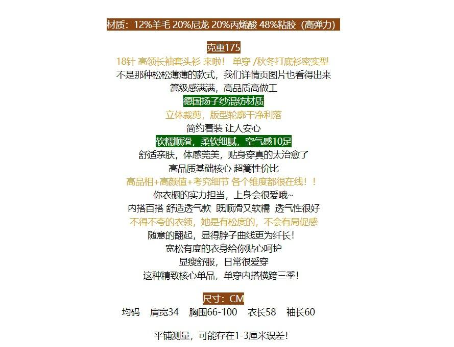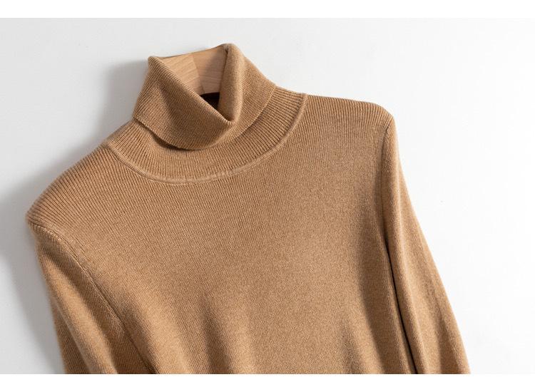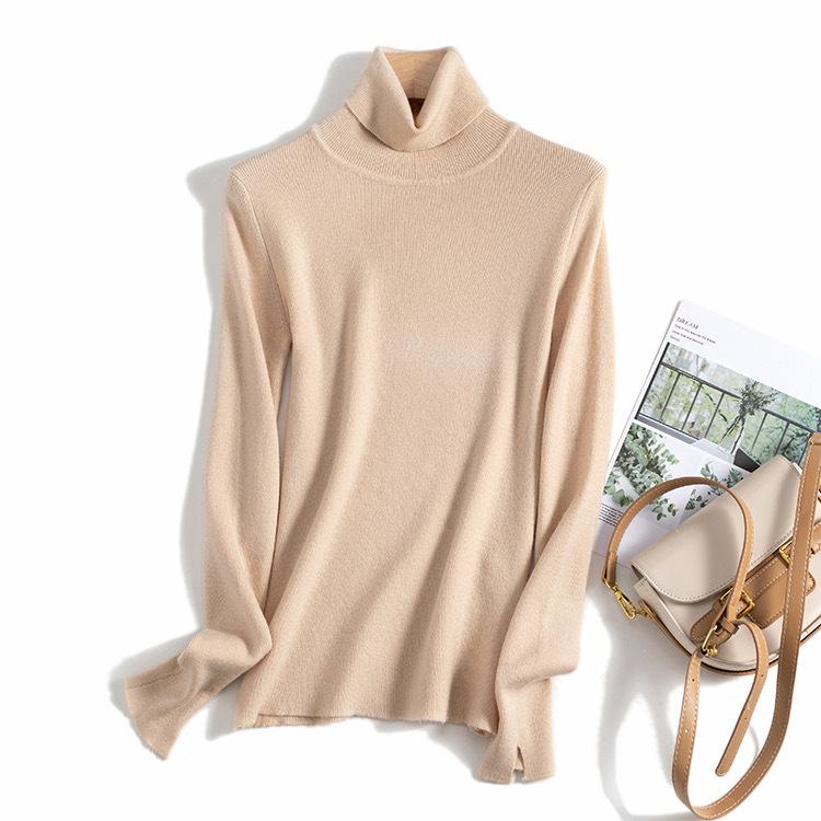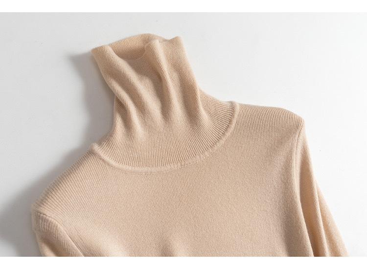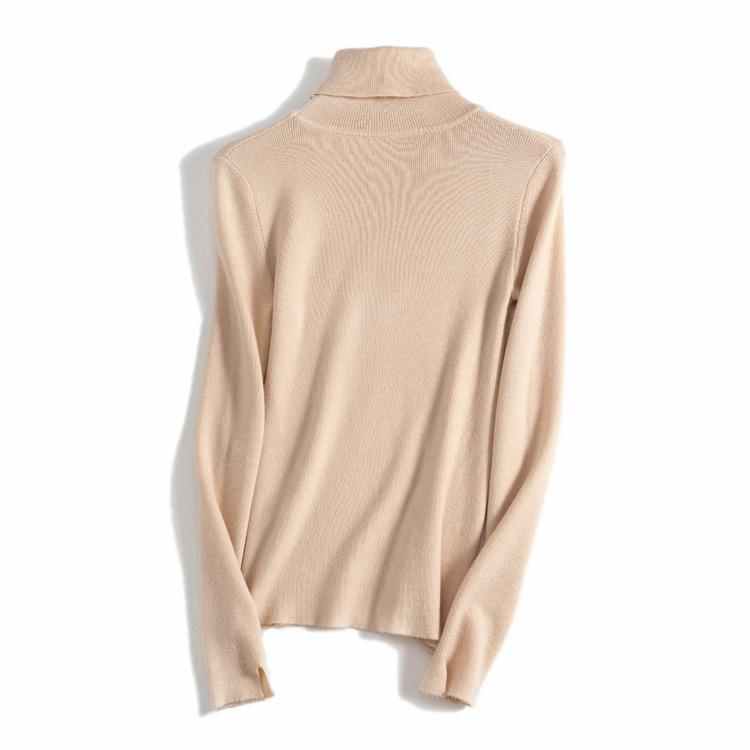 Suéter japonés de punto simple súper suave de lana glutinosa mezclada de gran elasticidad con cuello alto y manga larga
