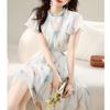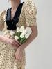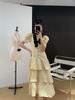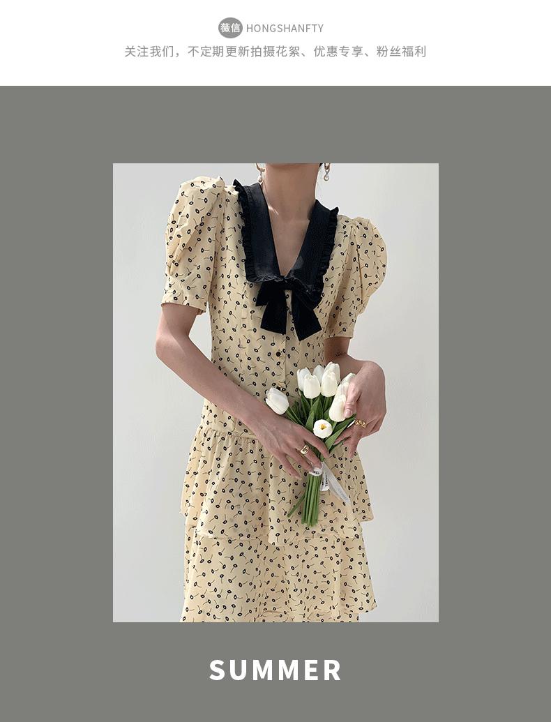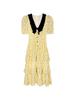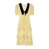 Hongyi 2025 Verano Nuevo Estilo Lady Vestido Francés Cuello V Dulce Elegante Lazo Falda Lunares