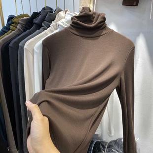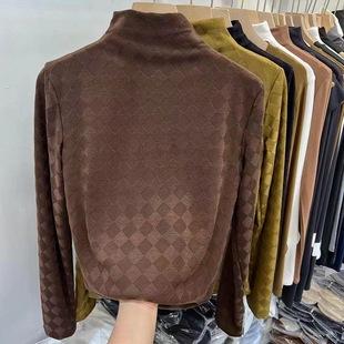 | Camisa de cuello alto de terciopelo alemán de doble cara de alta calidad para mujer en otoño e invierno con cuello apilado, terciopelo y camiseta de manga larga gruesa para partes superiores abrigadas. |