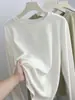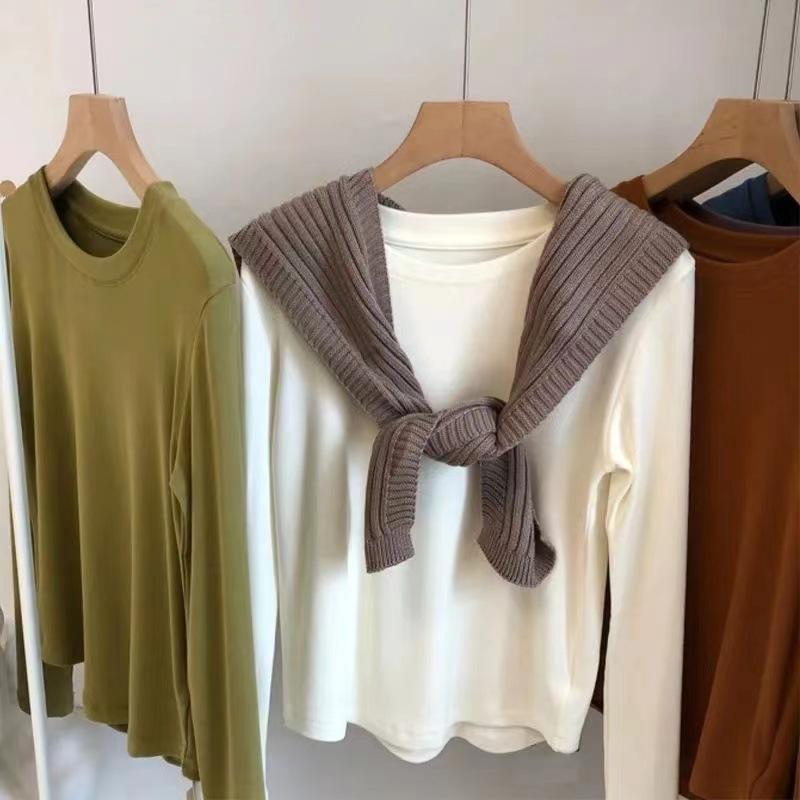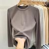 | Camisa de manga larga para mujer, suave y ajustada, de color liso, con cuello redondo pequeño y forro interior grueso de terciopelo, cálida, para otoño e invierno. |