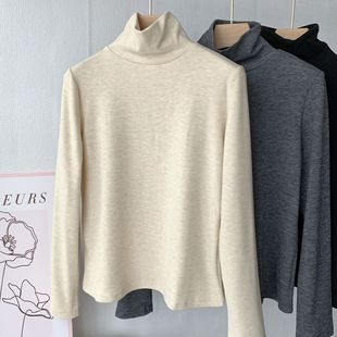 | Imagen real de una nueva camiseta de manga larga de otoño con cuello alto y algodón antibolitas para mujer, ideal para usar dentro de una blusa ajustada de cuello alto. |