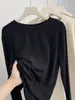 | Toma real de una camiseta de manga larga con decoración de línea para mujer, nueva camiseta interior elegante, delgada y versátil de otoño 2022 |