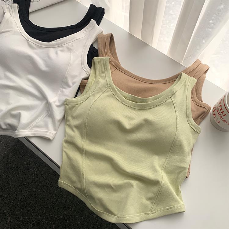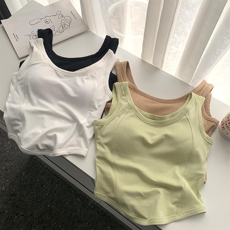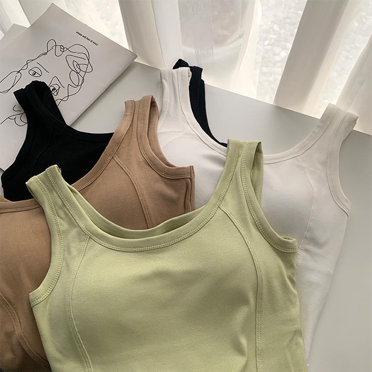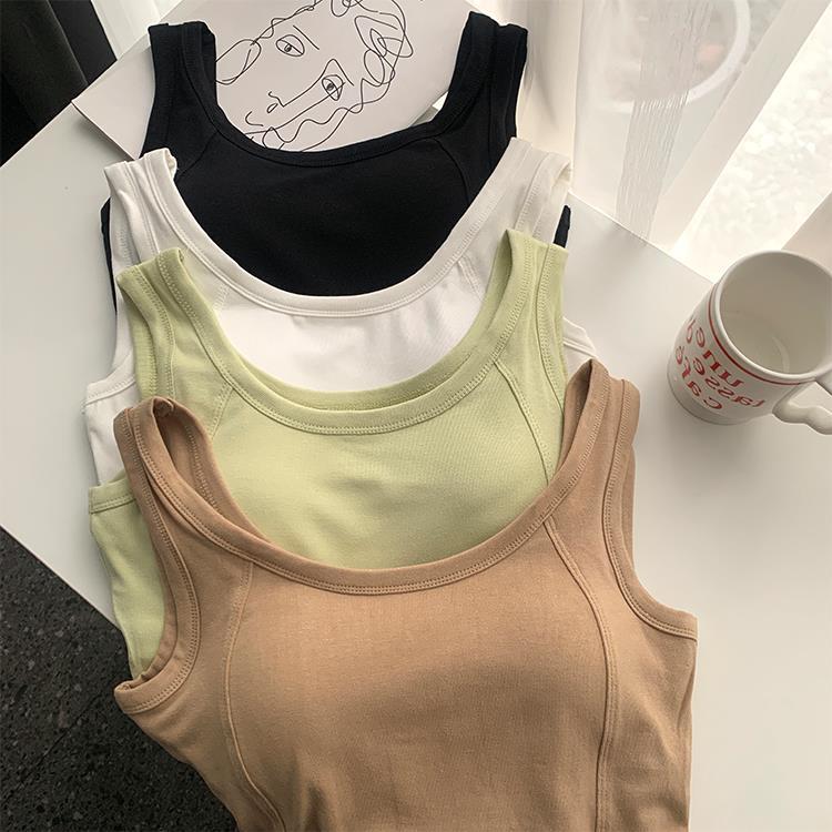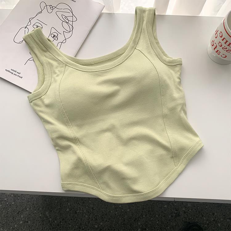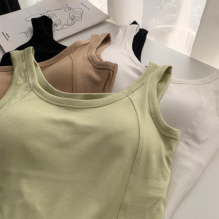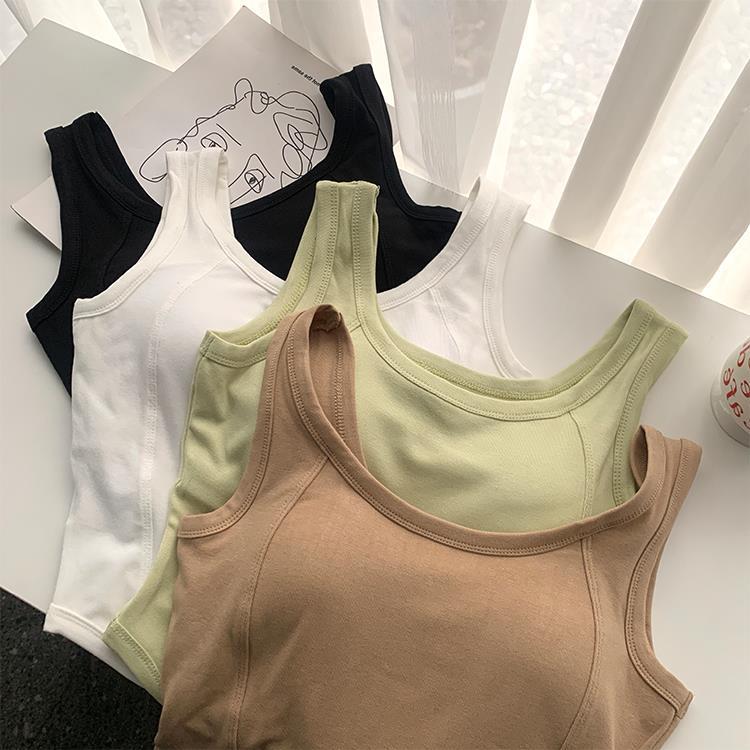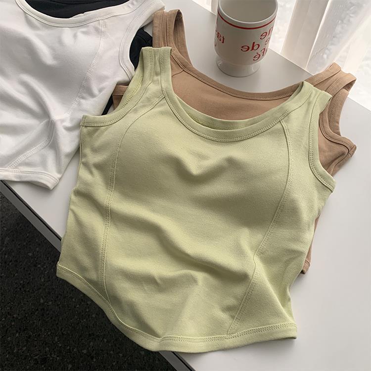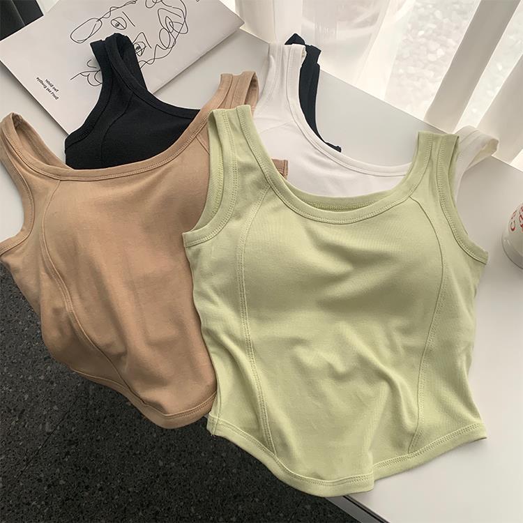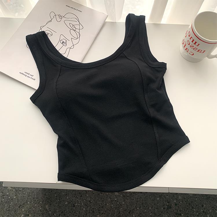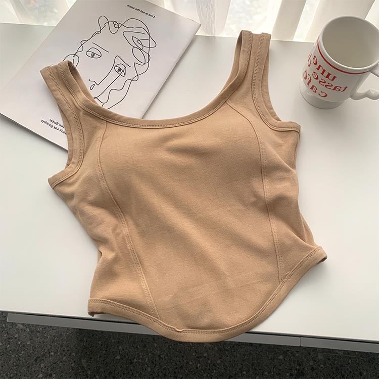 Camisola de puro deseo para mujer, ropa interior de primavera y verano, corte ajustado, adelgazante, espalda de belleza, diseño exterior, top básico con almohadilla en el pecho