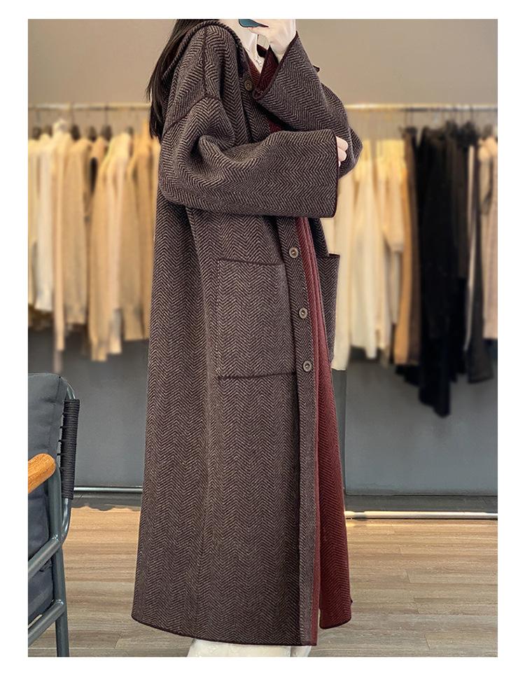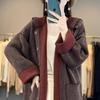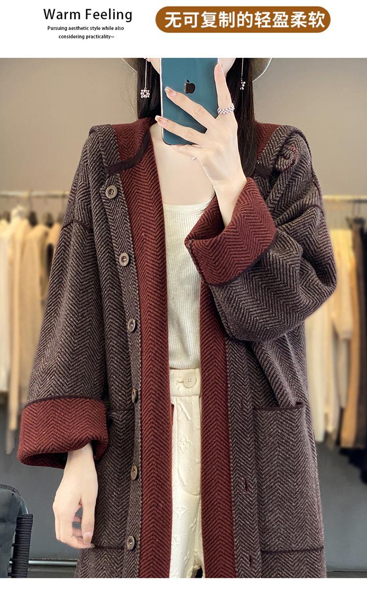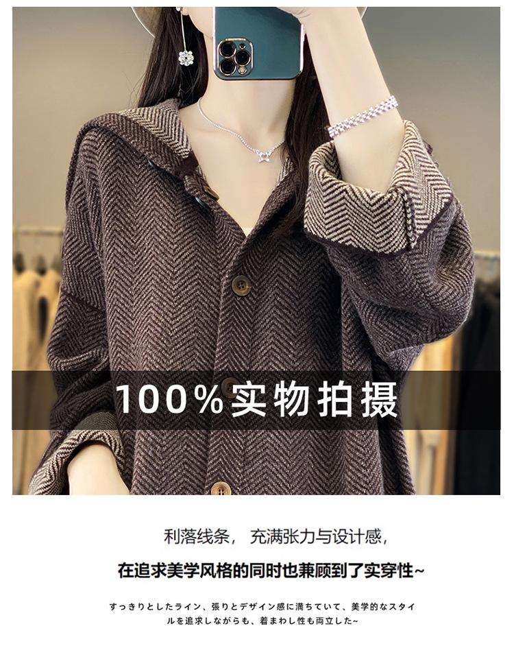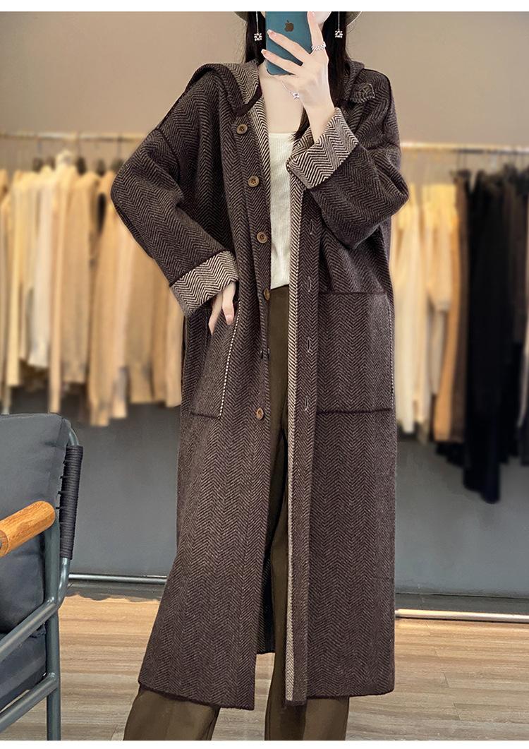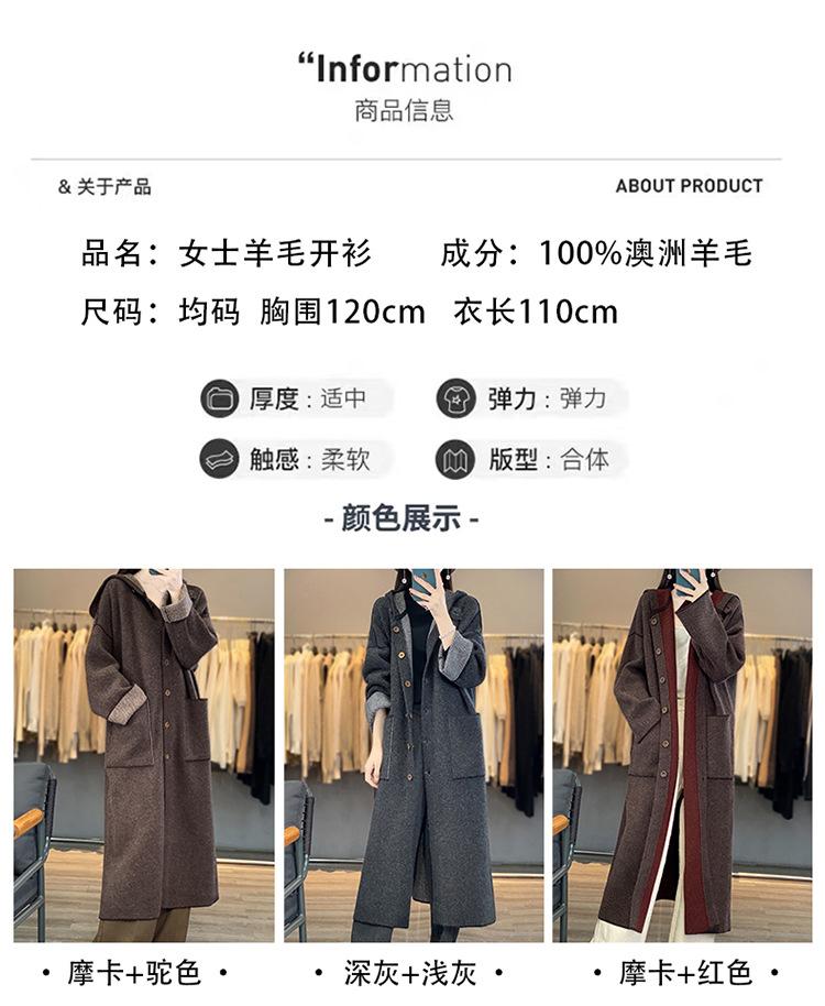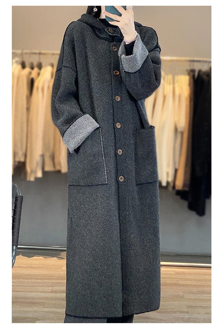 Cárdigan Vintage de Largo Medio para Mujer de Lana 100 Pura Nuevo Otoño Chaqueta No Cachemira Abrigo Exterior Grueso con Capucha