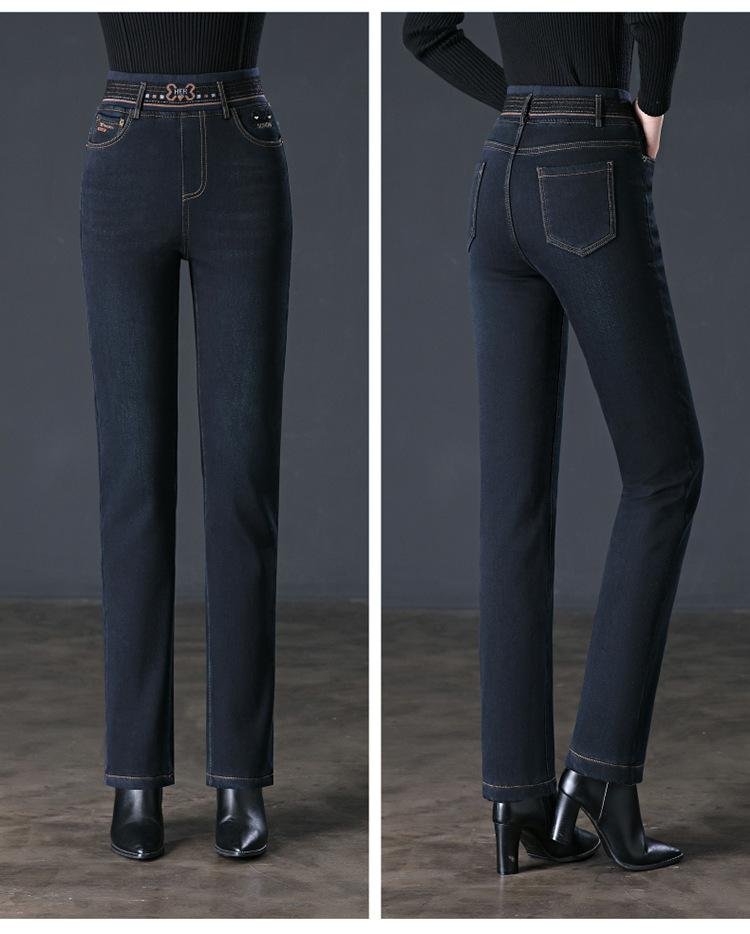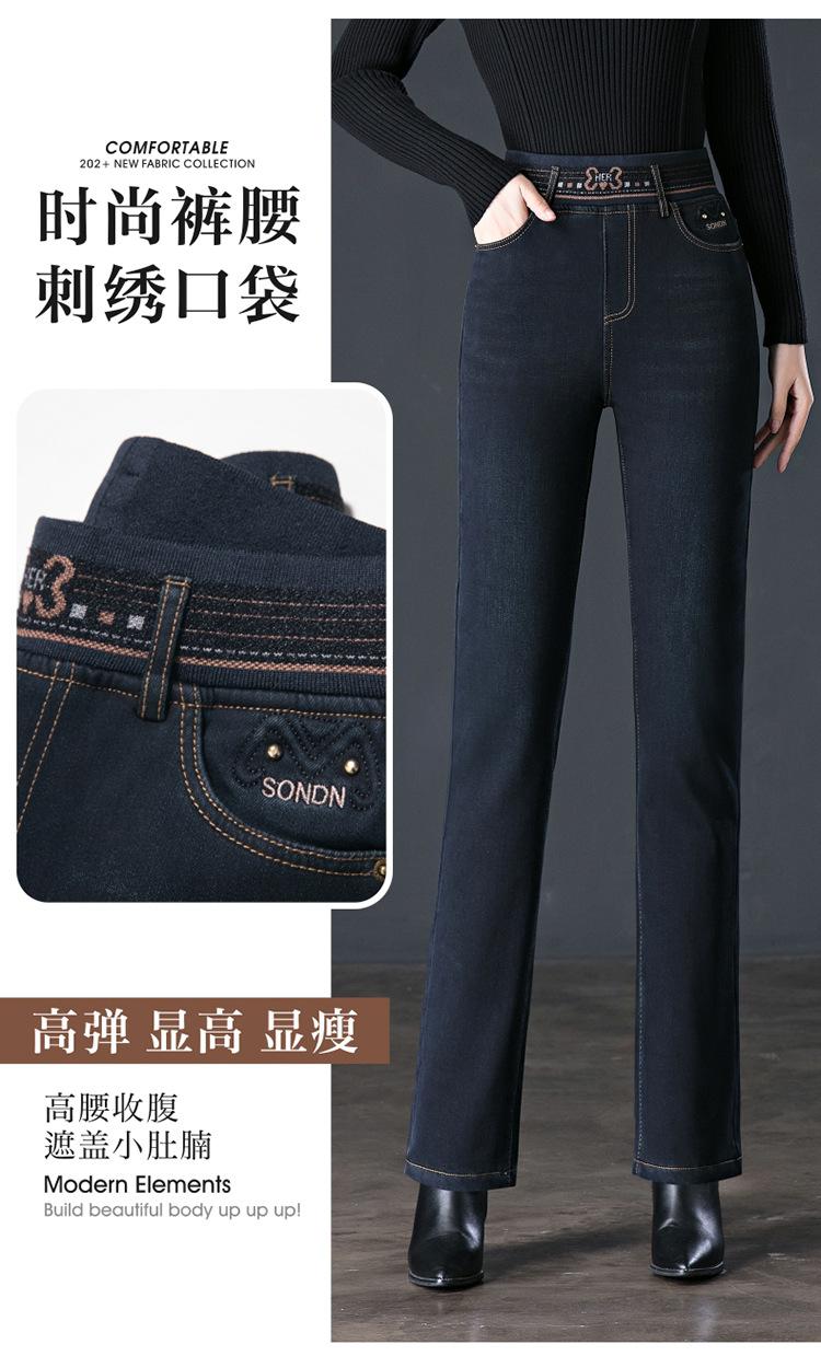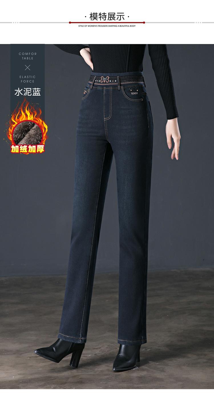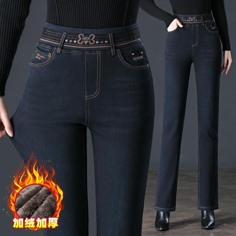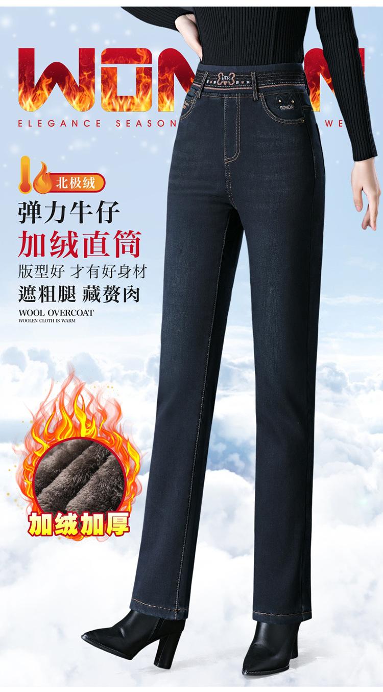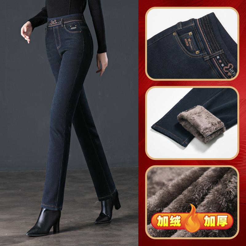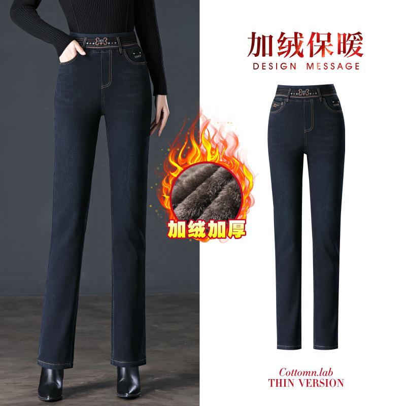 Pantalones vaqueros rectos, gruesos y cálidos con forro polar para mujer, primavera 2024, nuevos pantalones casuales adelgazantes de cintura alta para mamás