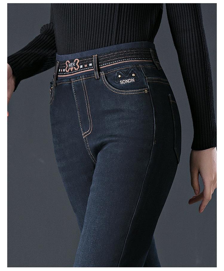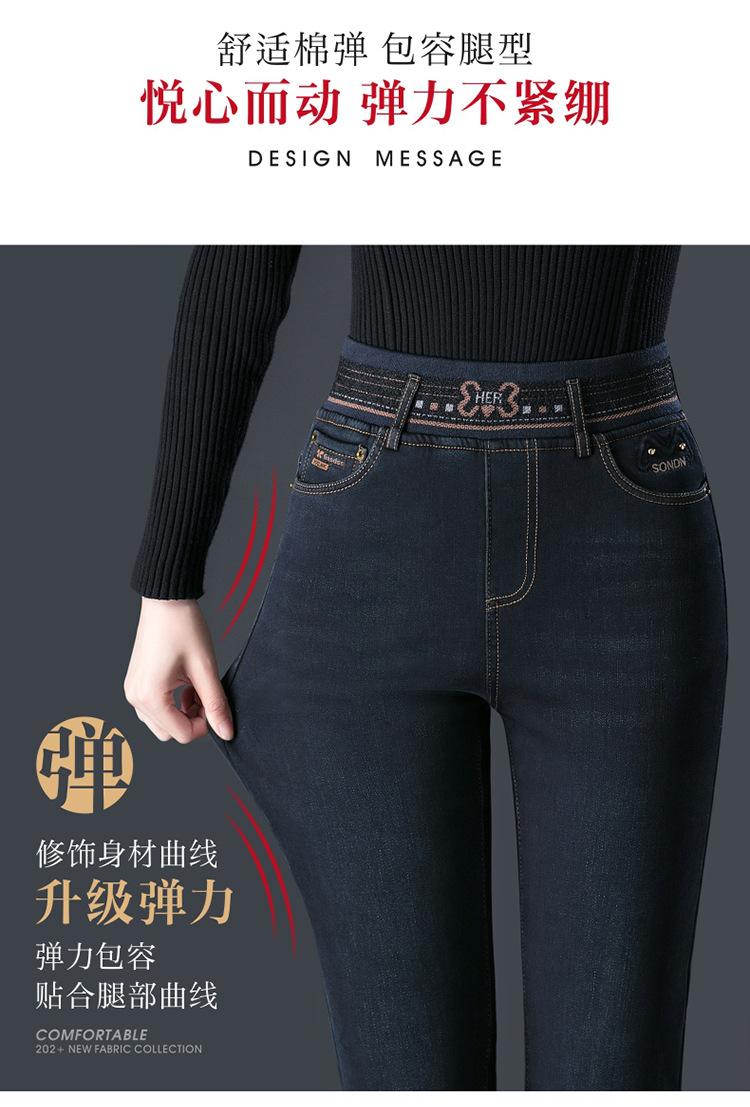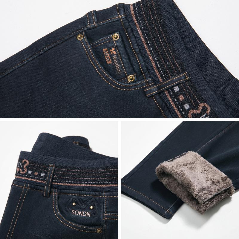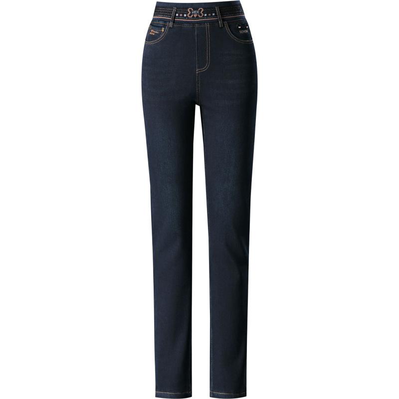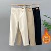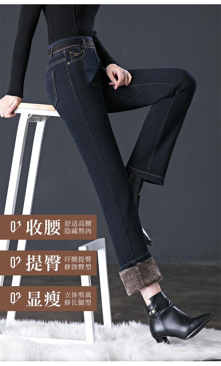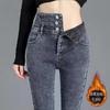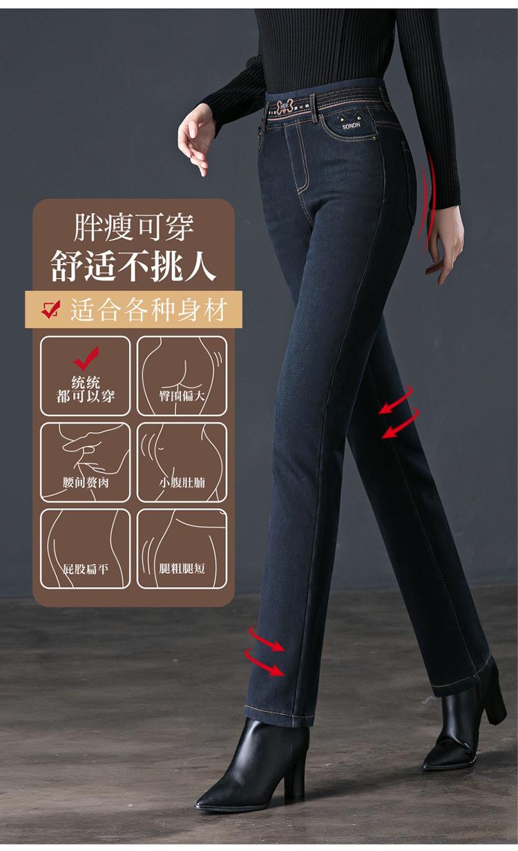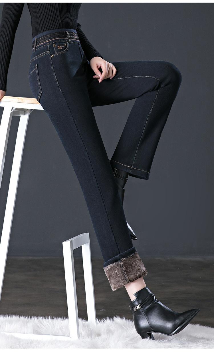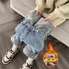 Pantalones vaqueros rectos, gruesos y cálidos con forro polar para mujer, primavera 2024, nuevos pantalones casuales adelgazantes de cintura alta para mamás