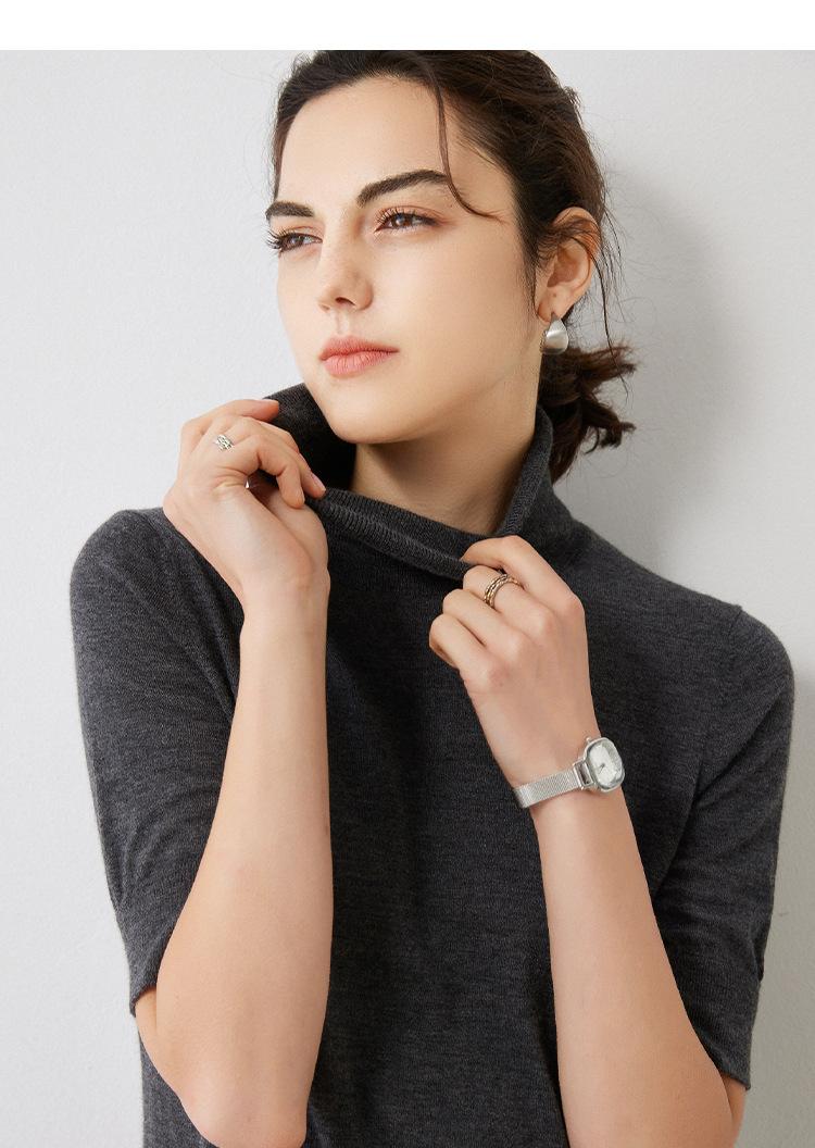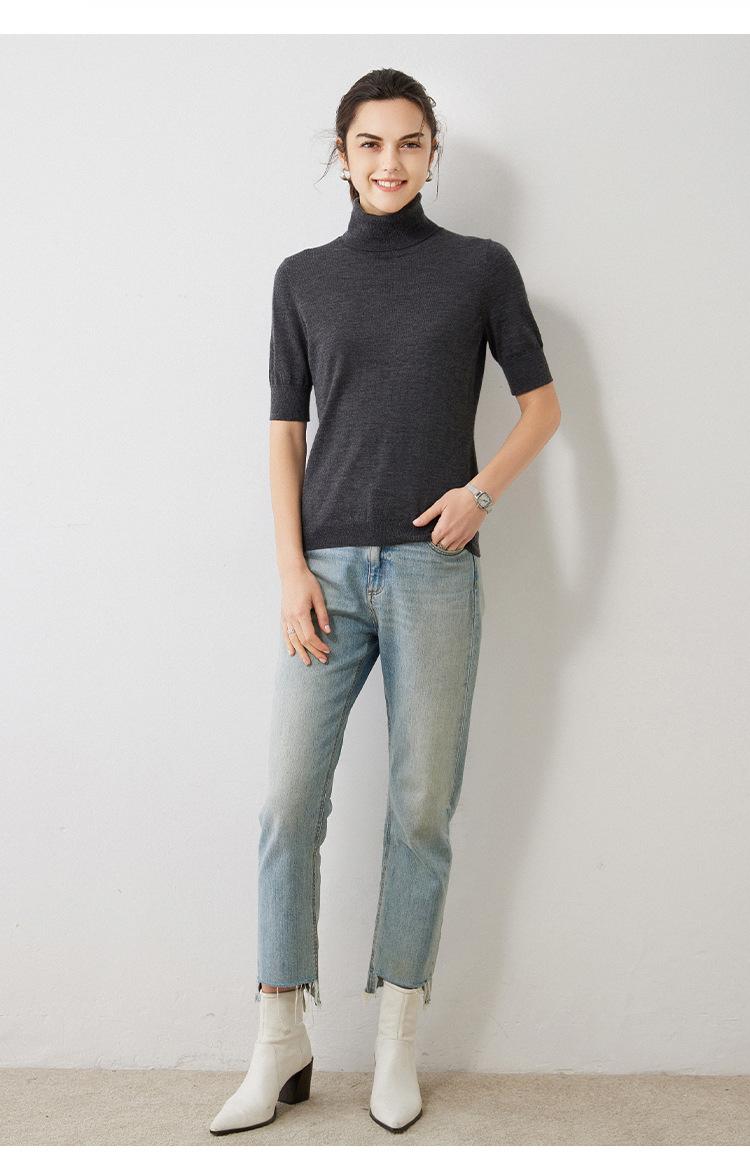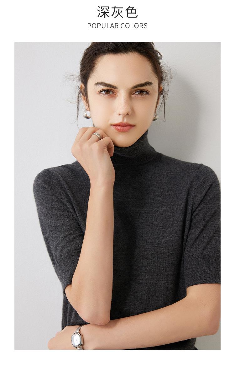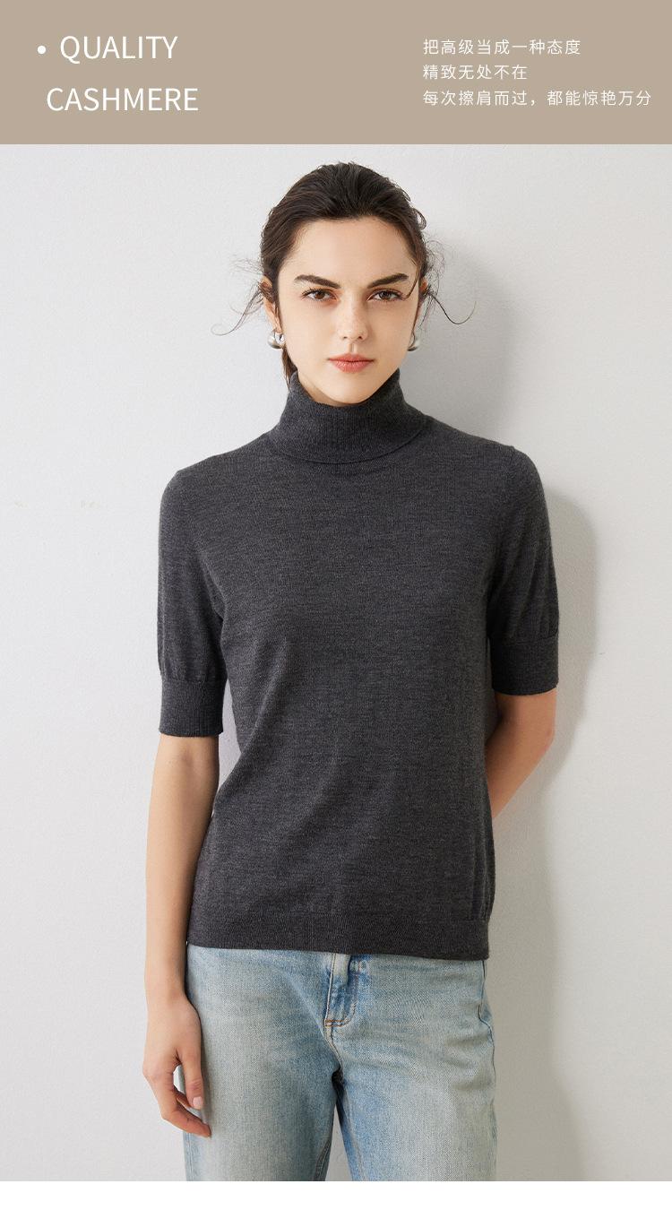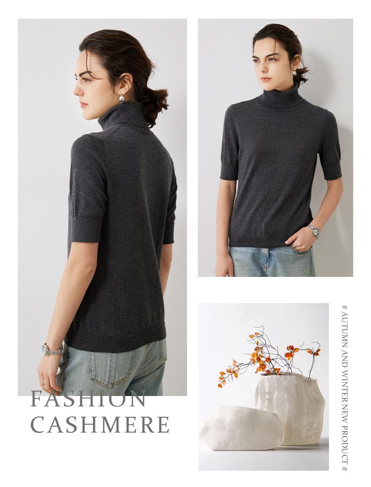 Suéter de cachemira de cuello alto para mujer, jersey de manga corta de color sólido, camisa de punto de cachemira glutinosa suave, otoño e invierno de 2020
