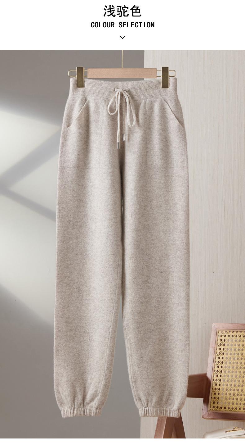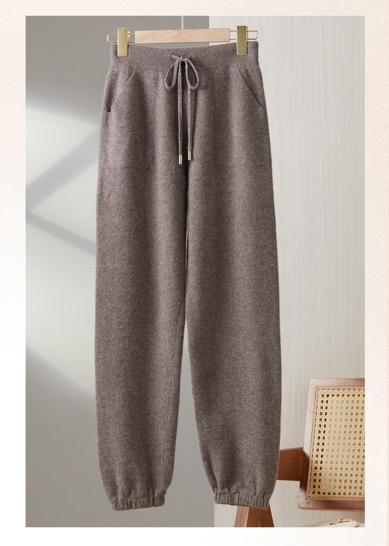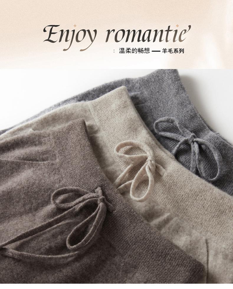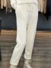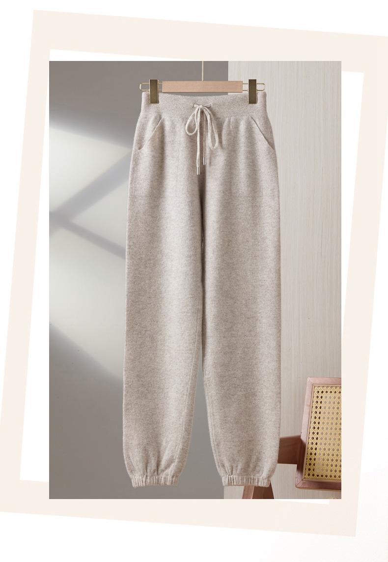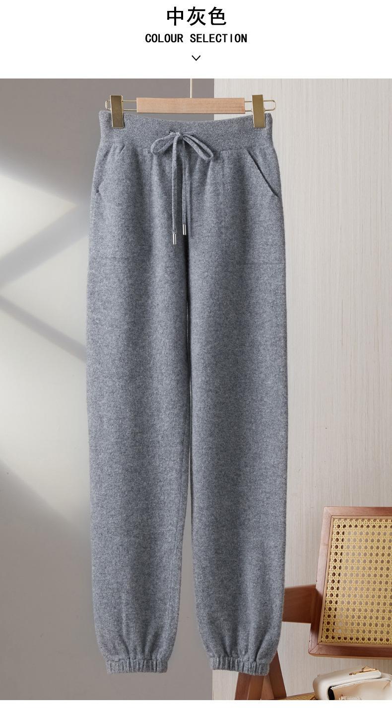Pantalones ajustados de lana 100% con cintura media y cordón para mujer, otoño e invierno 2023, pantalones casuales versátiles, pantalones ajustados de lana de punto