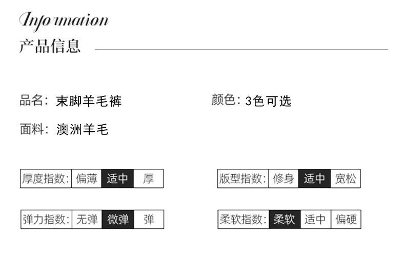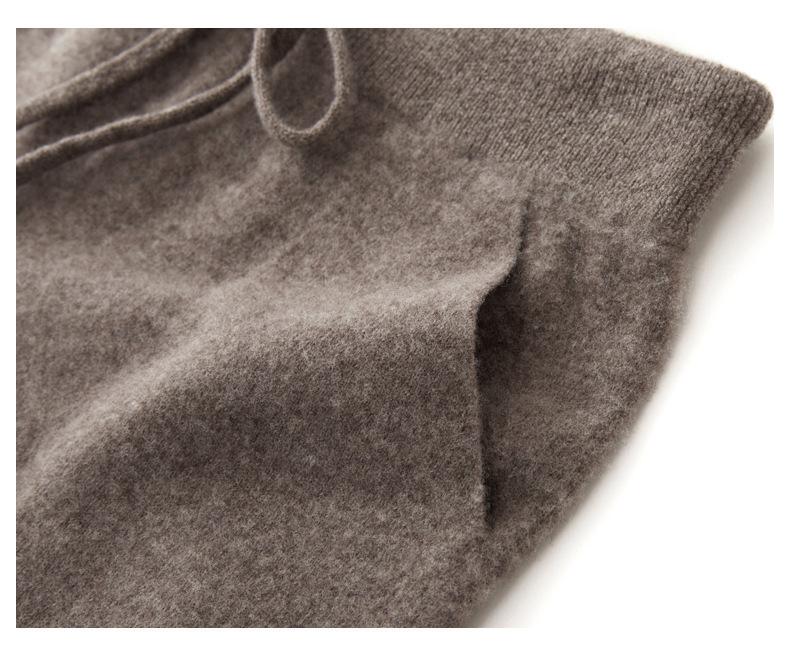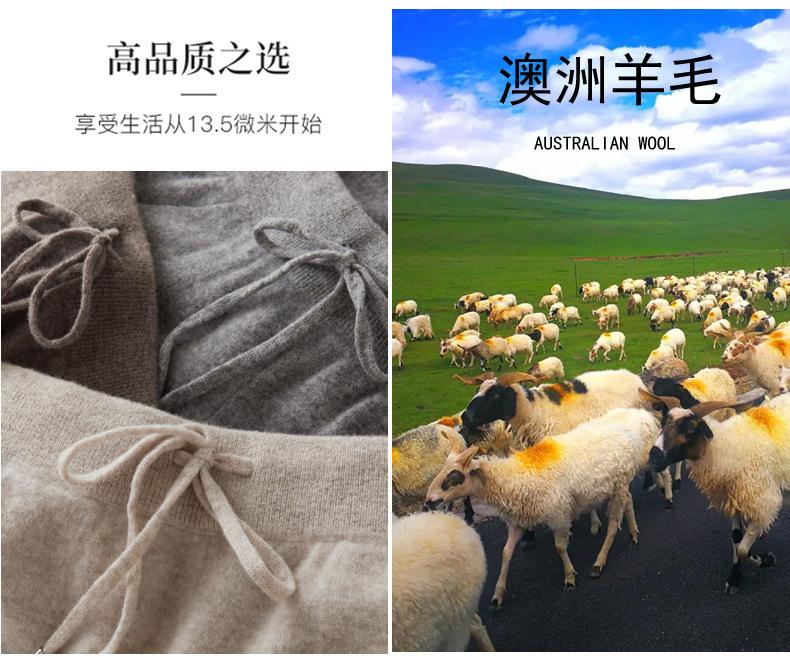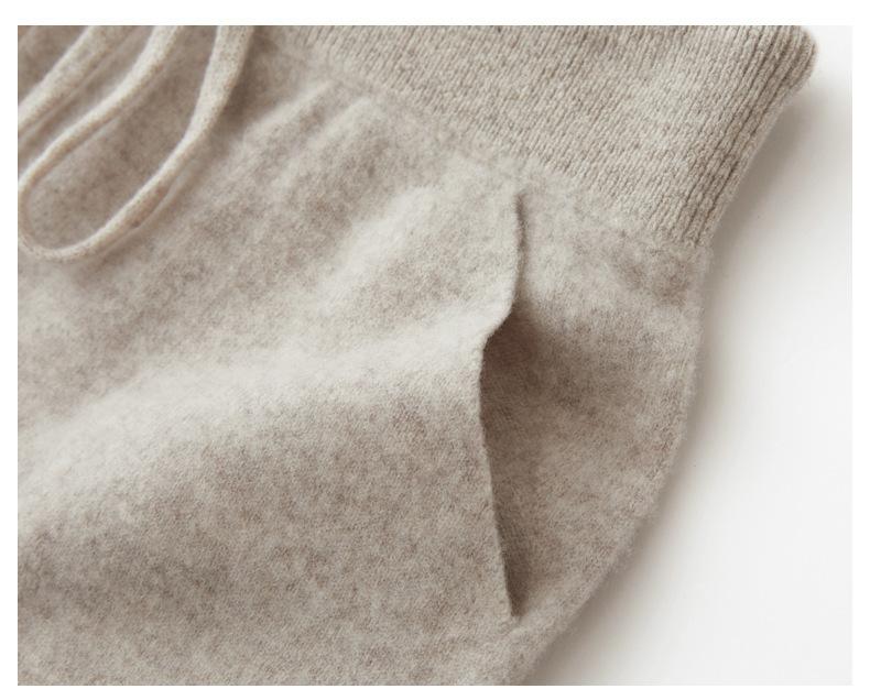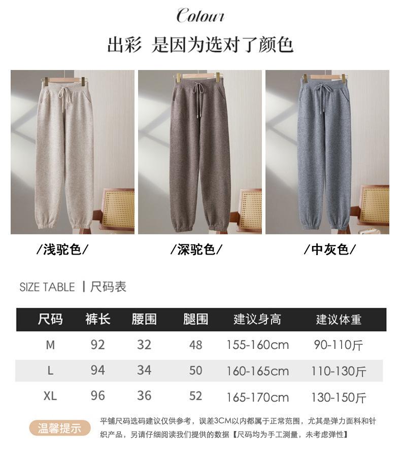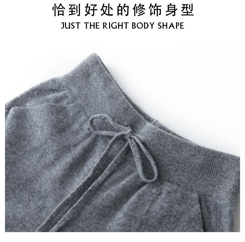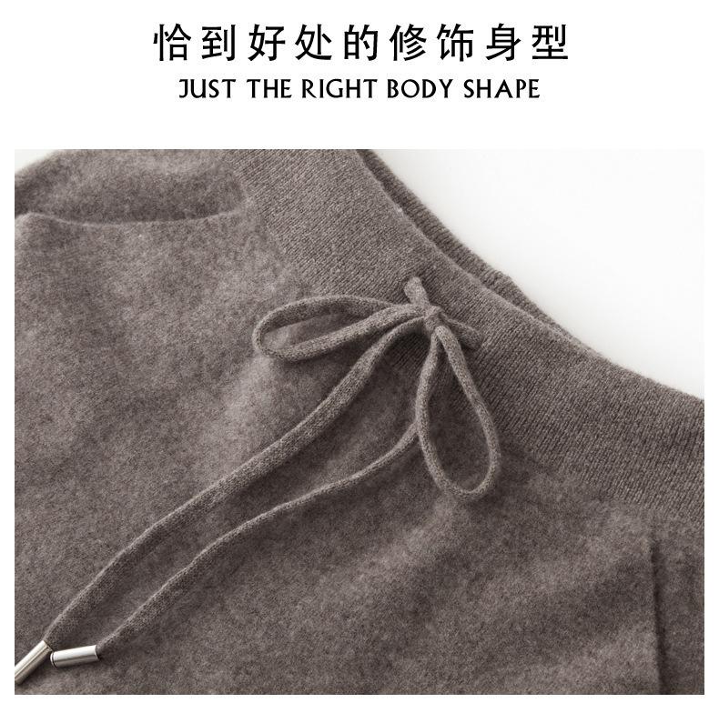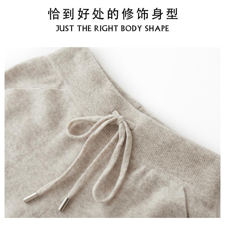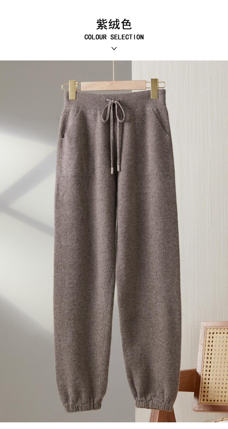Pantalones ajustados de lana 100% con cintura media y cordón para mujer, otoño e invierno 2023, pantalones casuales versátiles, pantalones ajustados de lana de punto