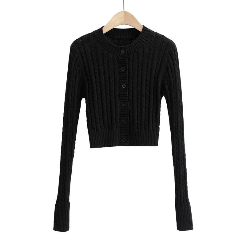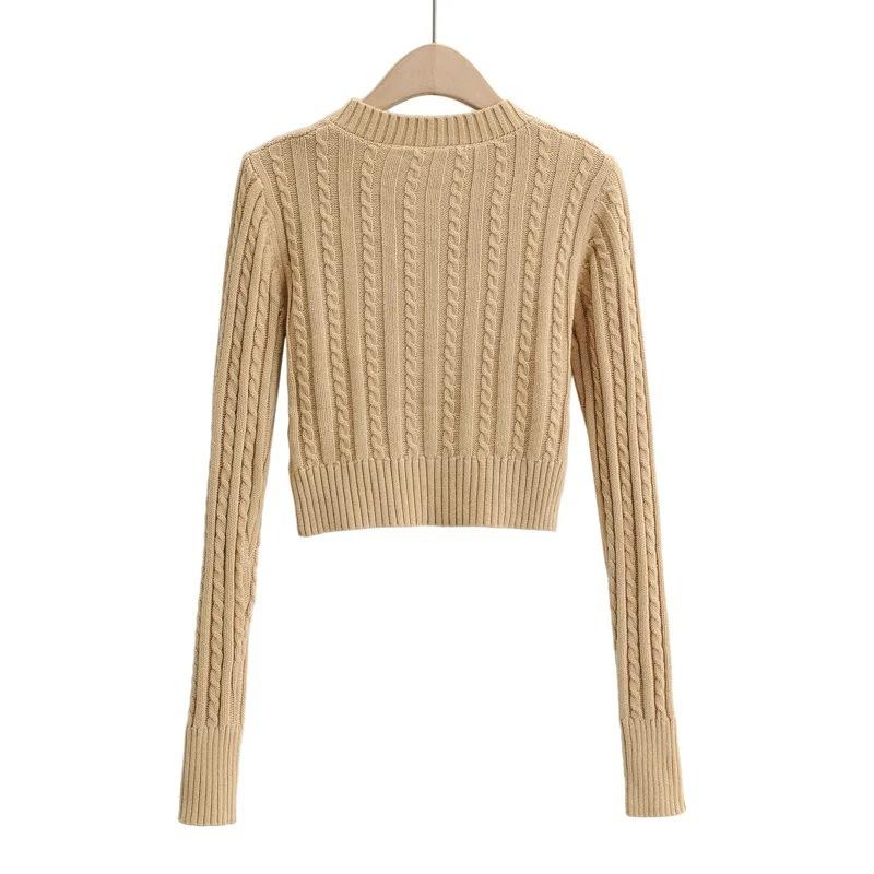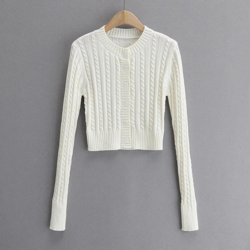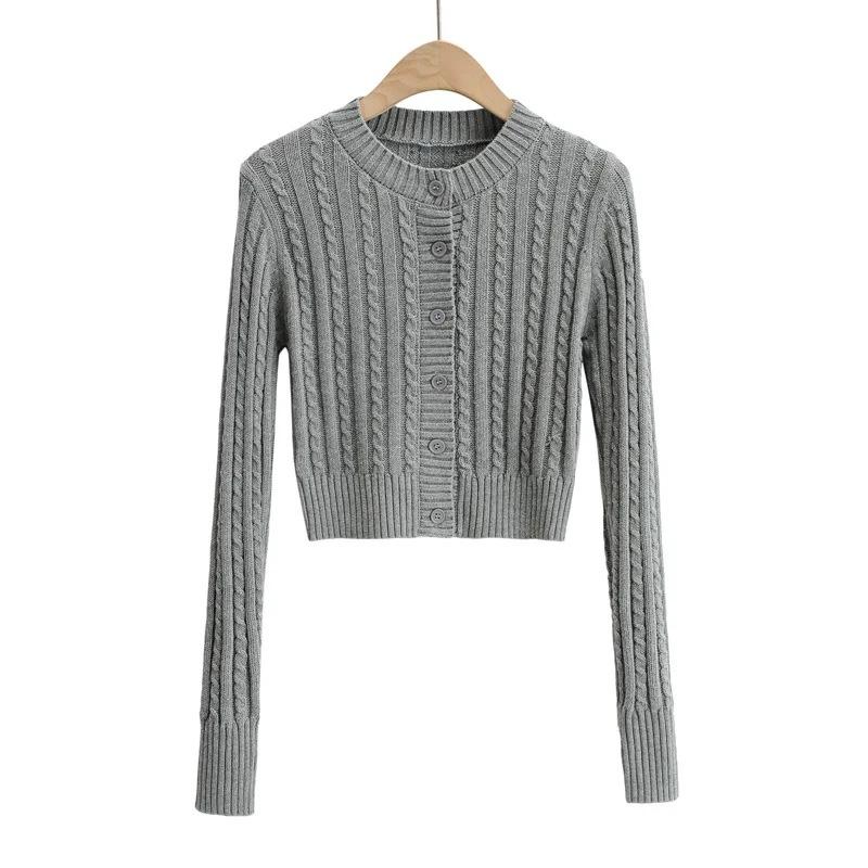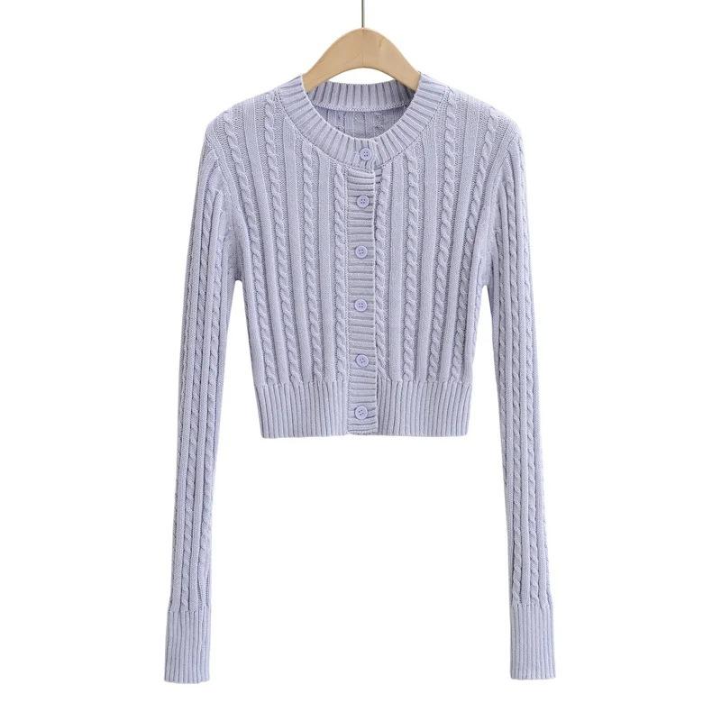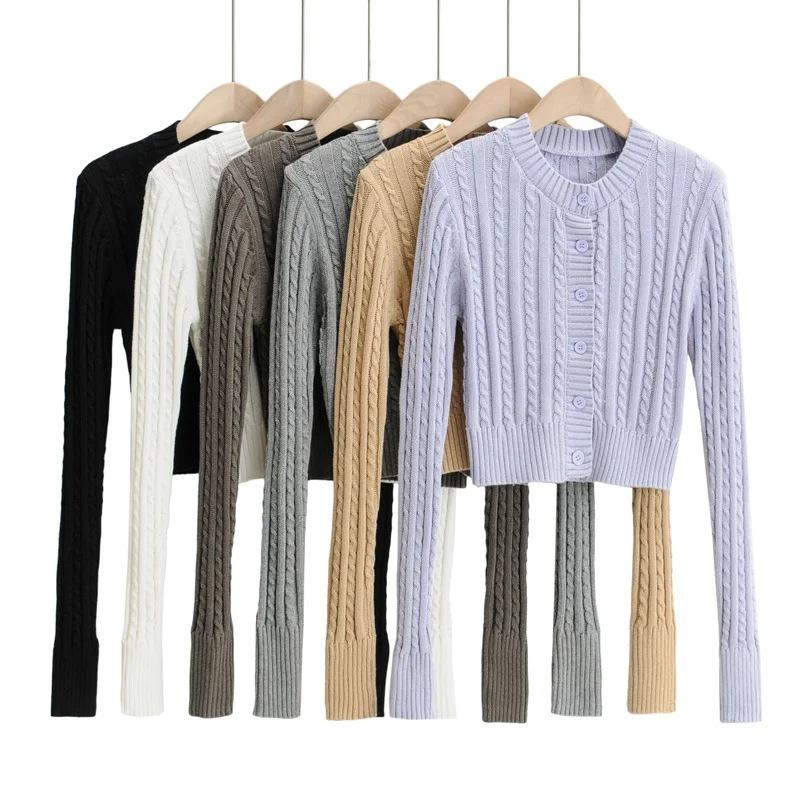 Cárdigan pequeño de punto trenzado con torsadas de manga larga para mujer primavera y otoño estilo europeo y americano moda corto de punto abotonadura sencilla