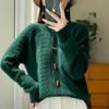 Suéter de punto de lana pura con cuello exterior y manga larga para mujer, cárdigan de otoño e invierno, nuevo abrigo holgado de moda para principios de otoño.