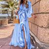 Vestido de playa de un solo pecho con cordones y escote en V sexy de Amazon, novedad de primavera y verano de 2023, transfronterizo europeo y americano, ropa de mujer