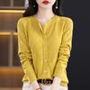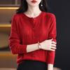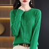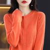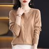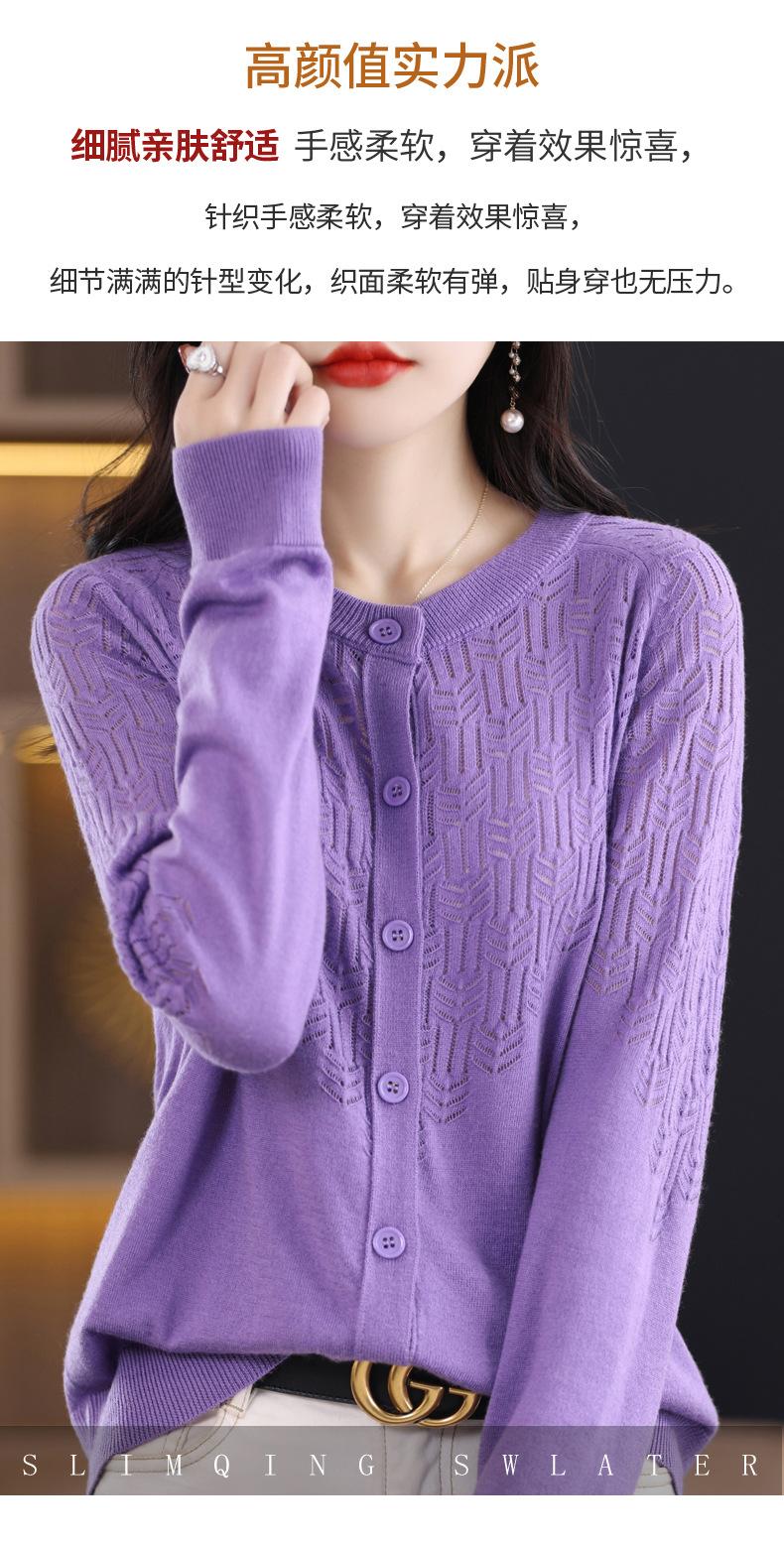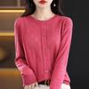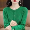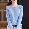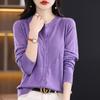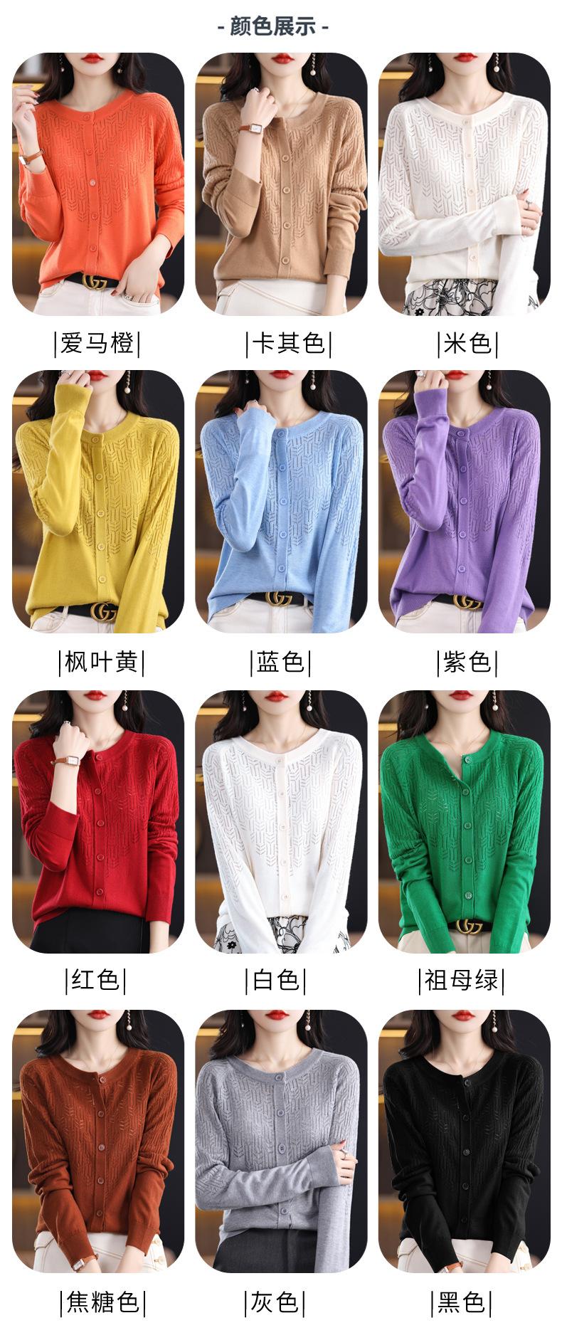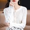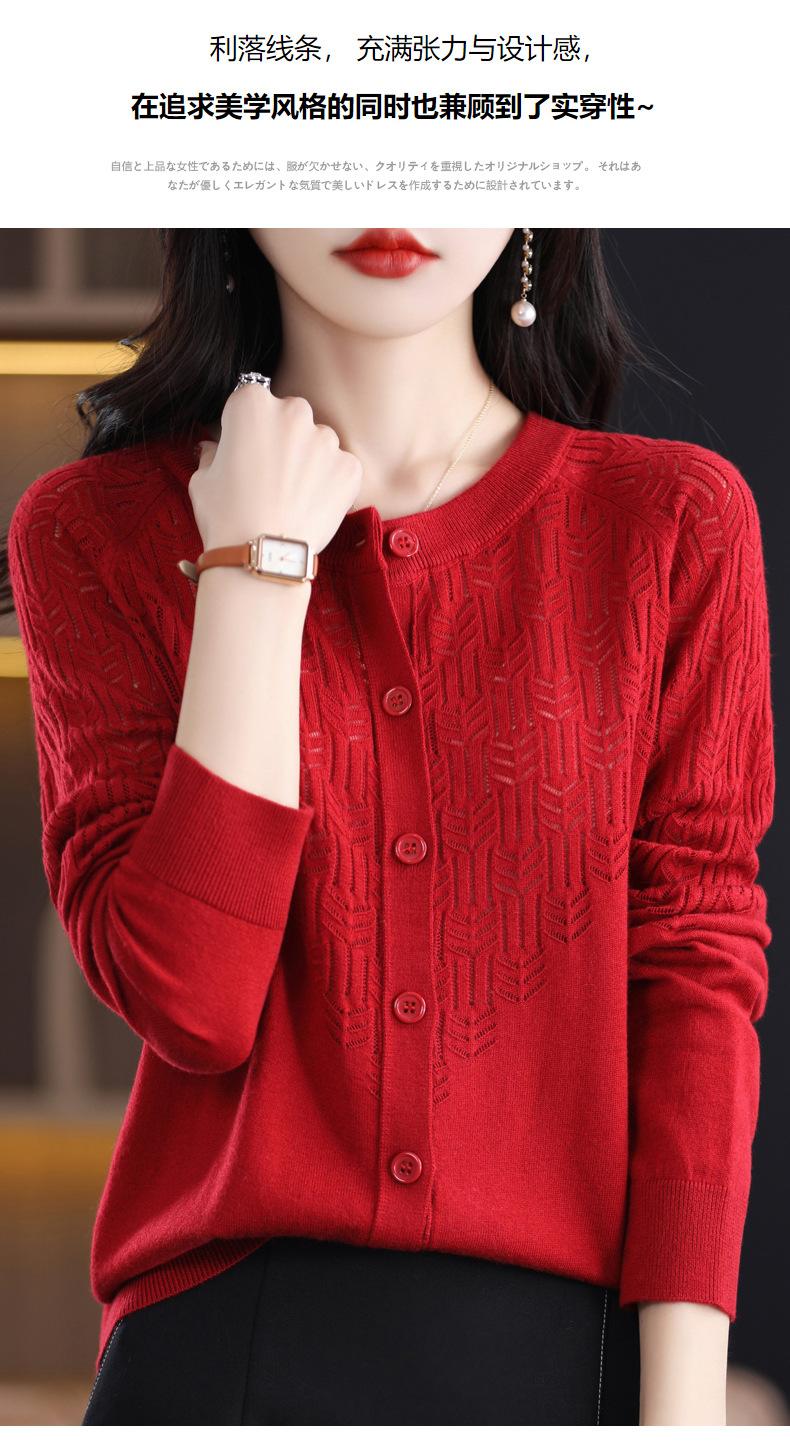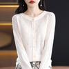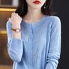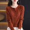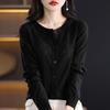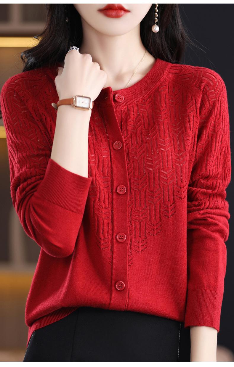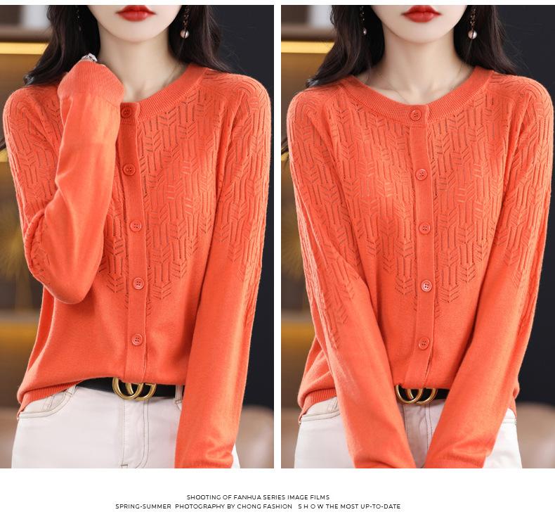 Cárdigan de Lana Fina Imitación Primavera Temprana Estilo Coreano para Mujer Camiseta Base Holgada Calada Cuello Redondo Manga Larga Top Color Sólido Chaqueta Delgada