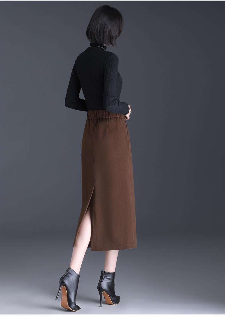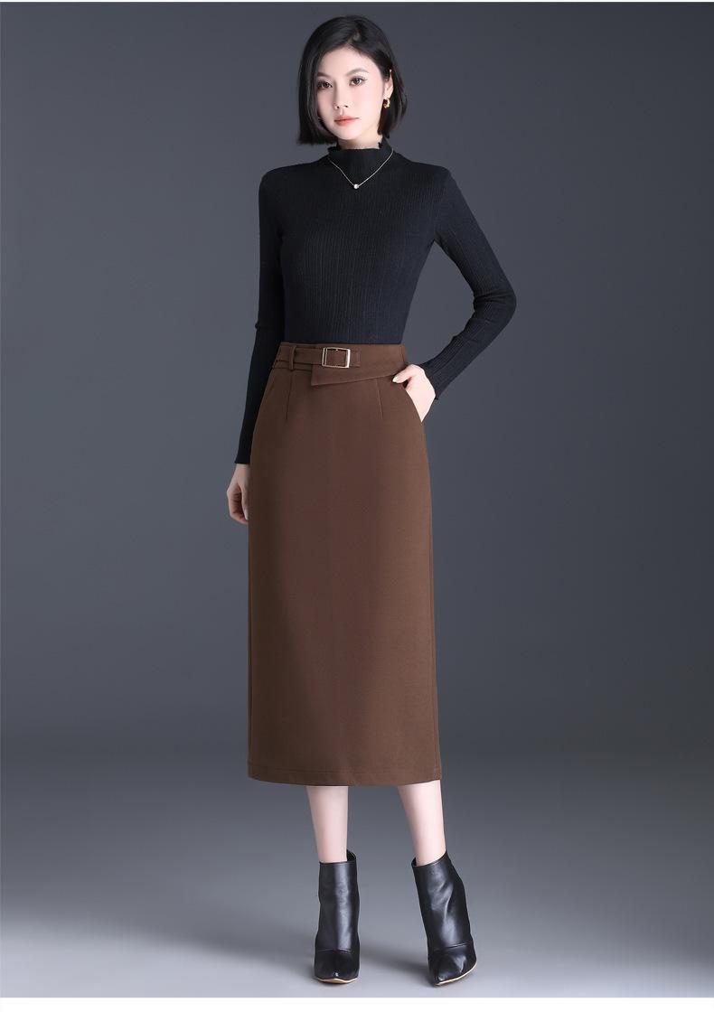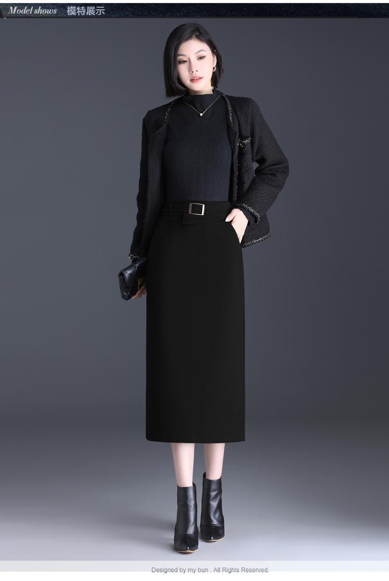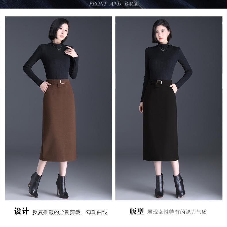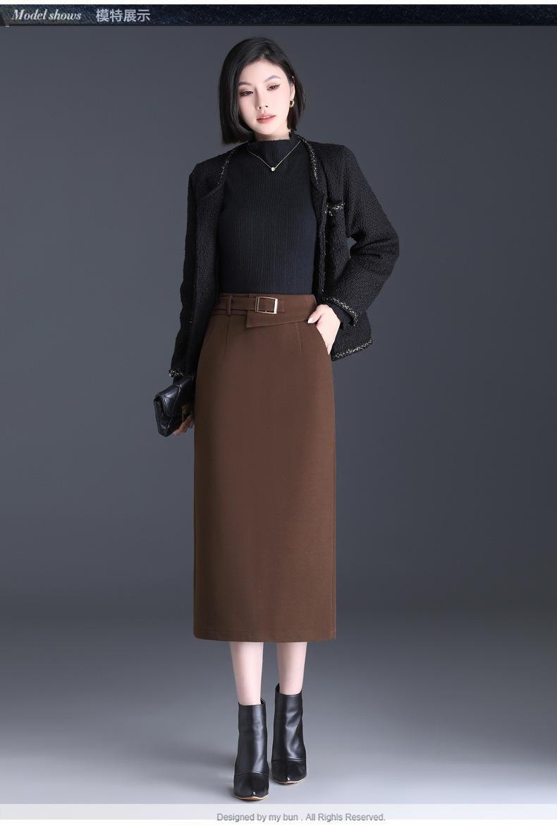 Falda de Lana a la Moda Cubrecaderas para Mujer 2024 Otoño e Invierno Nuevo Estilo Coreano de Cintura Alta Recta Profesional de Un Paso Largo Medio