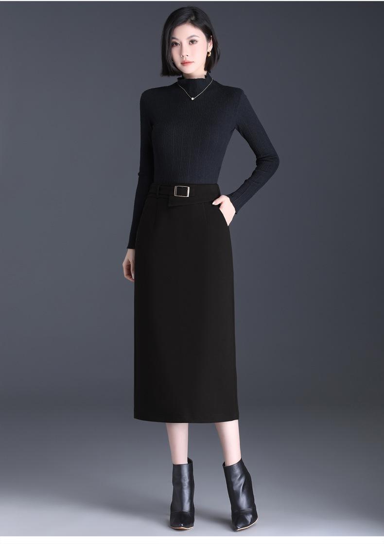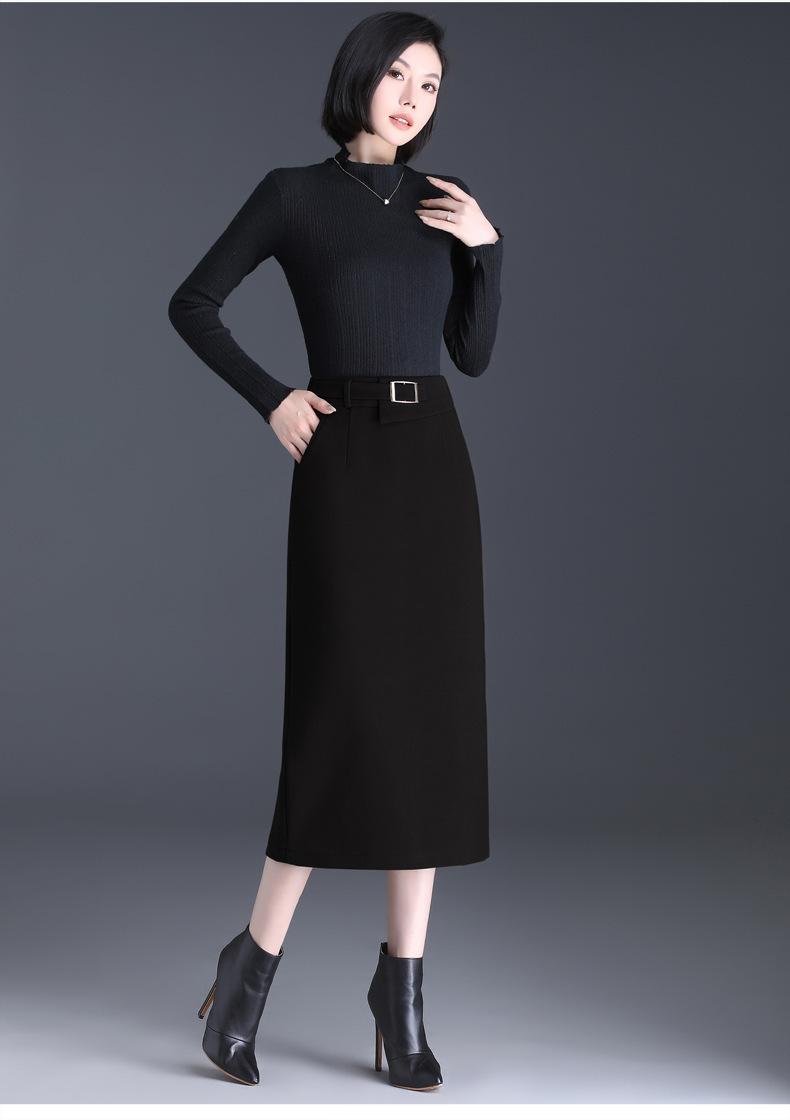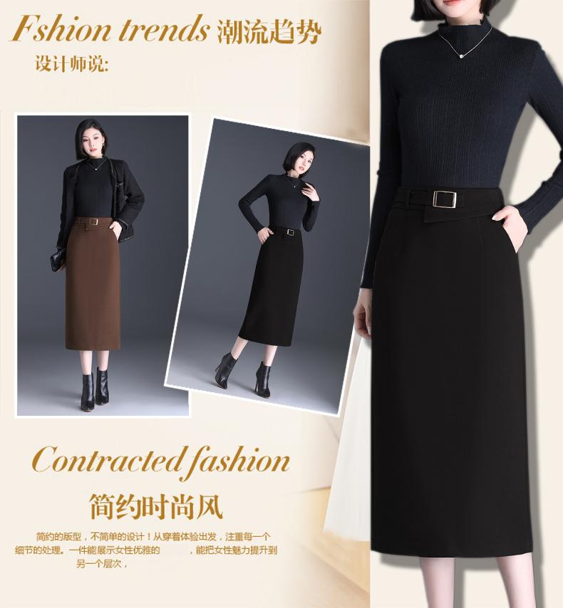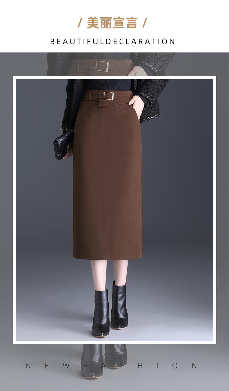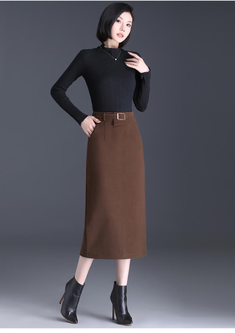 Falda de Lana a la Moda Cubrecaderas para Mujer 2024 Otoño e Invierno Nuevo Estilo Coreano de Cintura Alta Recta Profesional de Un Paso Largo Medio