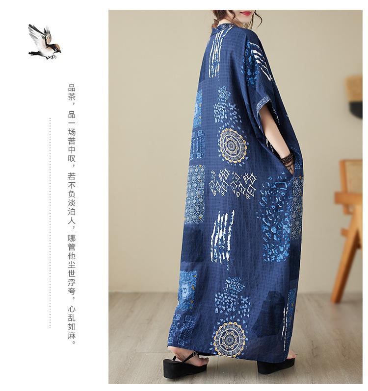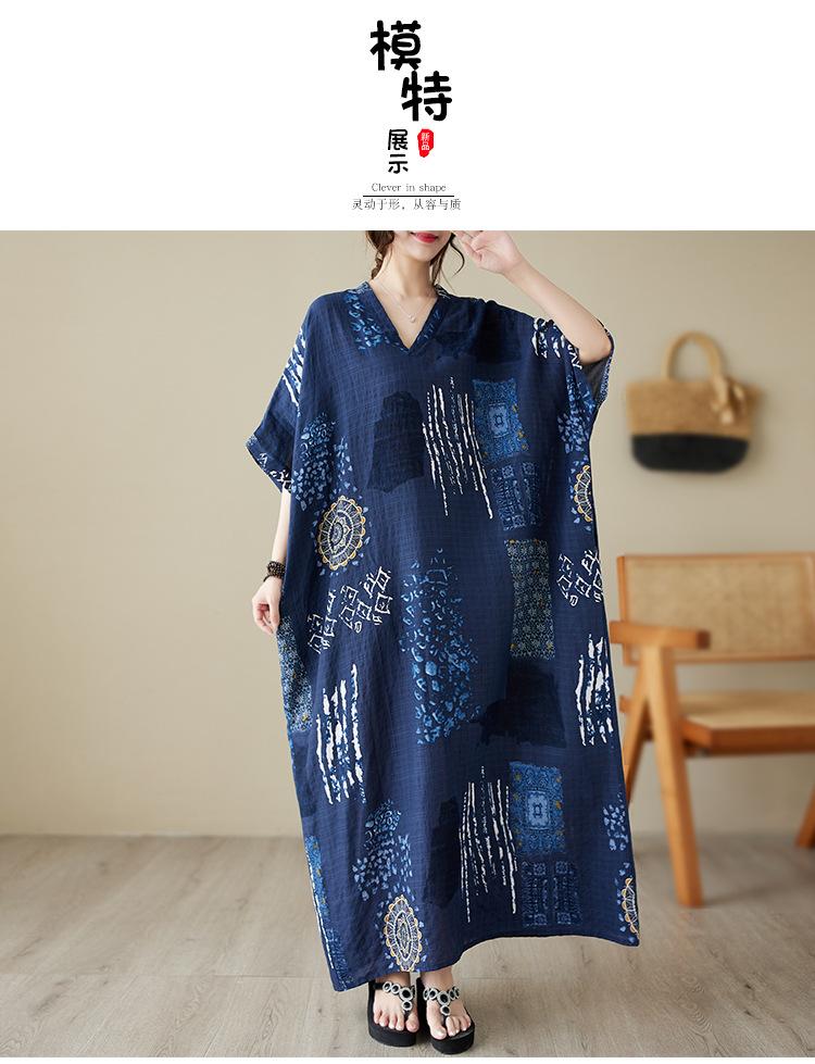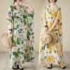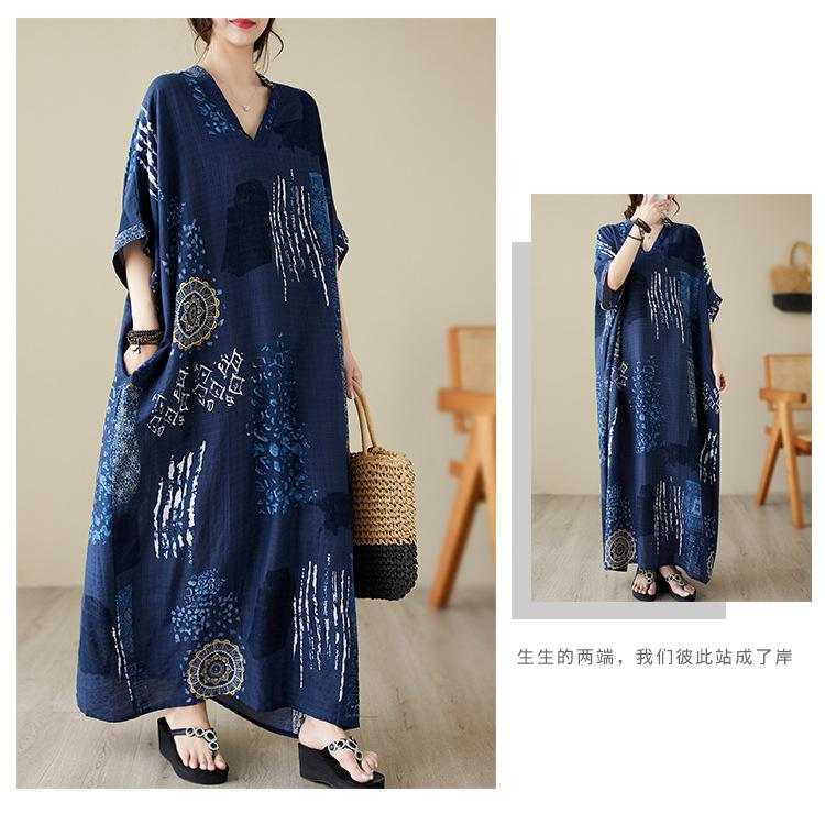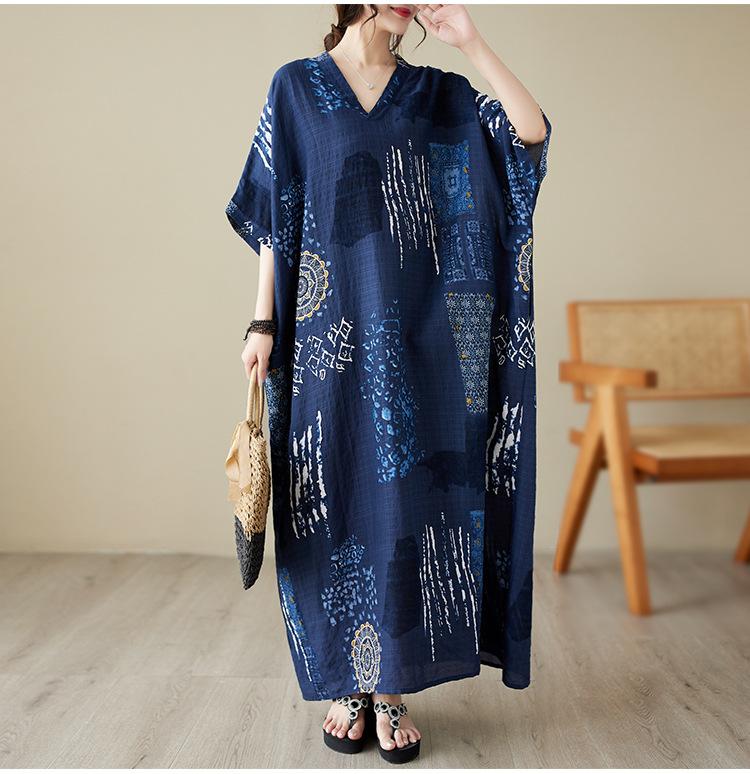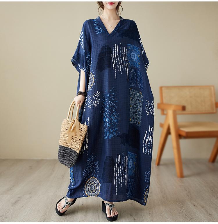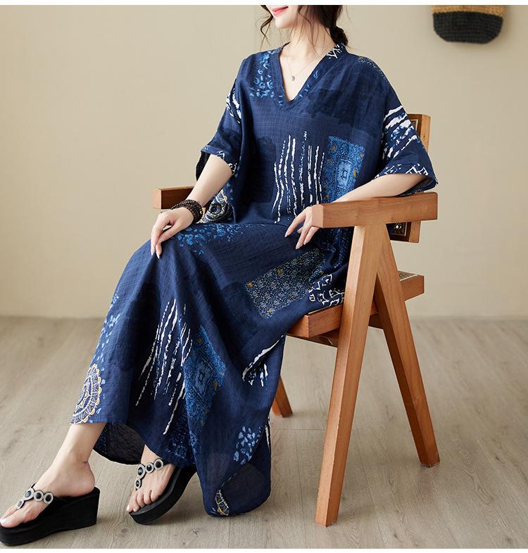 Vestido playero holgado de verano con escote en V, fino, de algodón y lino, talla grande, estilo retro, para vacaciones y playa, largo, con cuello en V