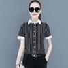 Camisa Rayada de Manga Corta para Mujer 2024 Verano Nueva Moda Camisa de Gasa de Manga Corta Estilo Coreano Diseño Occidental Camisa de Mujer