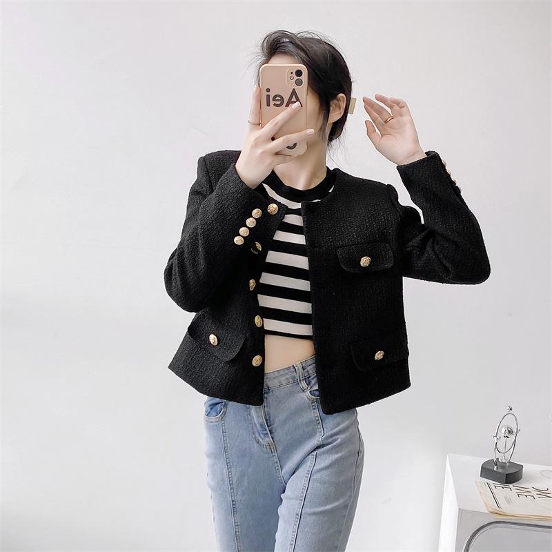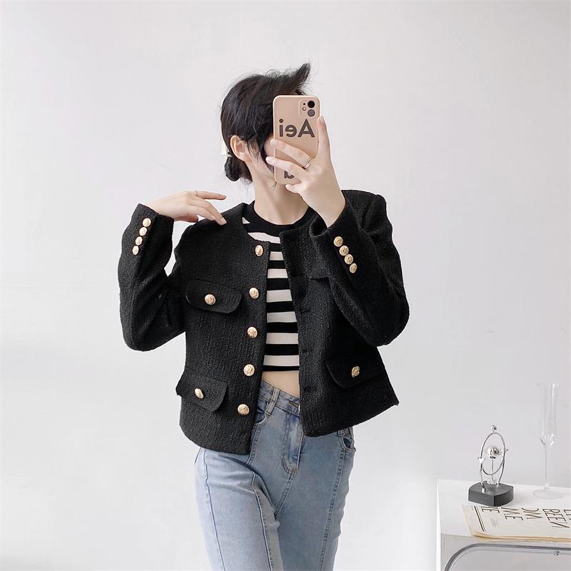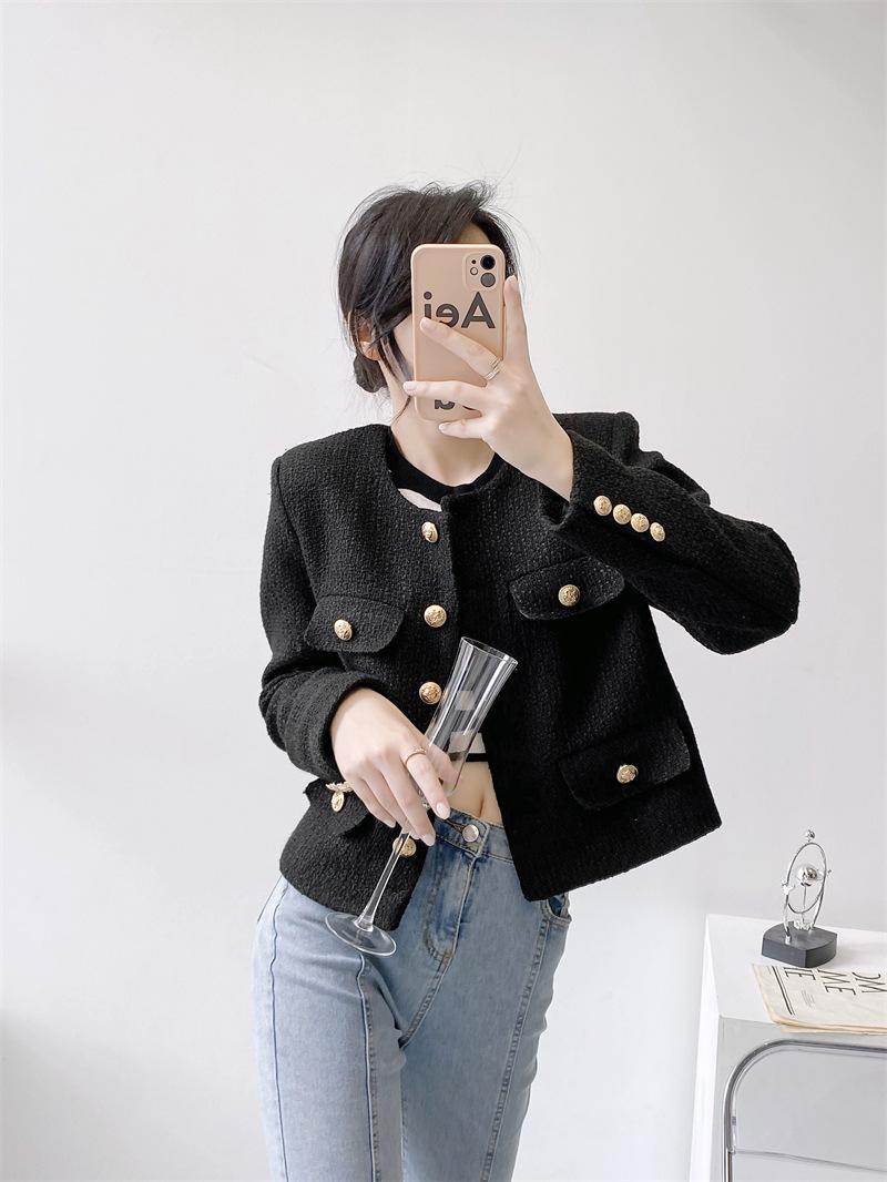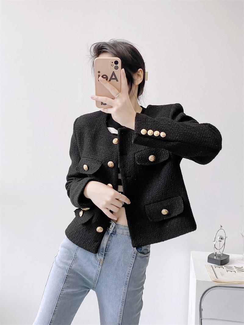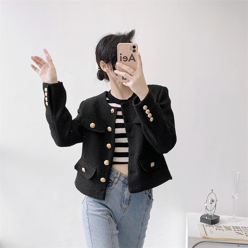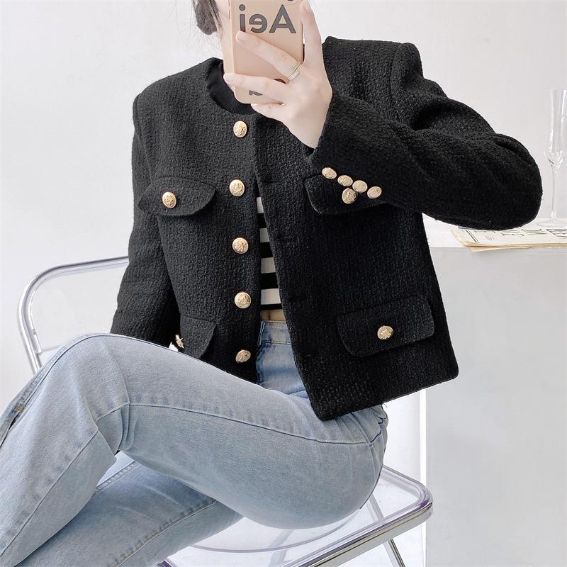 Abrigo estilo Chanel dorado negro para mujer, socialité de alta gama, Primavera y Otoño, top francés versátil corto retro de alta gama