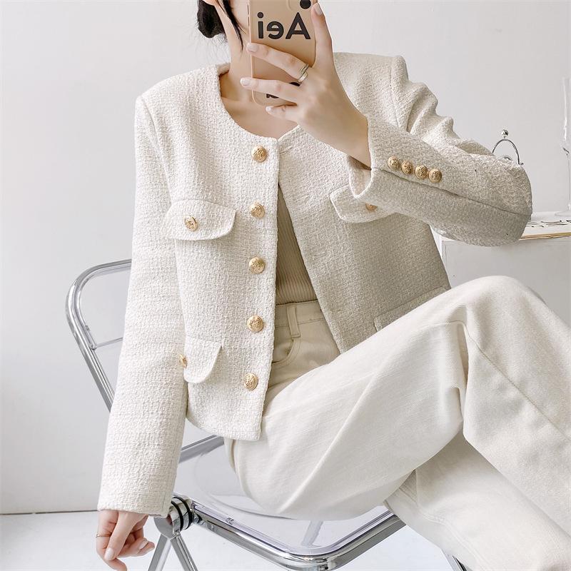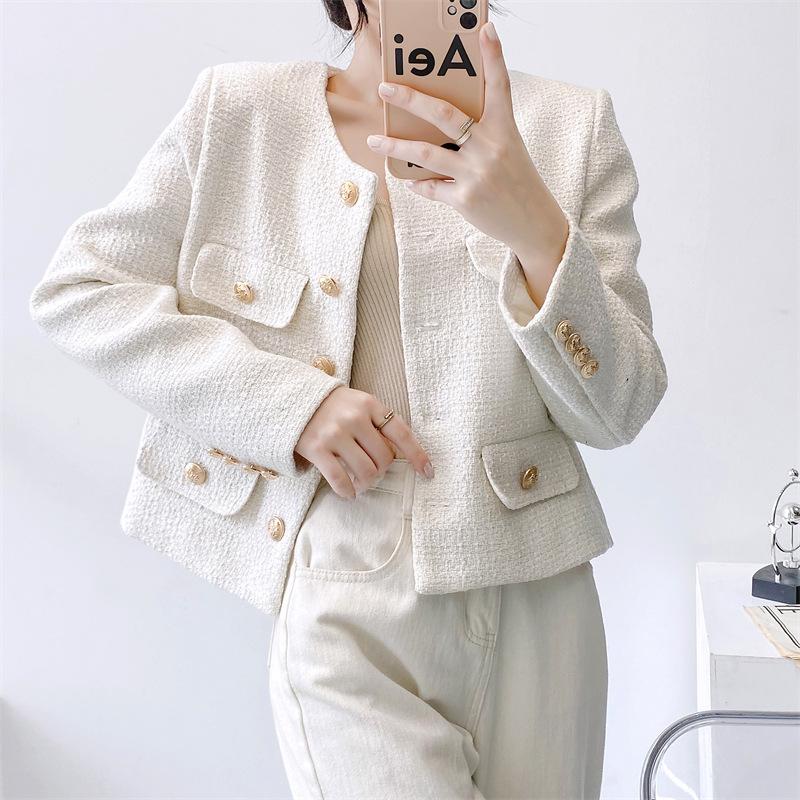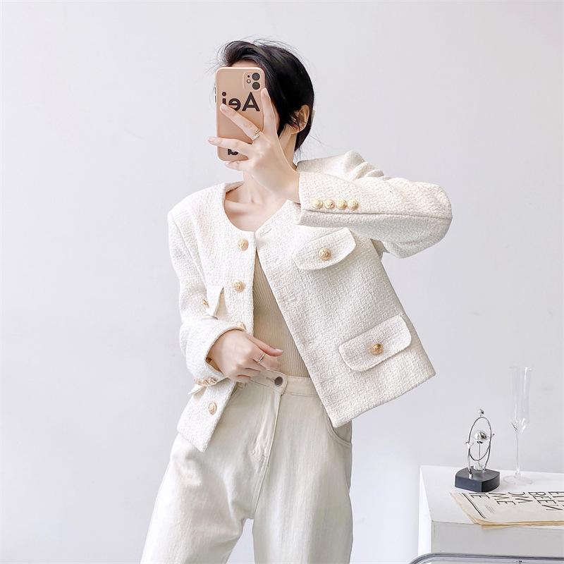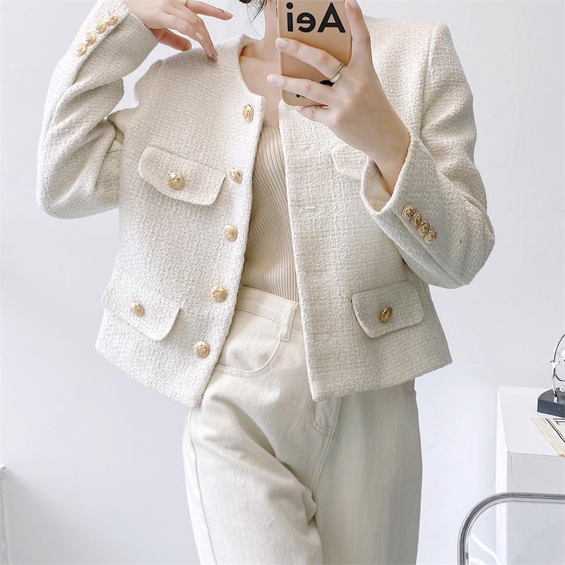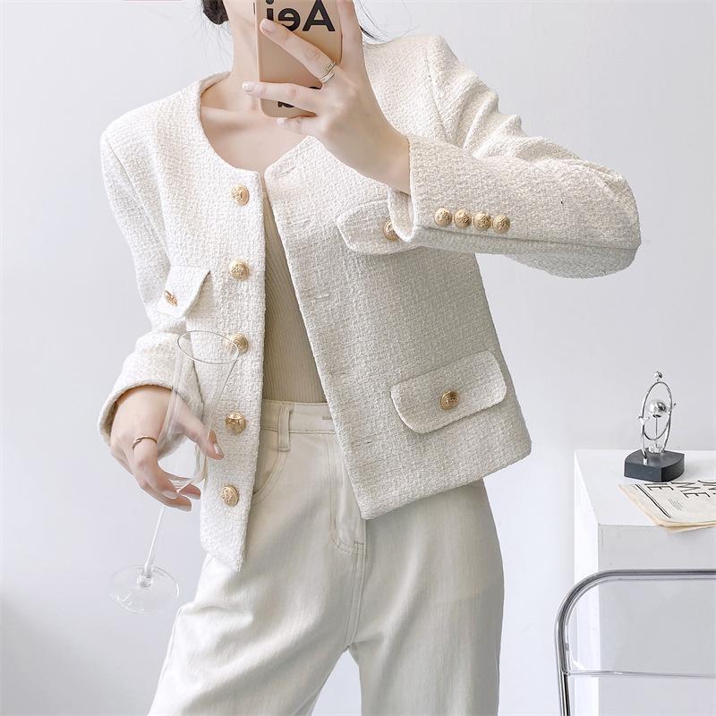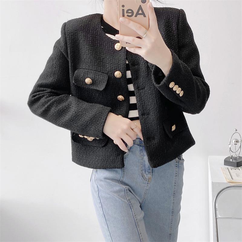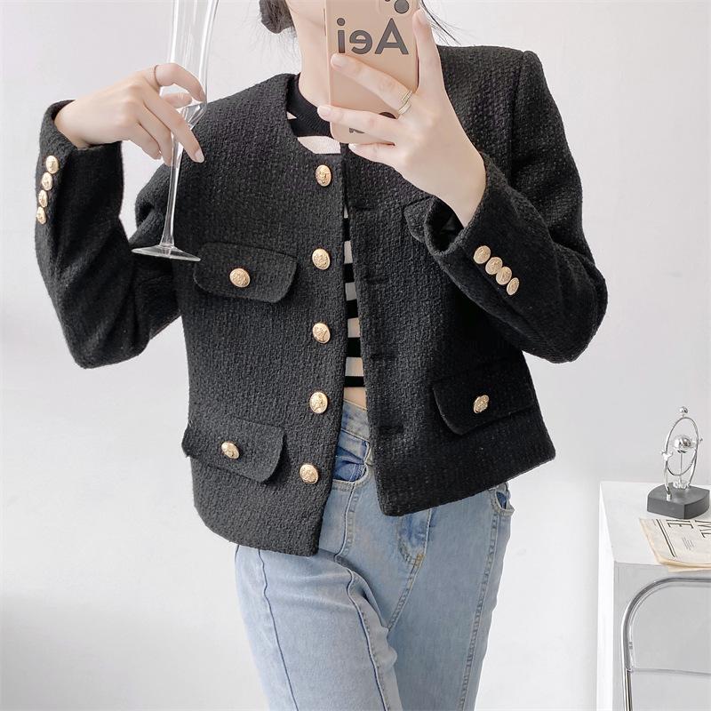 Abrigo estilo Chanel dorado negro para mujer, socialité de alta gama, Primavera y Otoño, top francés versátil corto retro de alta gama